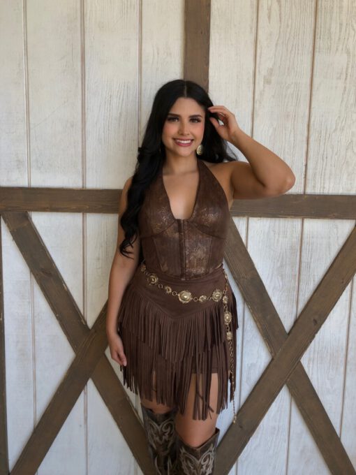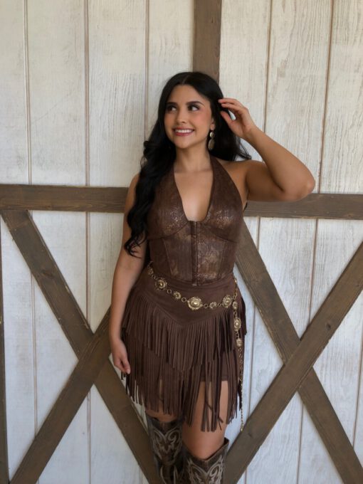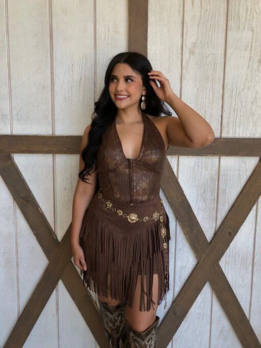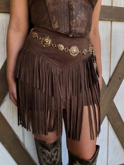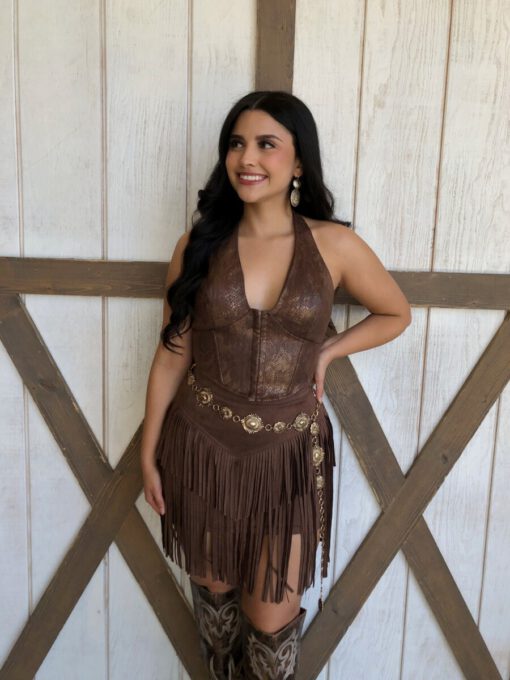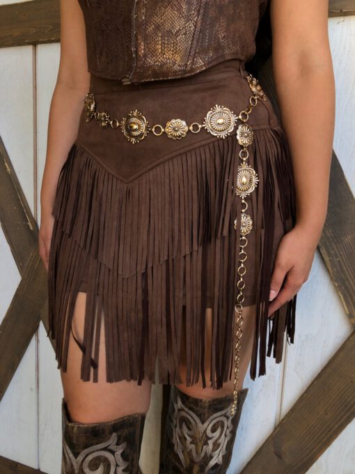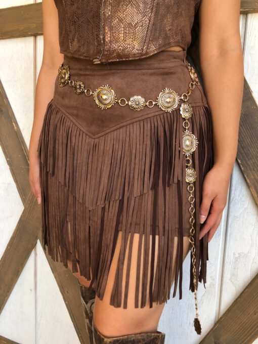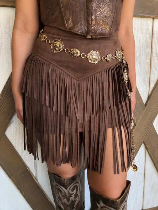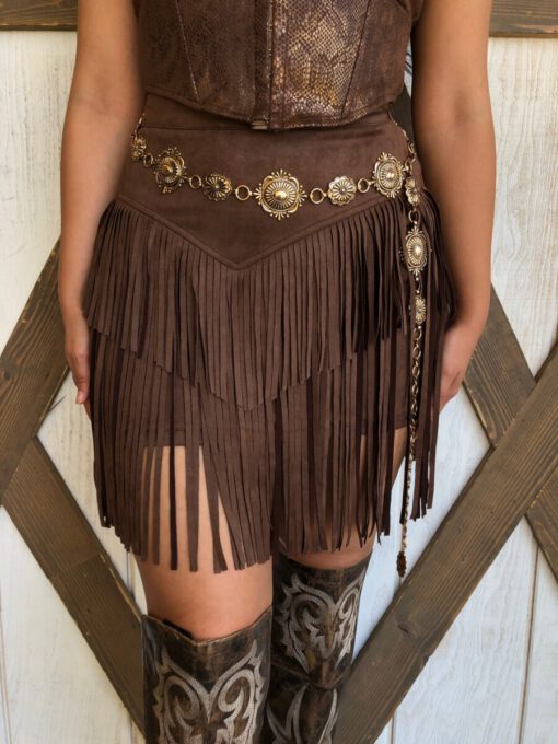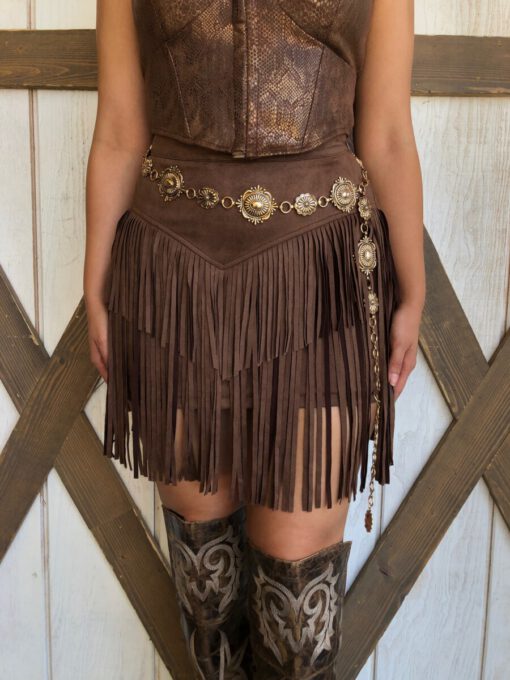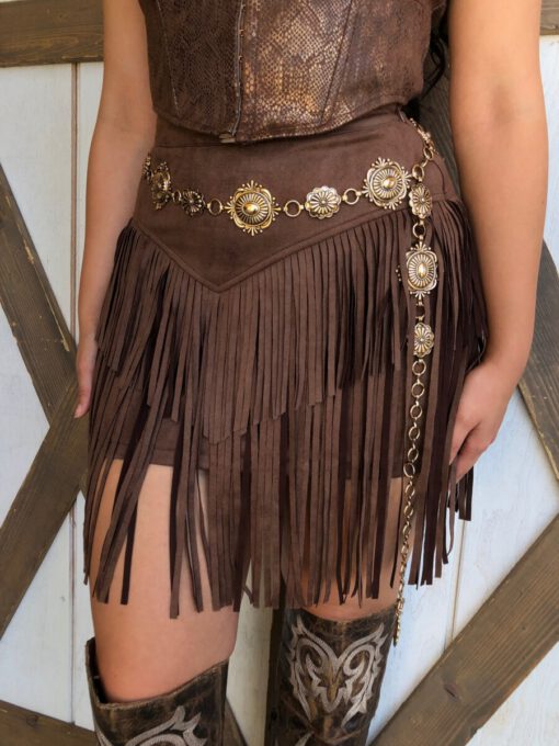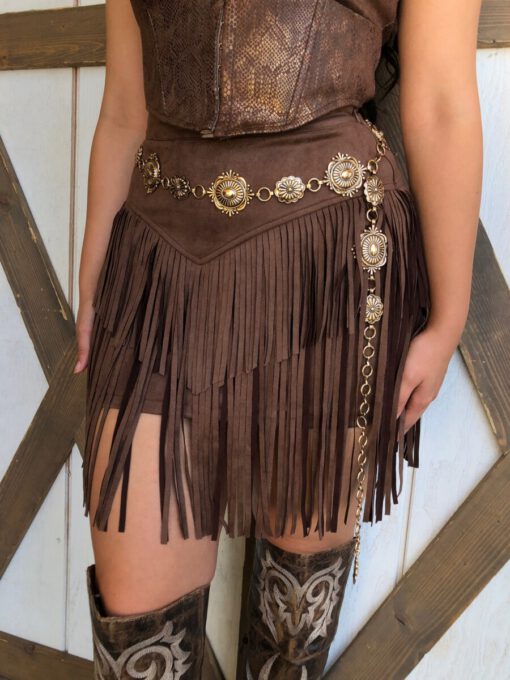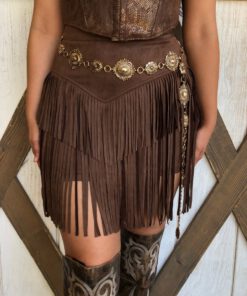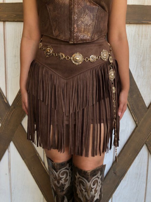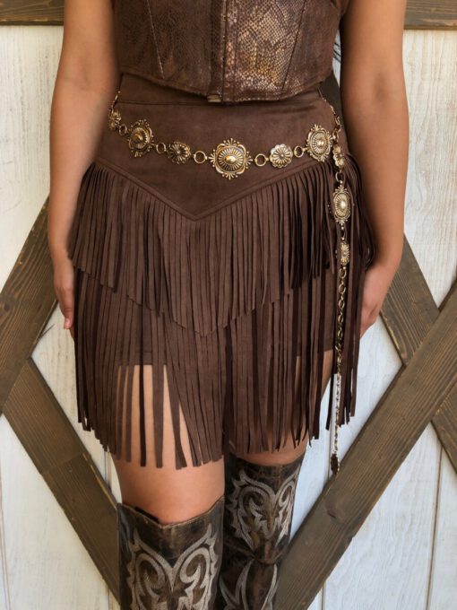 ” Abilene” Faux Suede Fringed Skirt ( Brown )