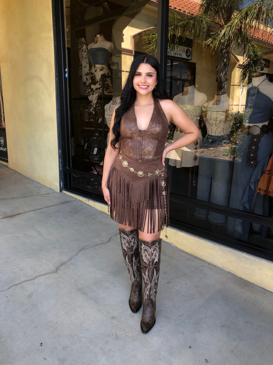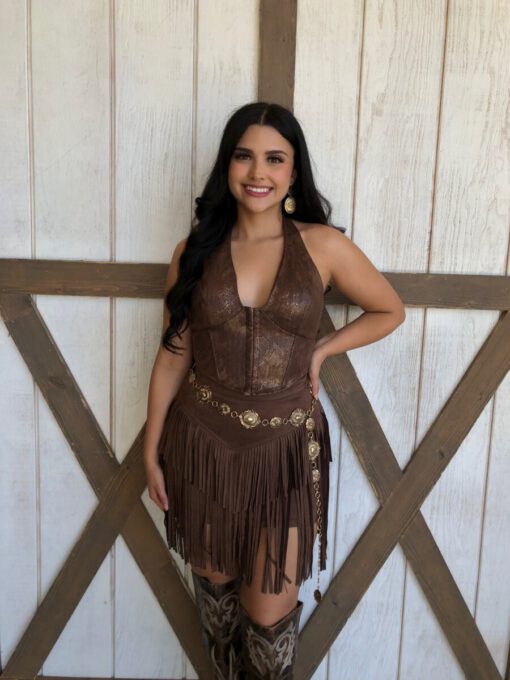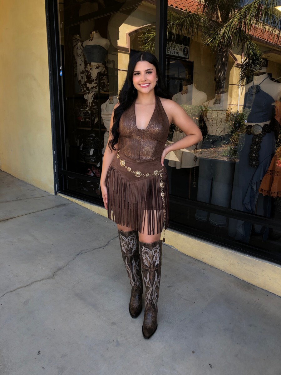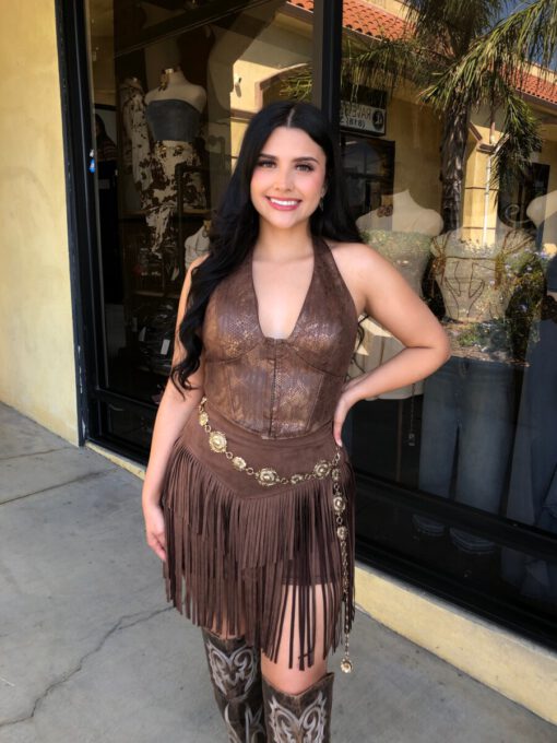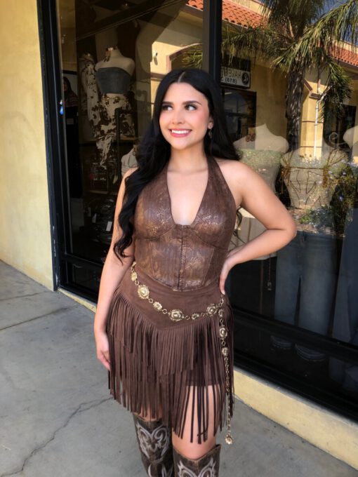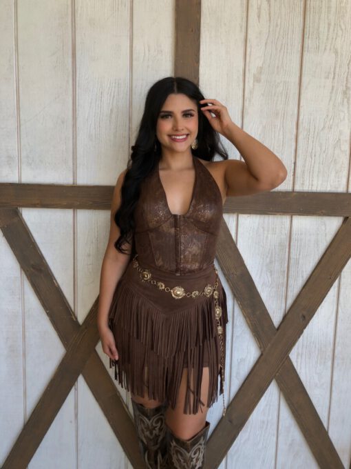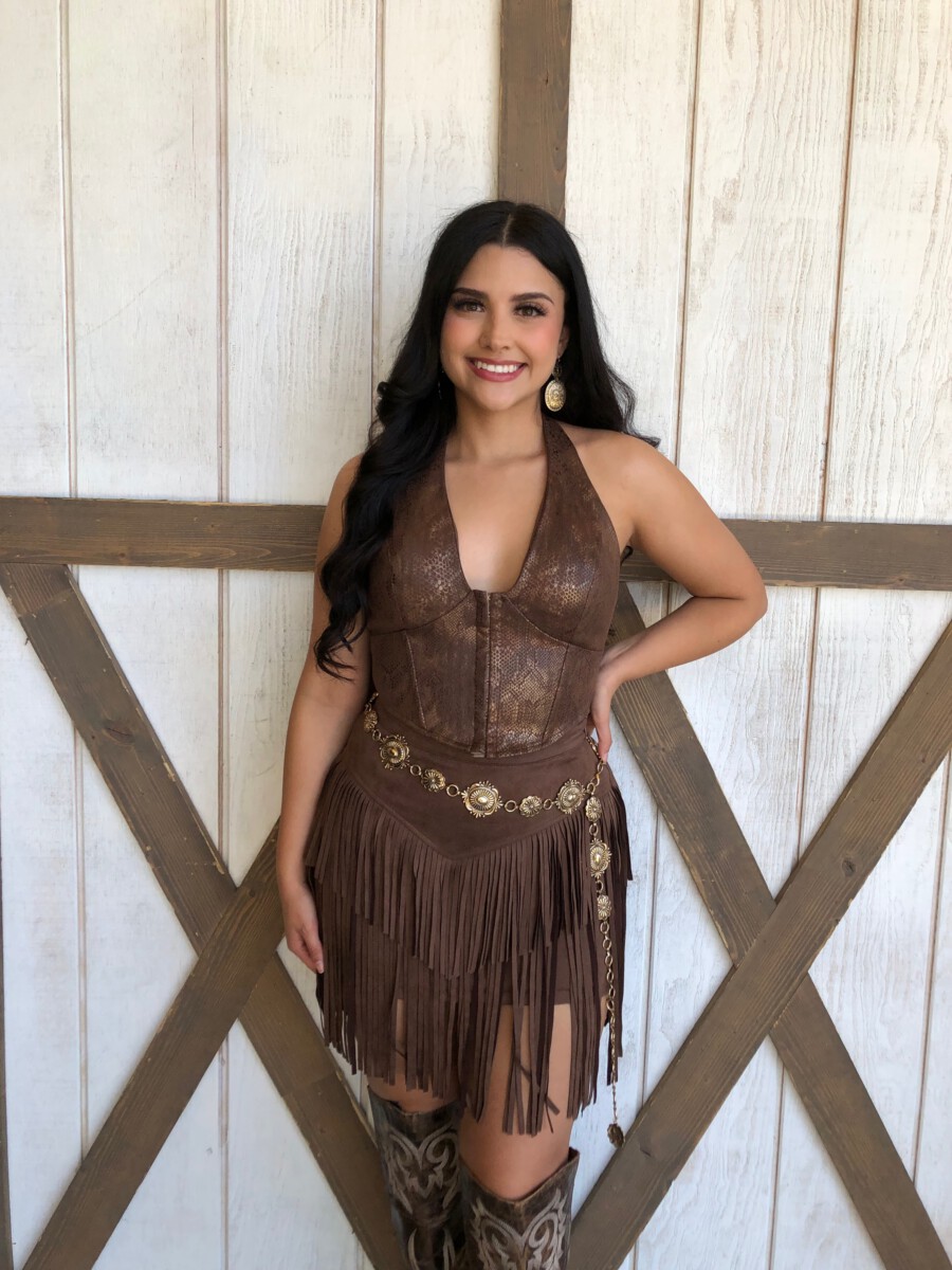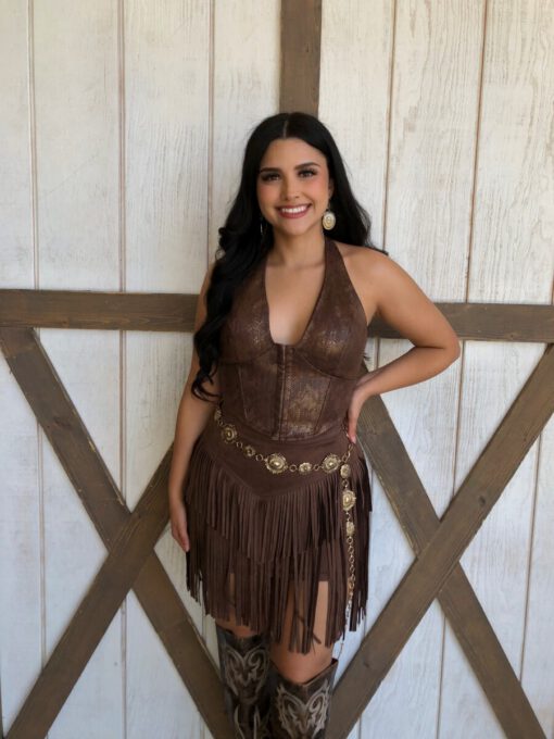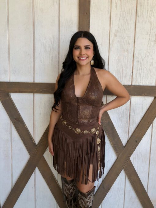 ” Abilene” Faux Suede Fringed Skirt ( Brown )