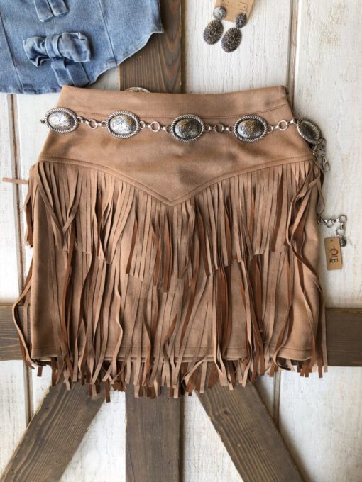 ” Abilene” Faux Suede Fringed Skirt ( Tan )