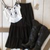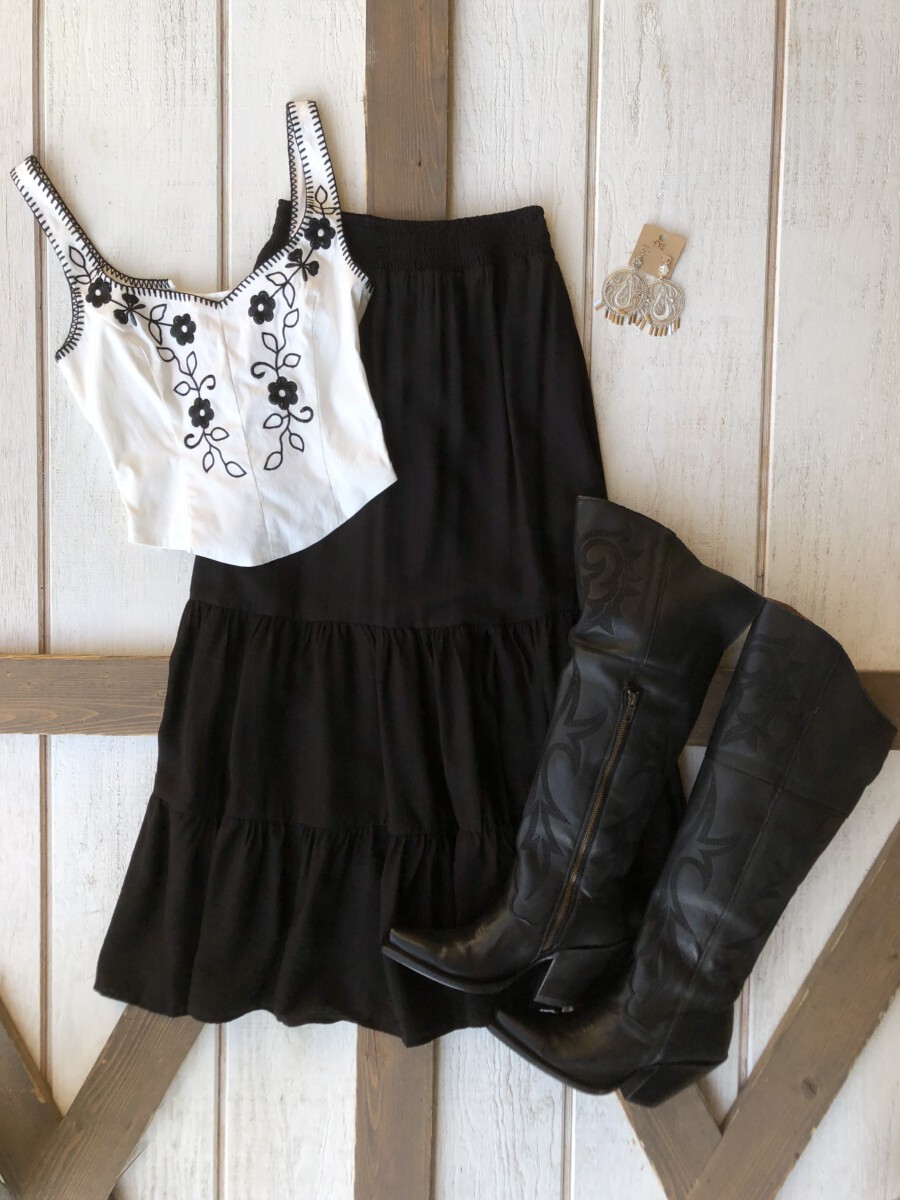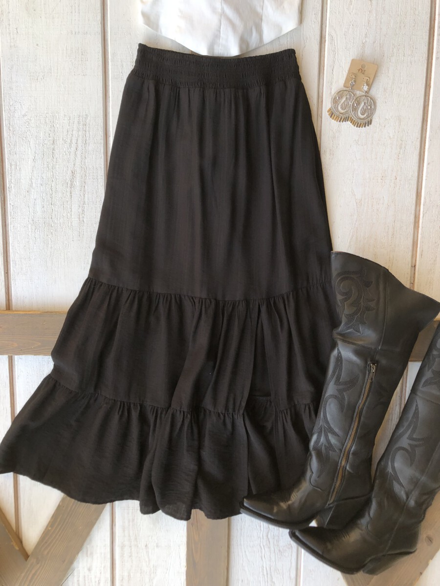 ” Daisylyn ” Flowy Slit Skirt ( Black )