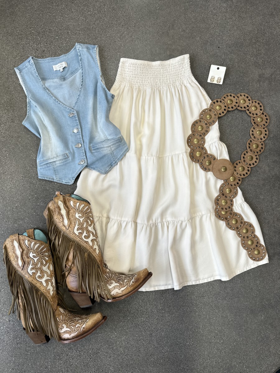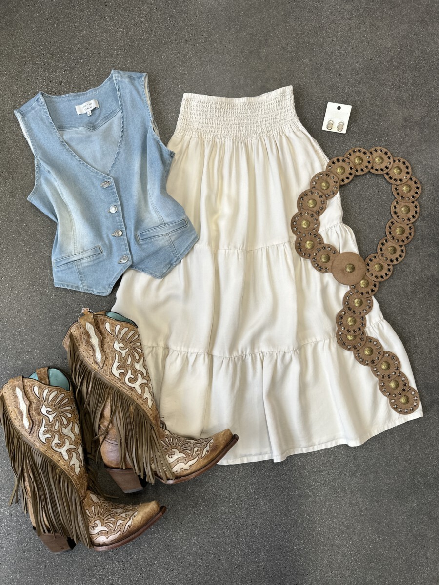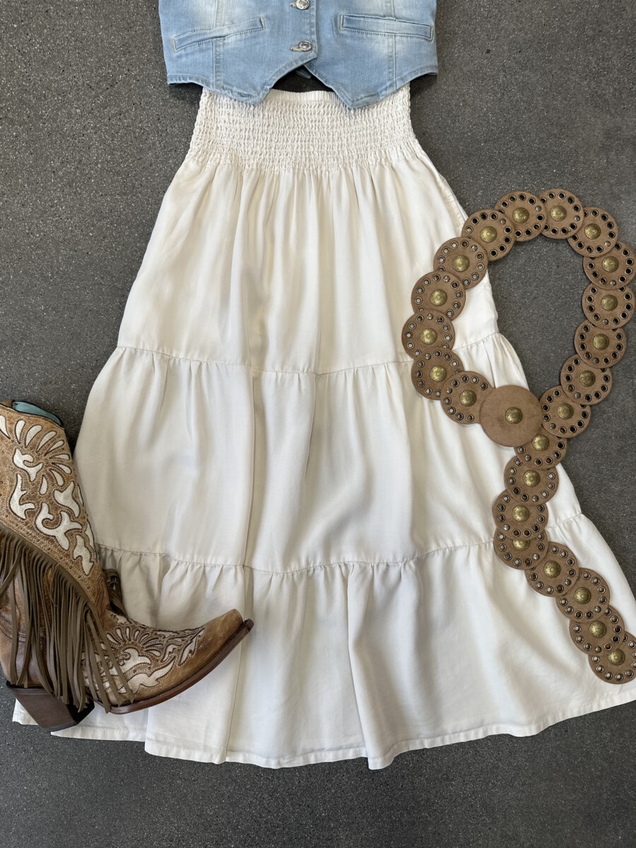 ” JANETTE ” Smocked Waist Midi Skirt ( Cream )