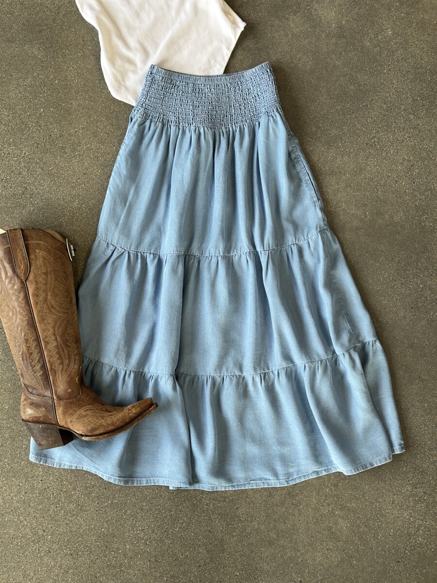 “JANETTE ” Smocked Waist Midi Skirt ( Light Blue )