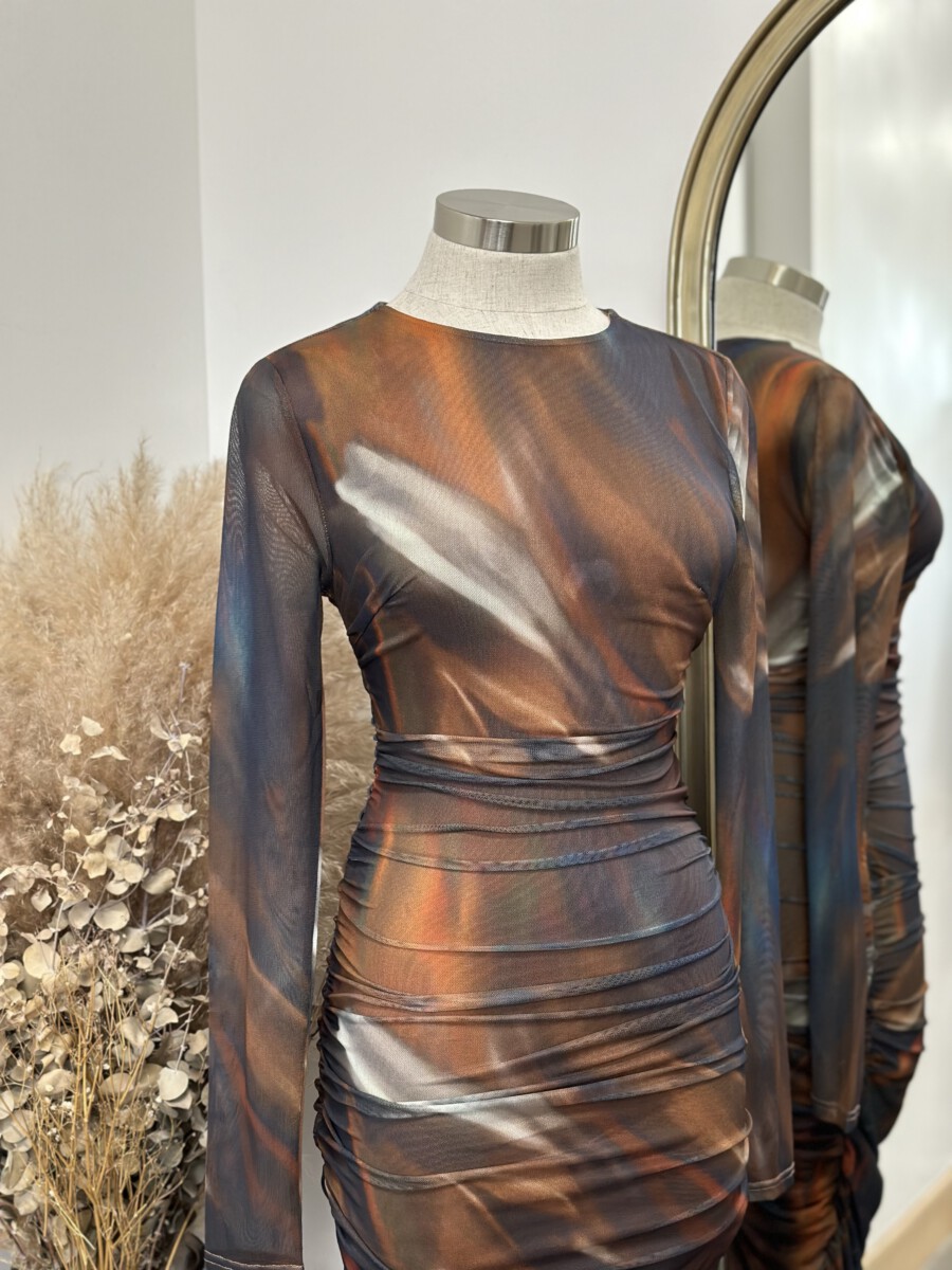 ” Aelin ” Mesh Long Sleeve Dress ( Navy Blue )
