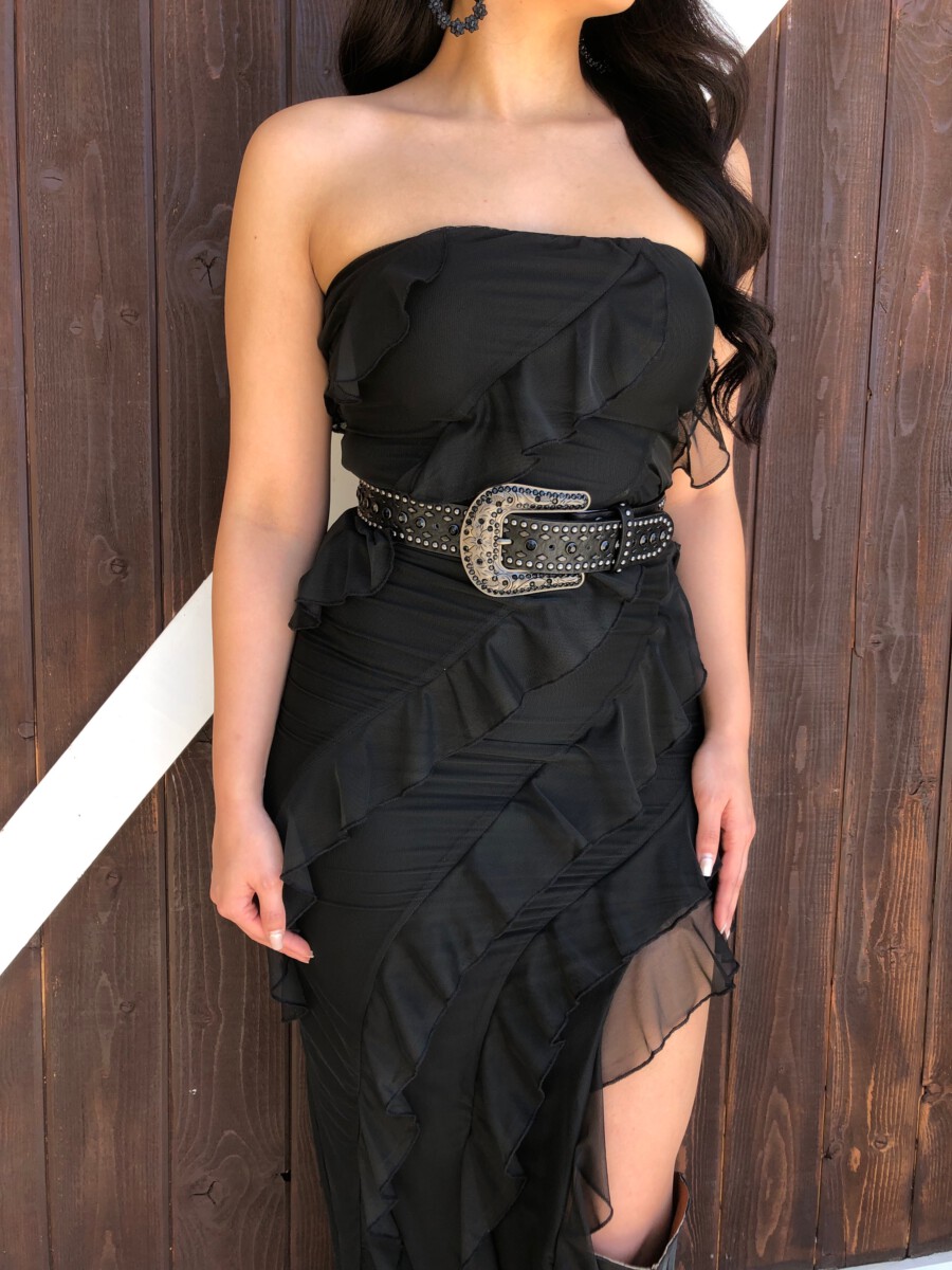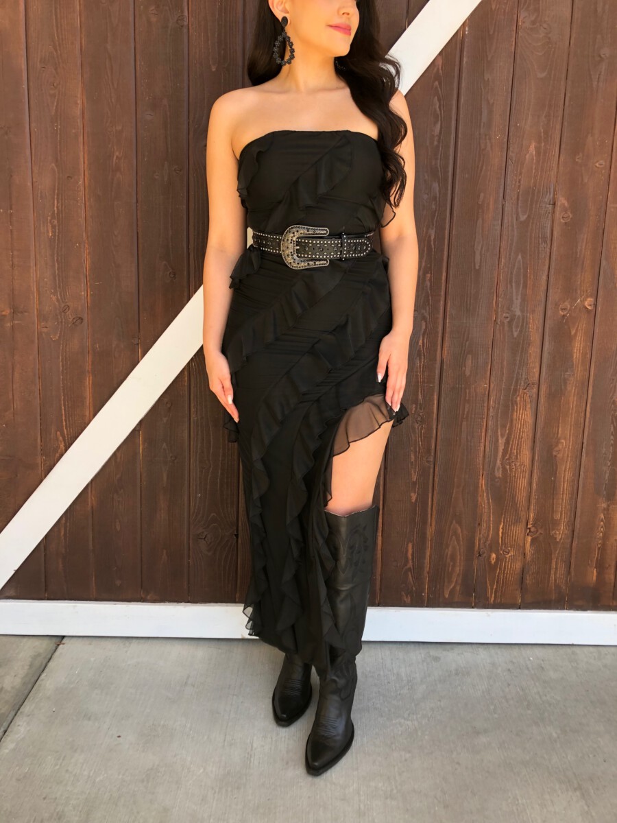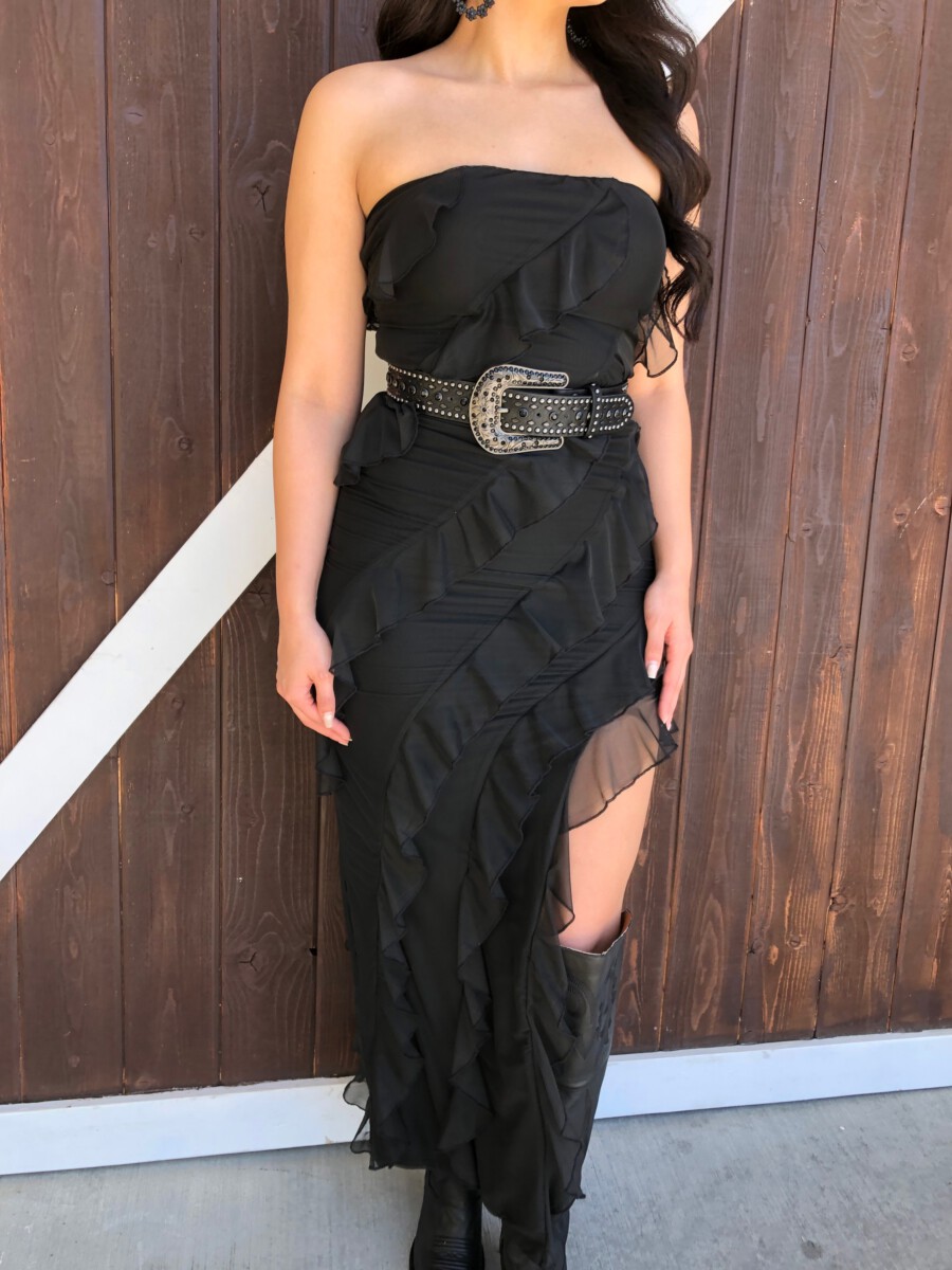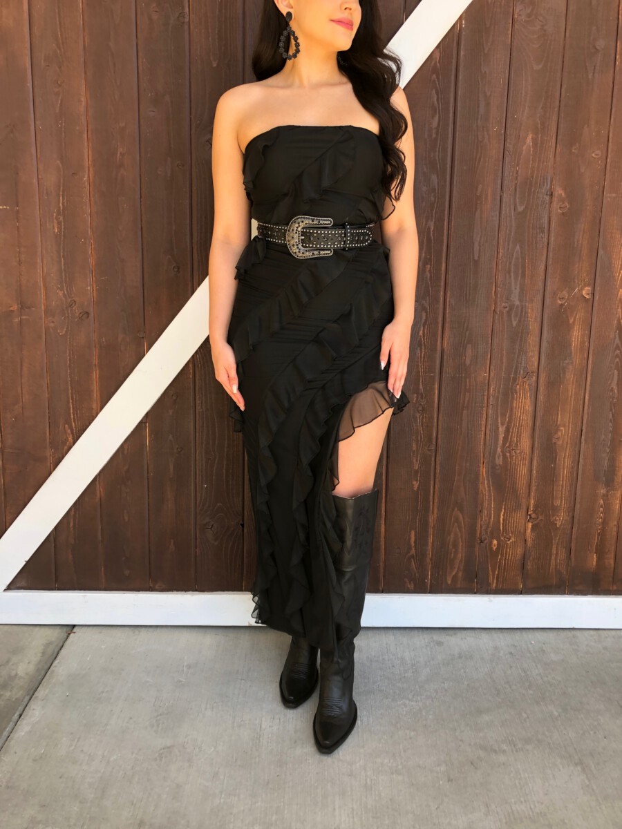 ” Aitana ” Ruffled Strapless Maxi Dress ( Black )