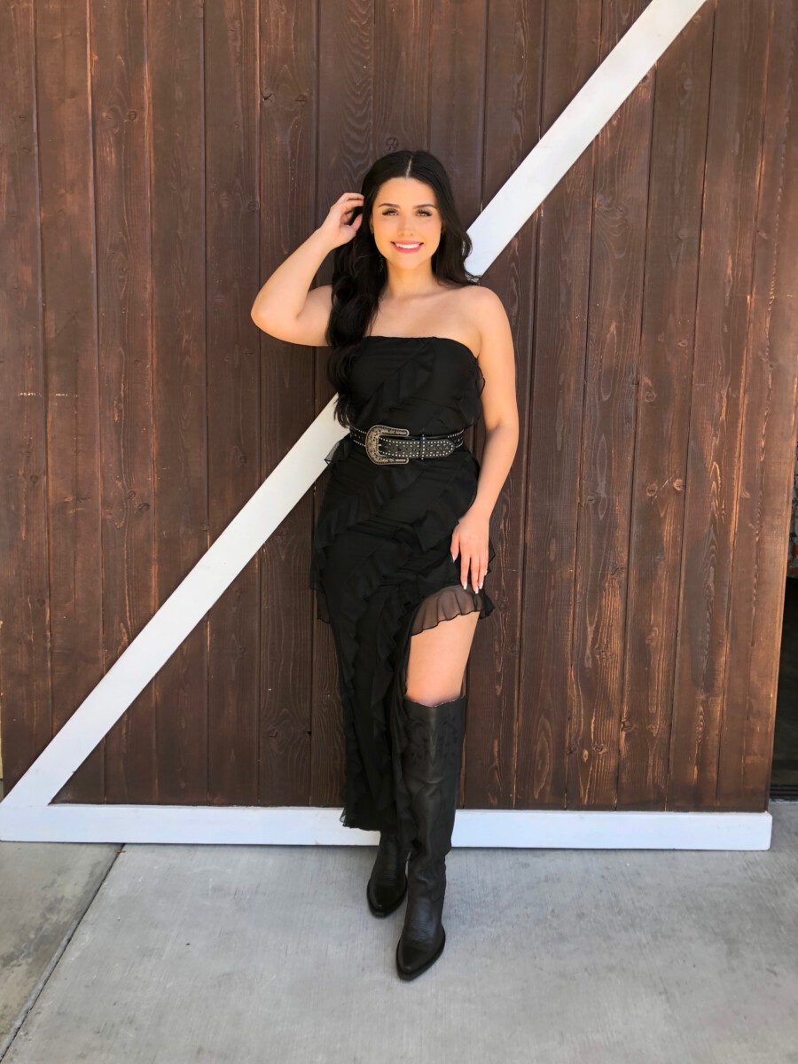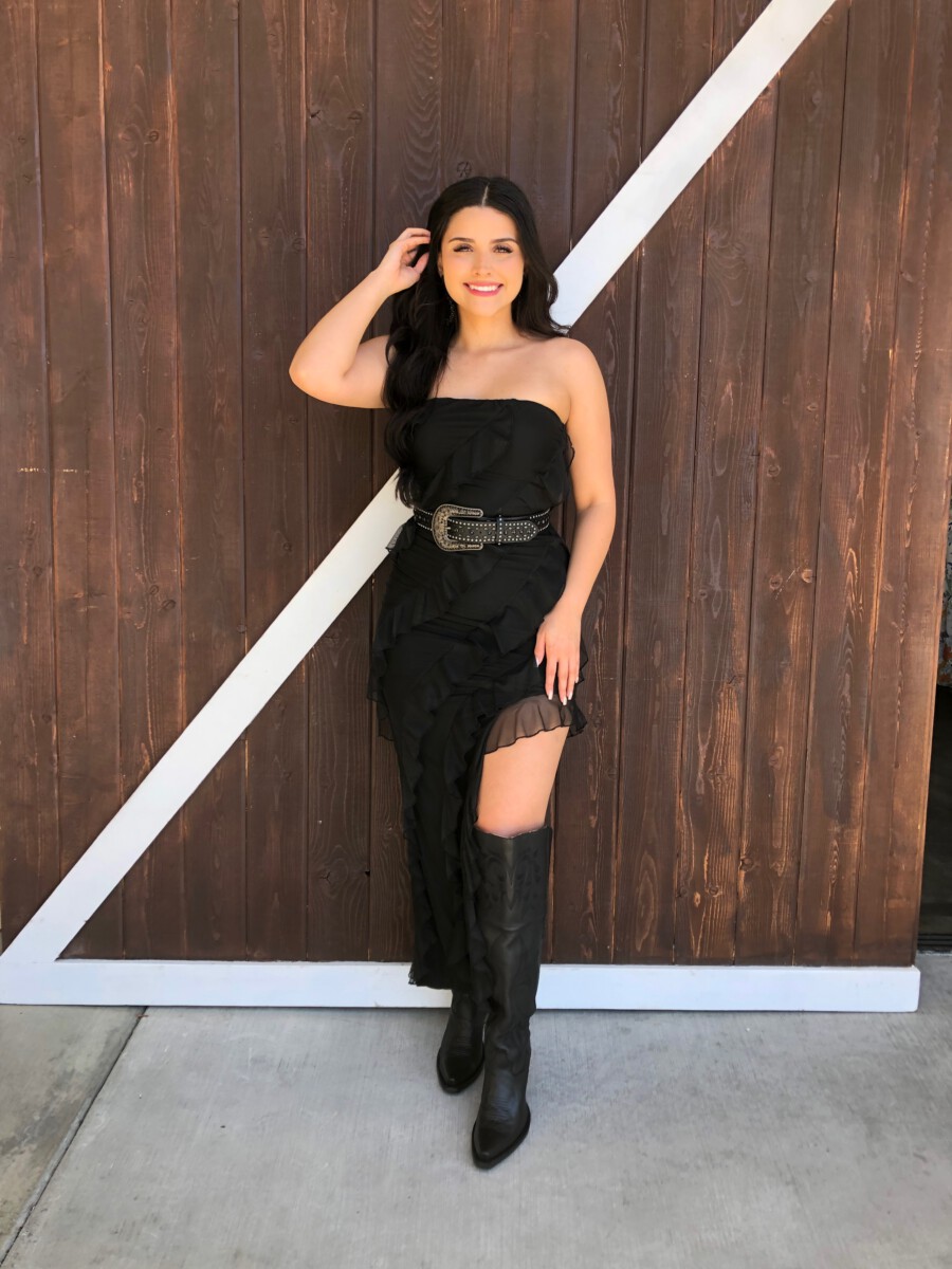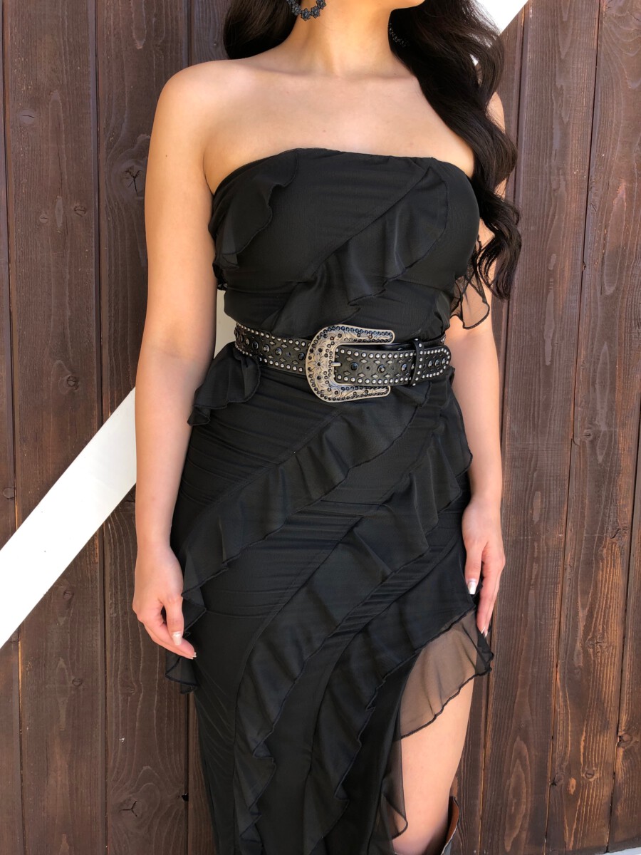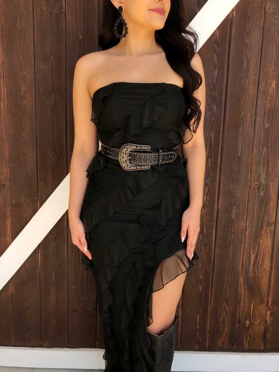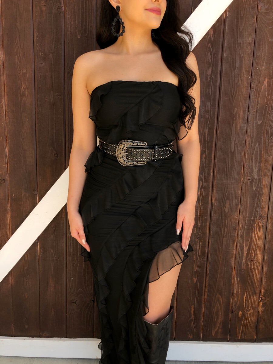 ” Aitana ” Ruffled Strapless Maxi Dress ( Black )