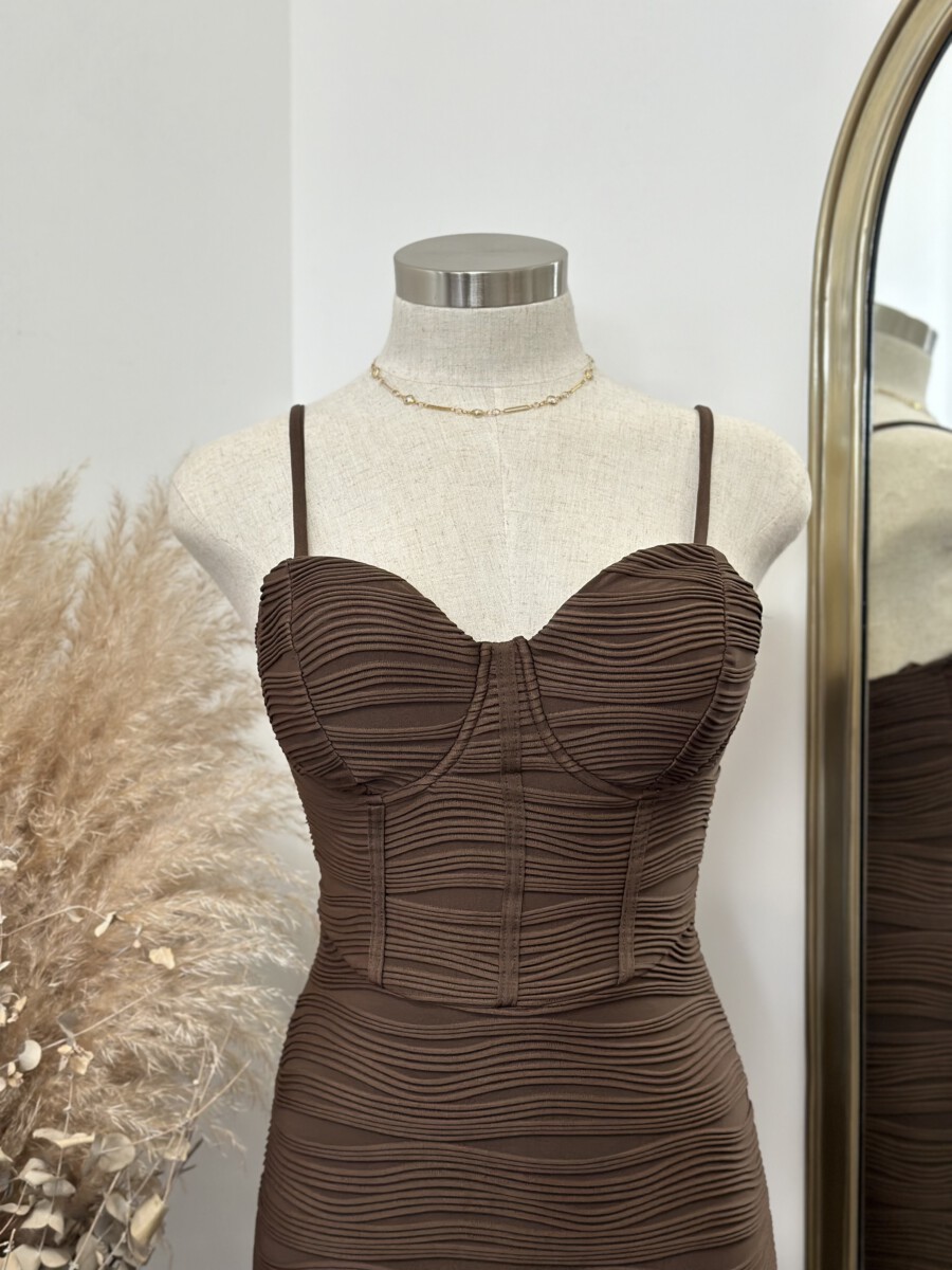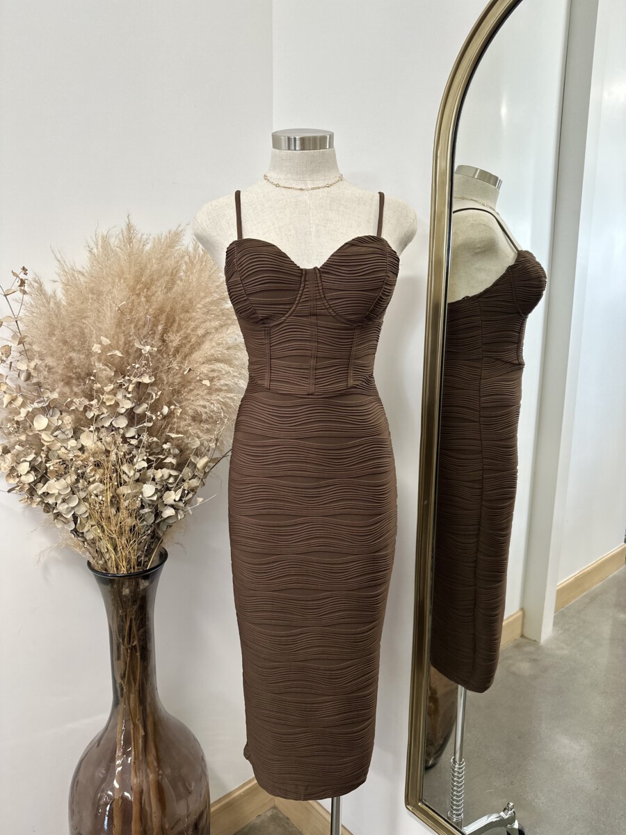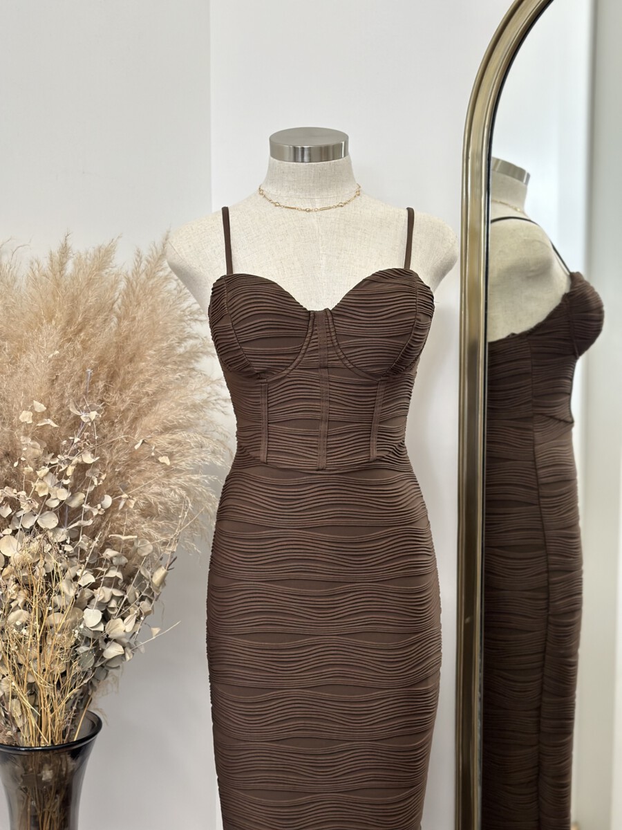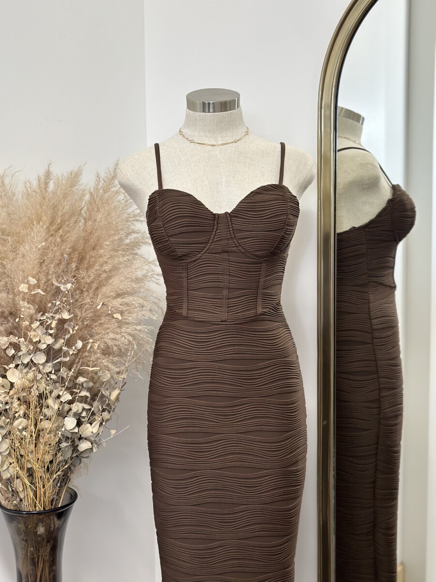 ” Akayla ” Bodycon Midi Dress ( Brown )