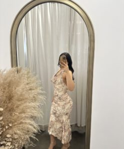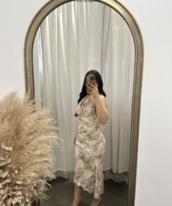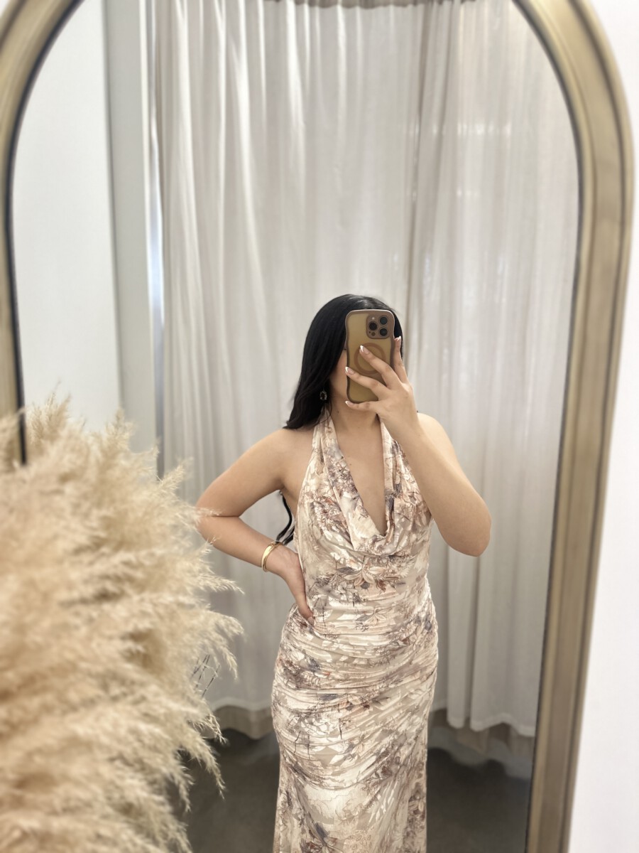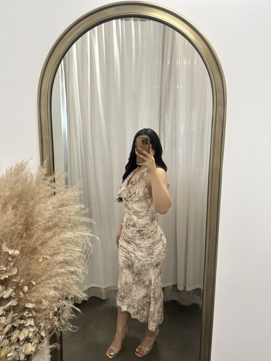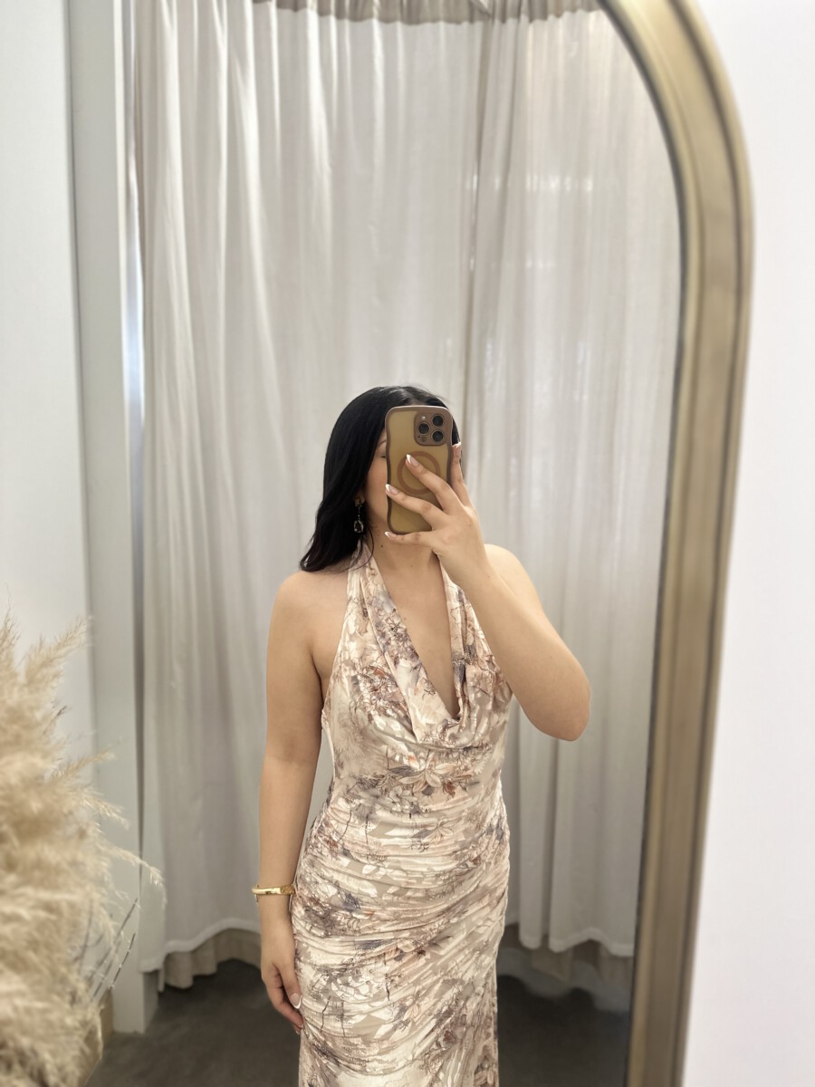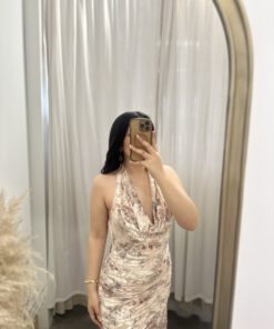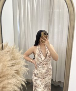 Be the first to review “” Azura ” Halter Cowl Neck Midi Dress ( Taupe / Multi )” Cancel reply