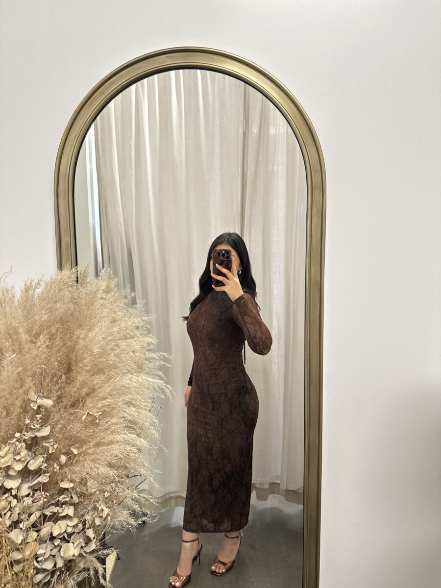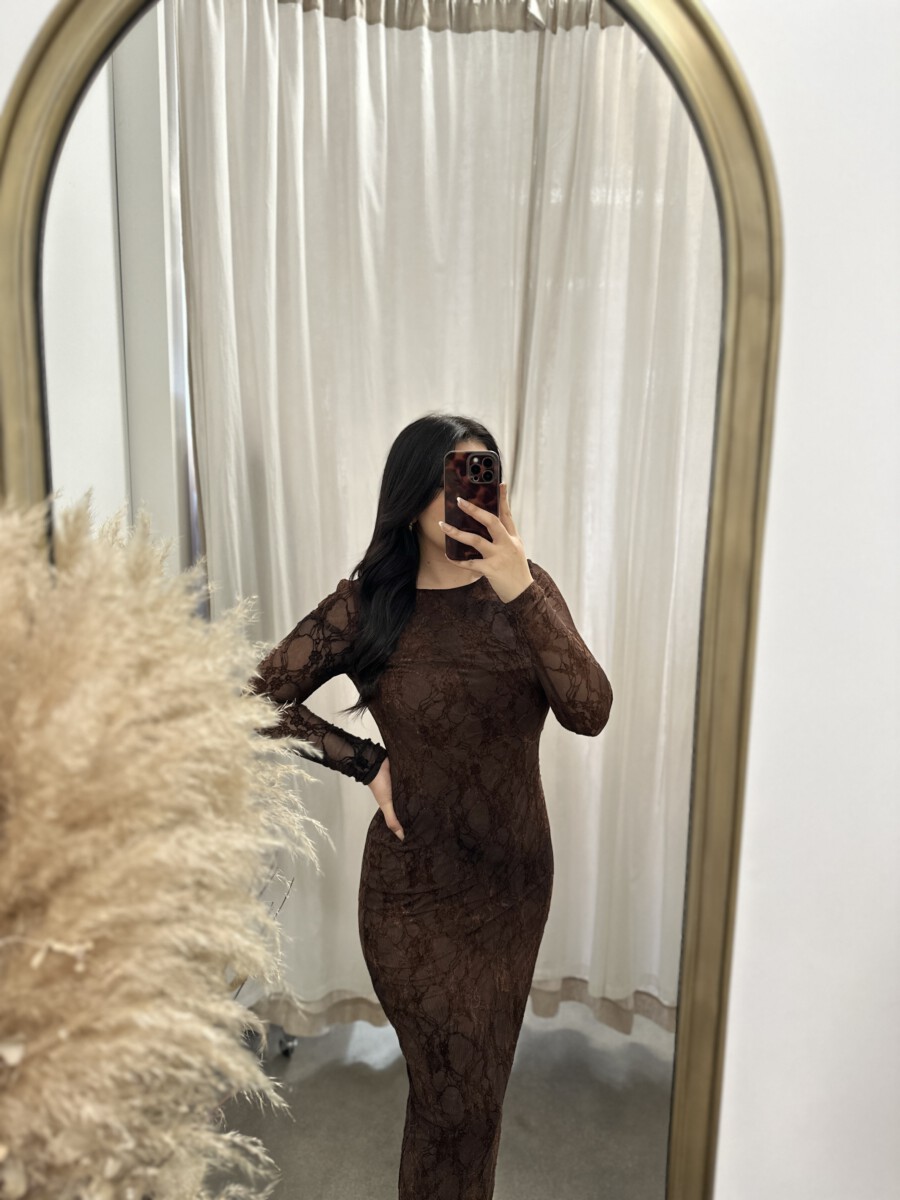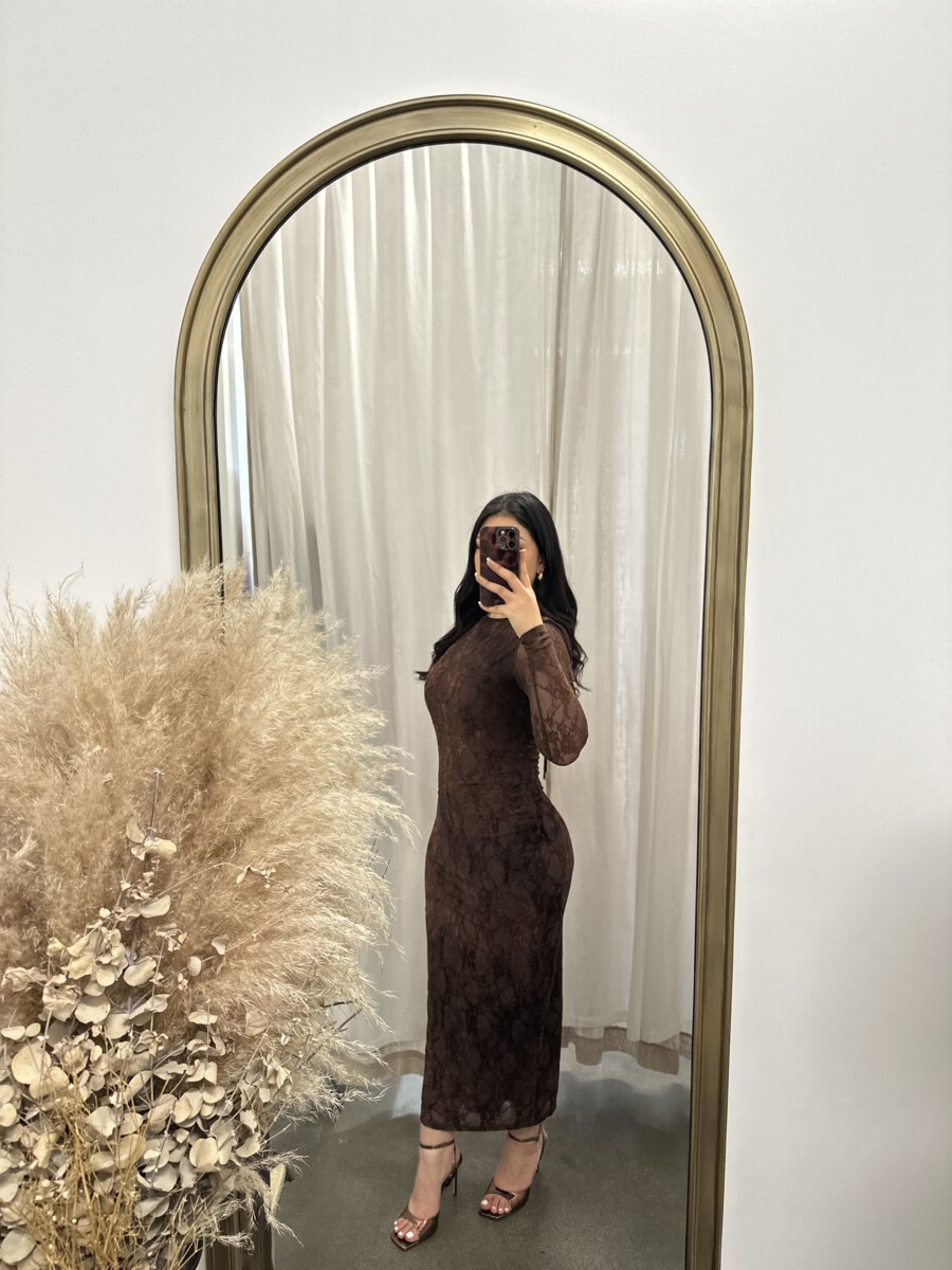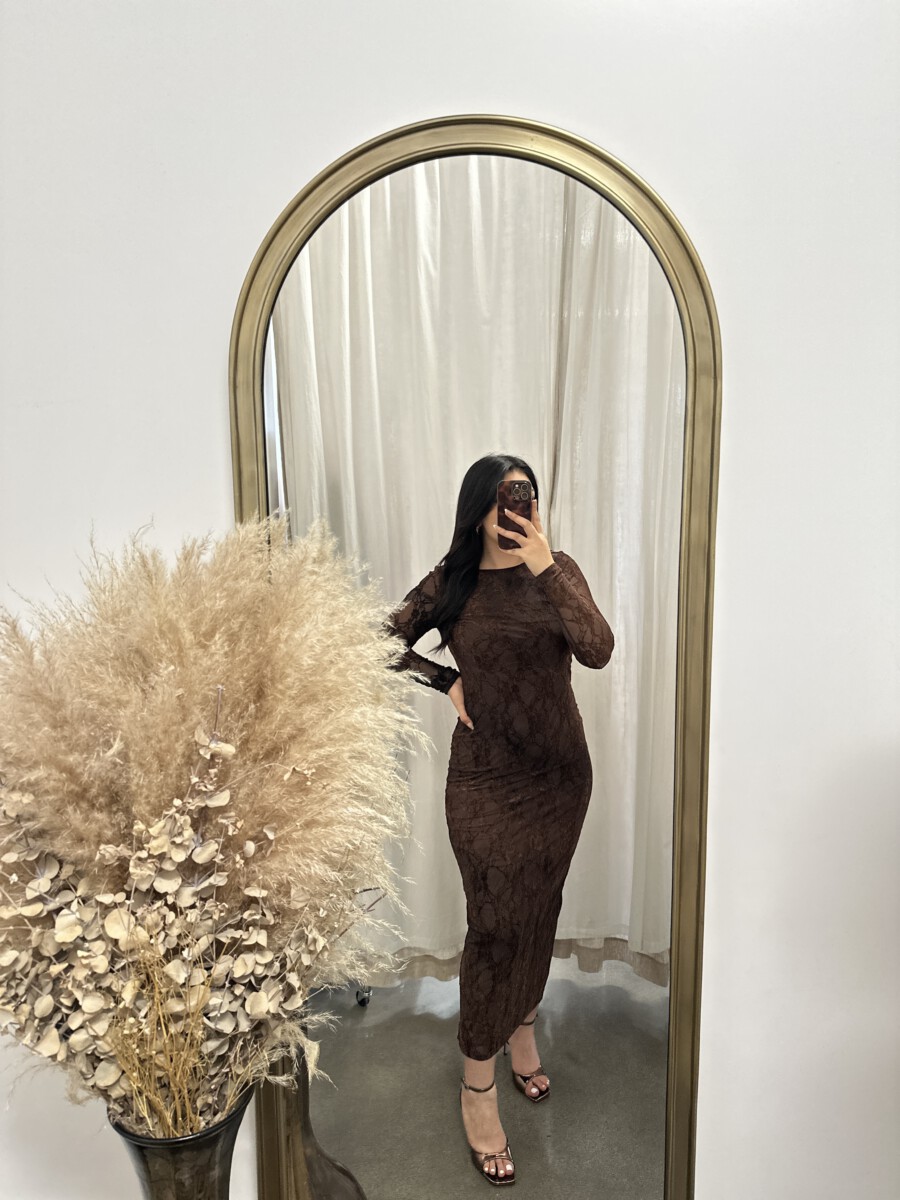 ” Bianca ” Long Sleeve Floral Velvet Dress ( Brown )
