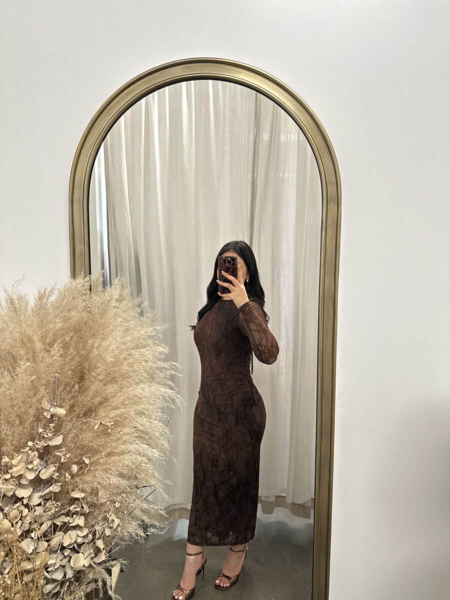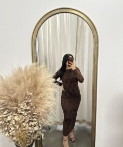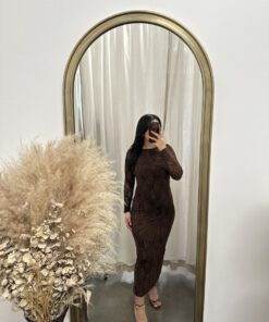 Be the first to review “” Bianca ” Long Sleeve Floral Velvet Dress ( Brown )” Cancel reply