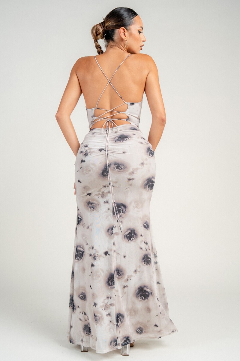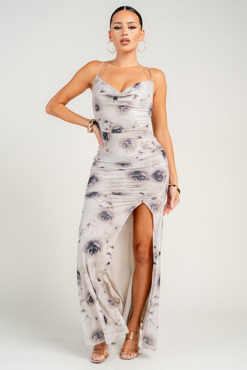 • COWL NECK LACE UP BACK MAXI DRESS
