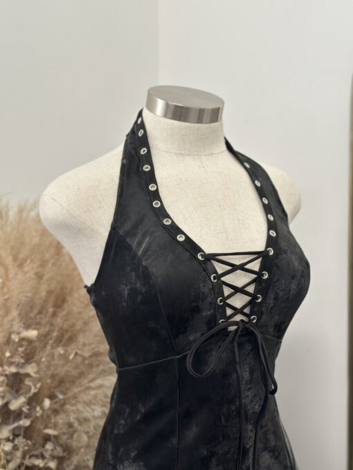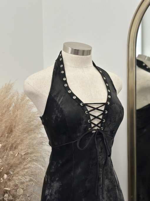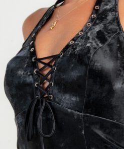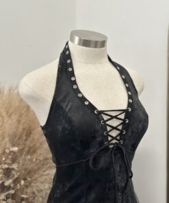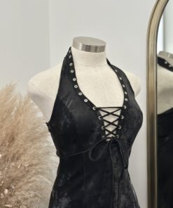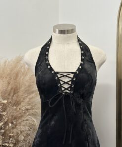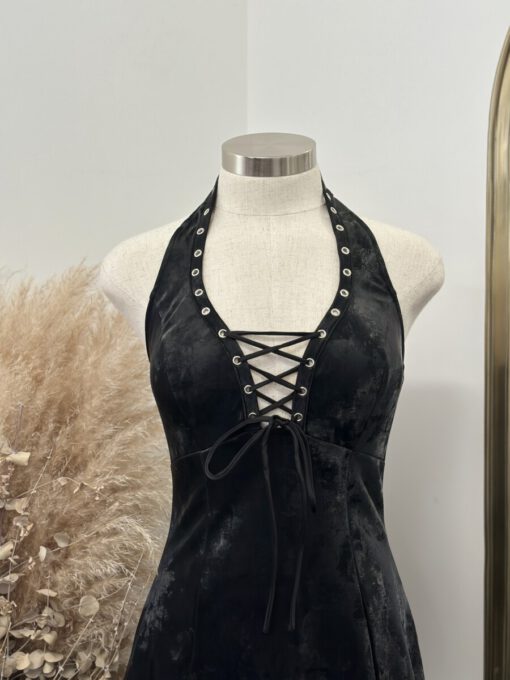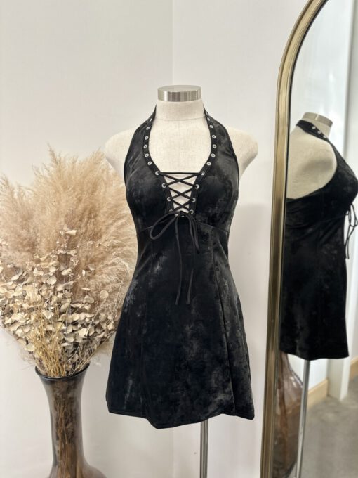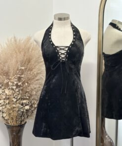 Be the first to review “” Blossom ” Front Lace Up Halter Flare Mini Dress ( Black )” Cancel reply