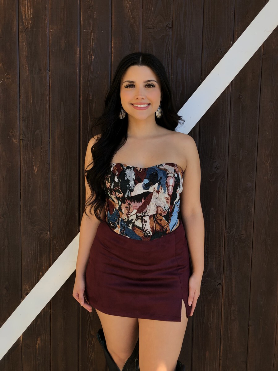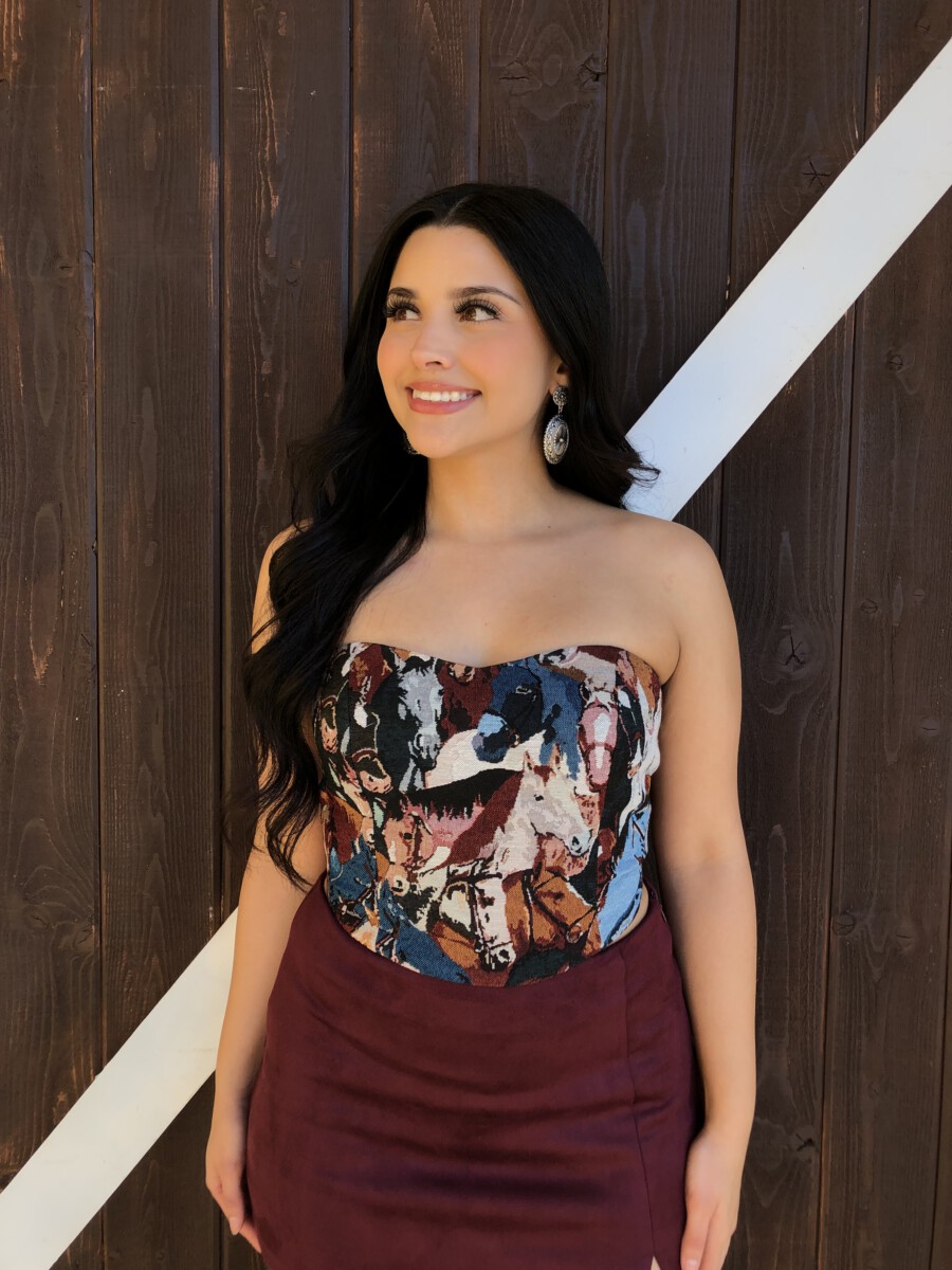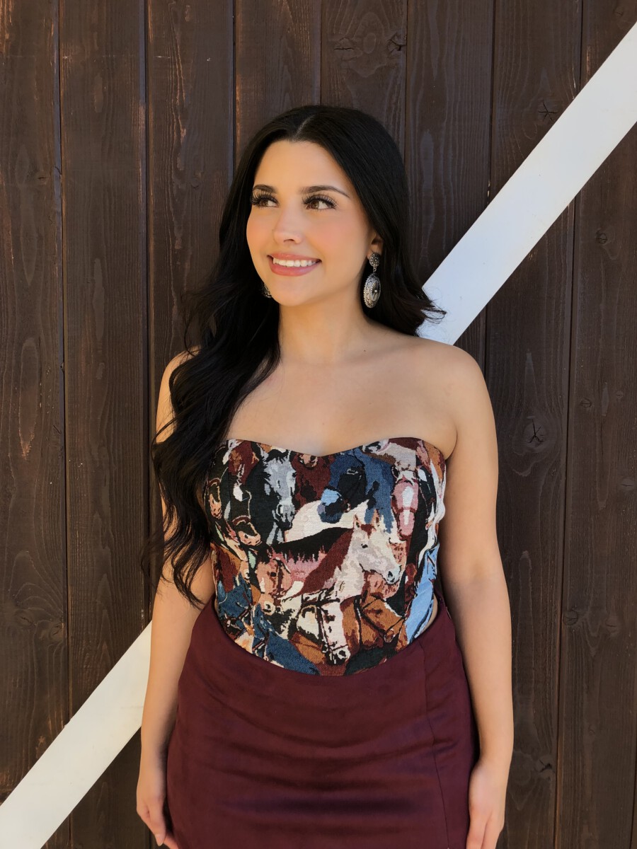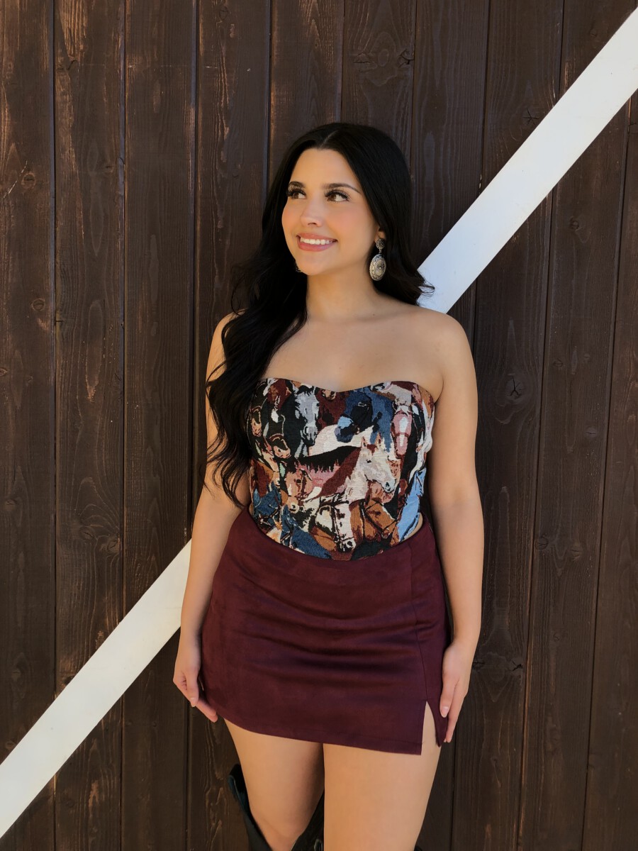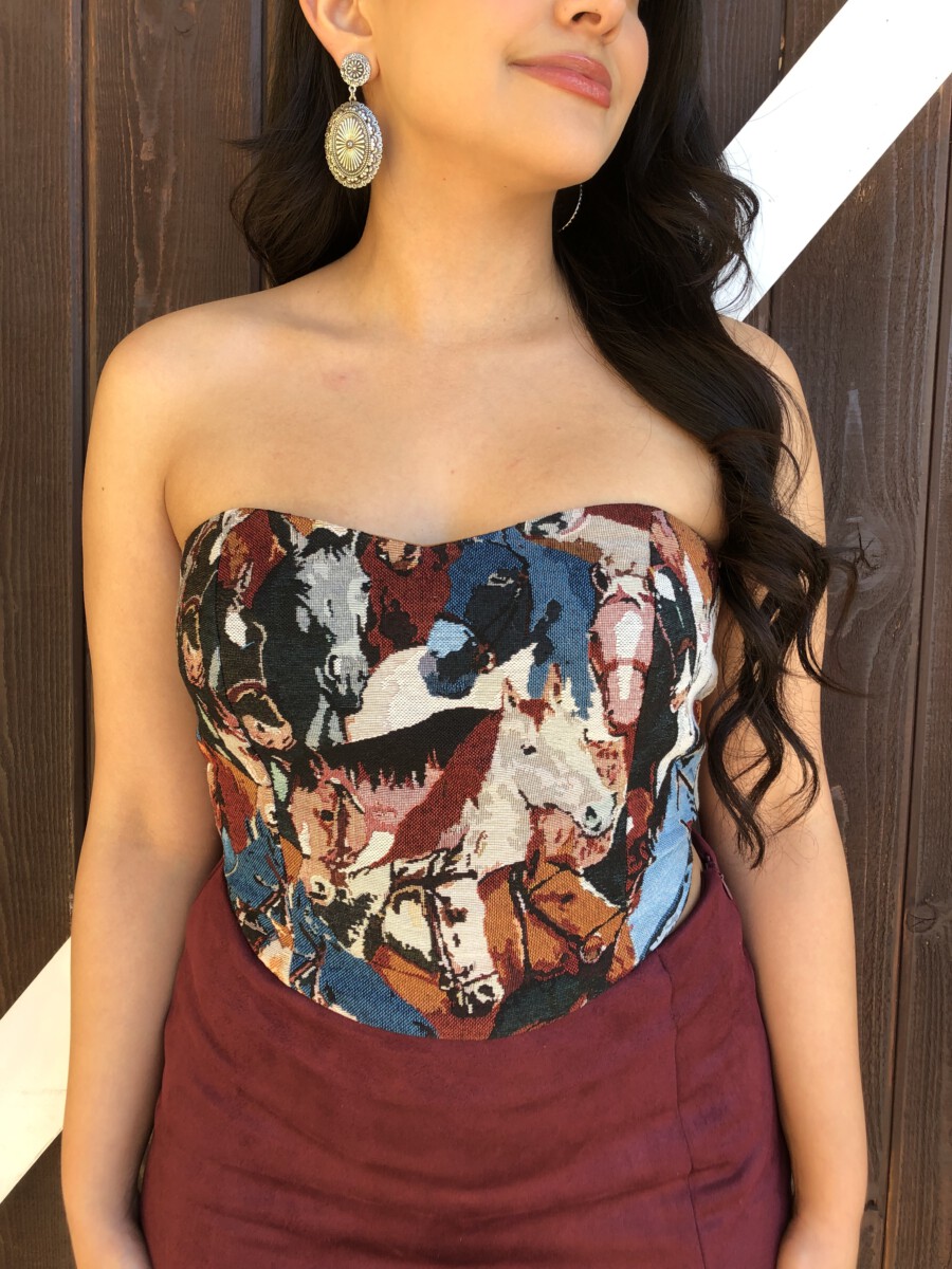 ” Brooke ” Western Horse Corset Top ( Burgundy / Mix )