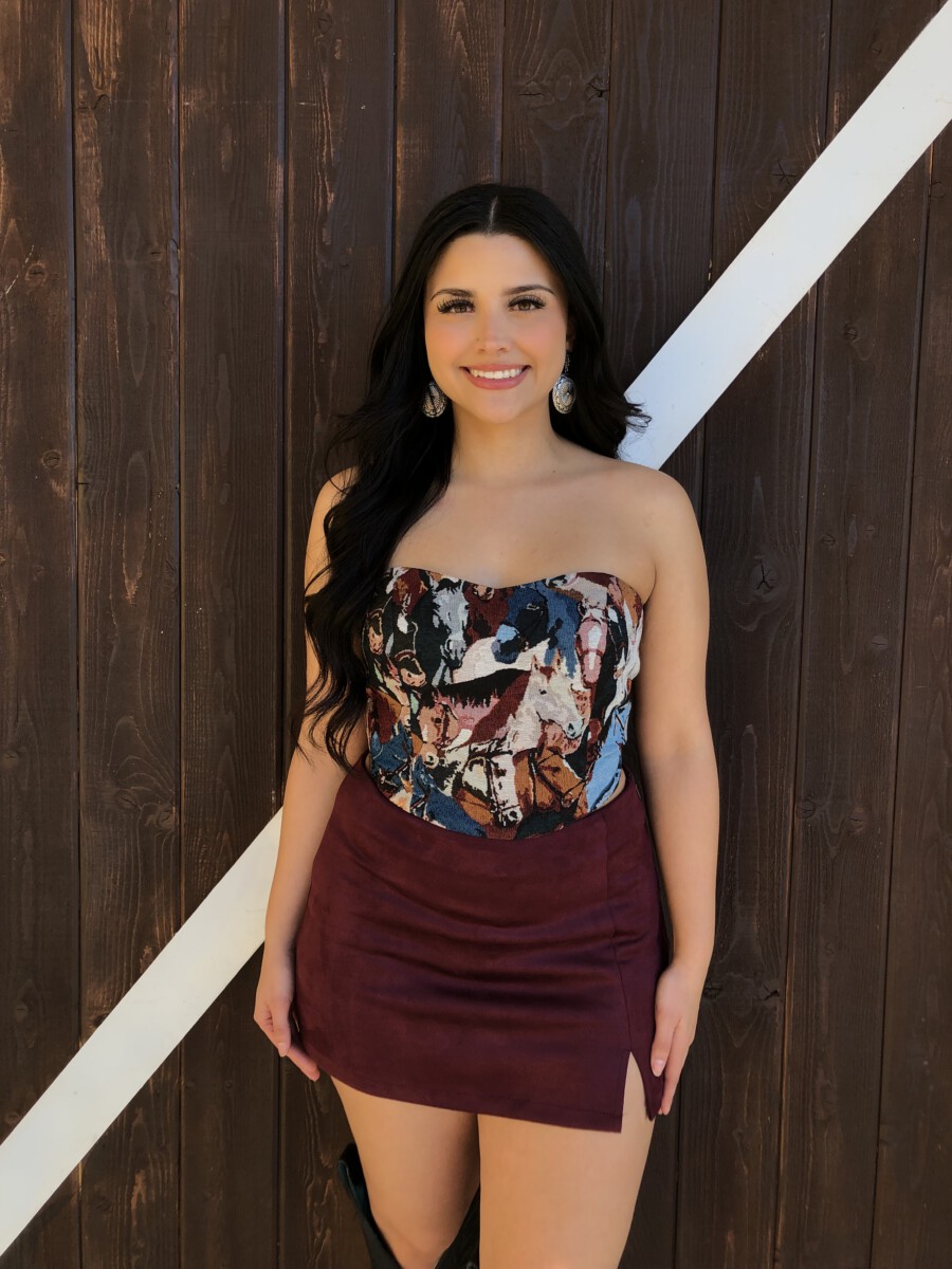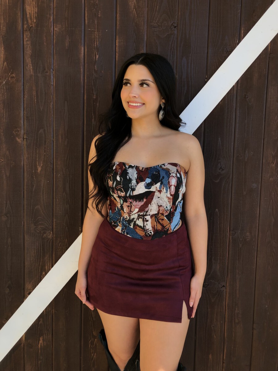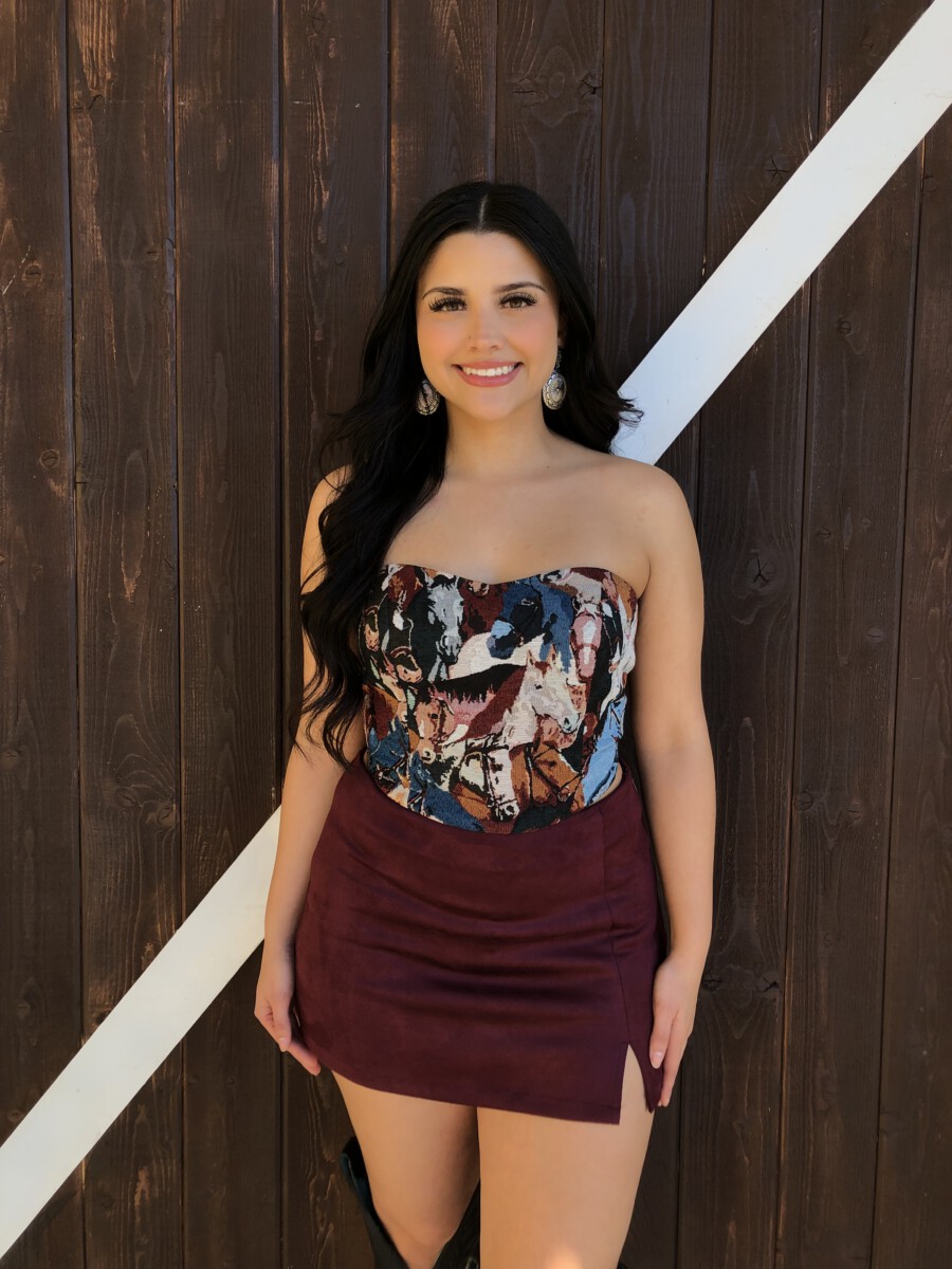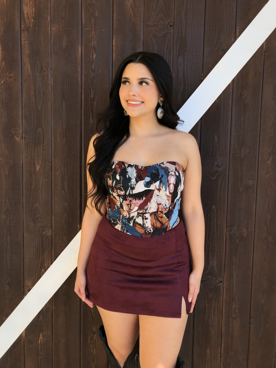 ” Brooke ” Western Horse Corset Top ( Burgundy / Mix )