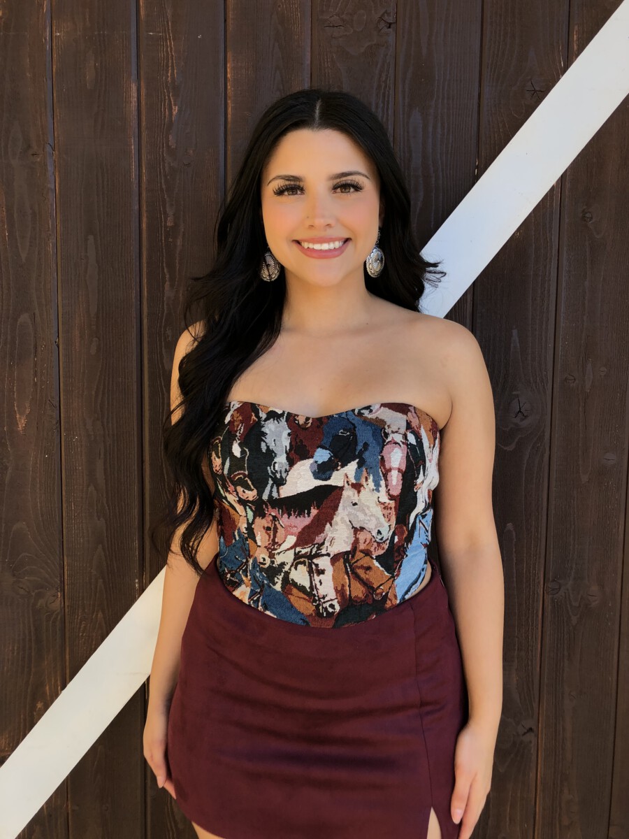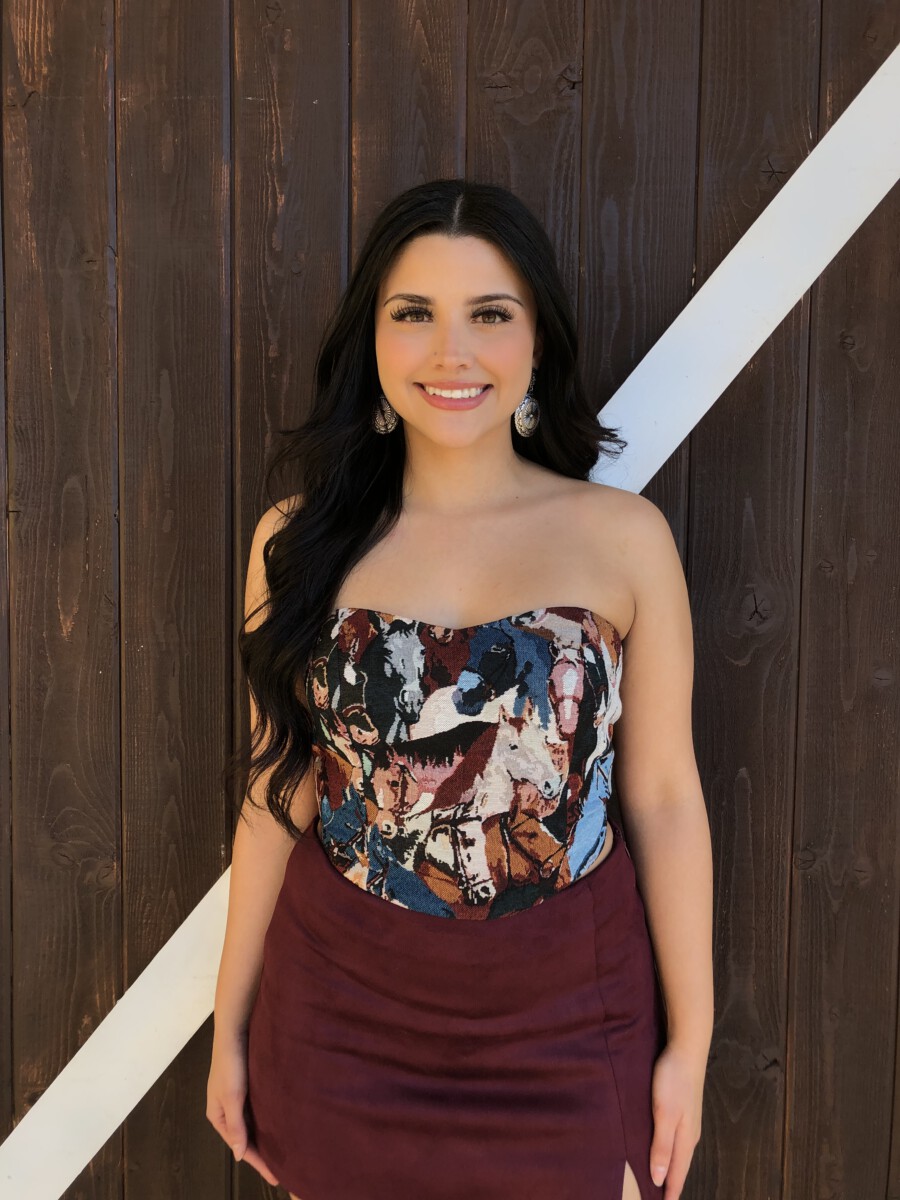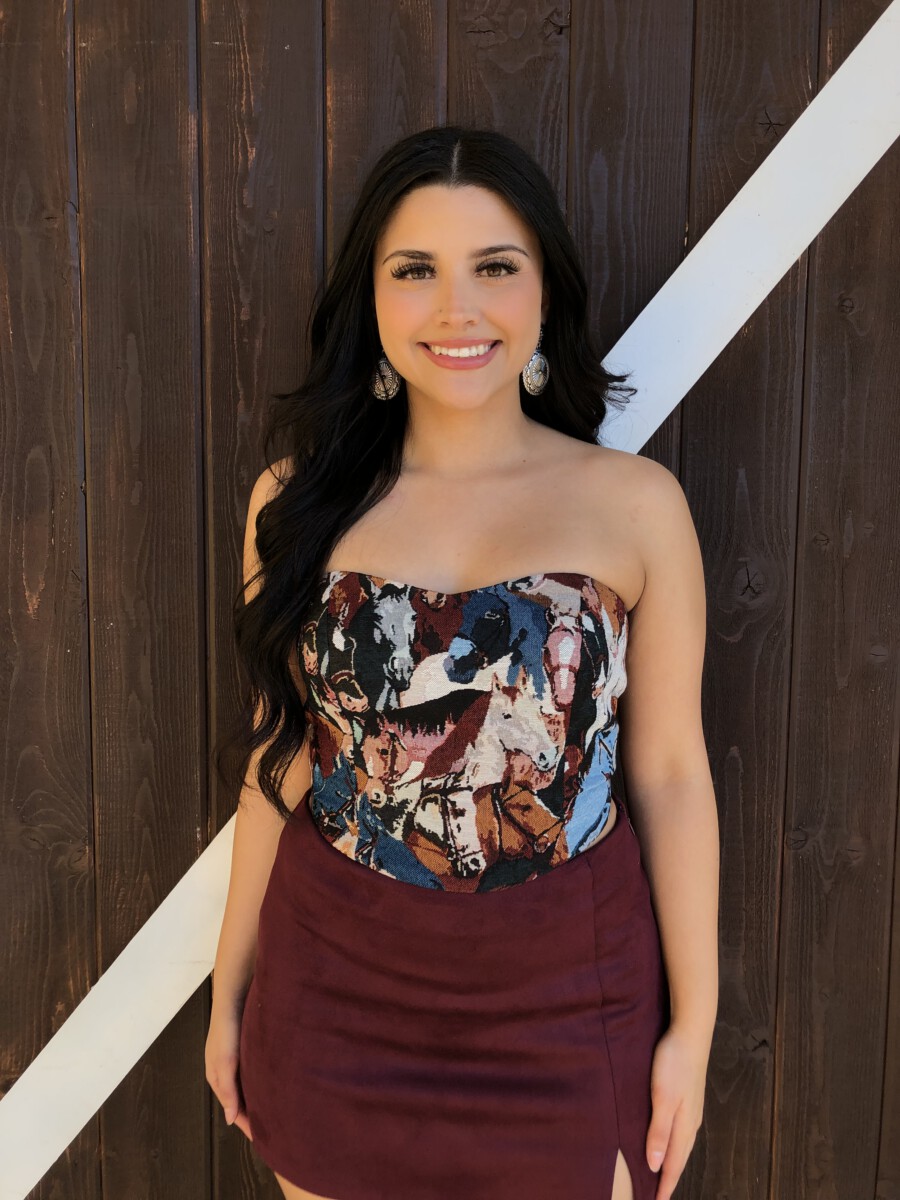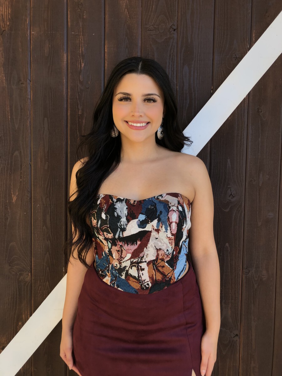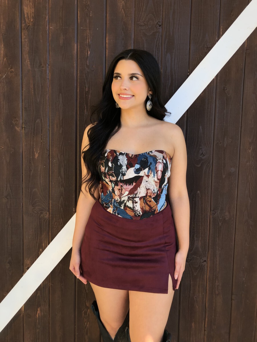 ” Brooke ” Western Horse Corset Top ( Burgundy / Mix )