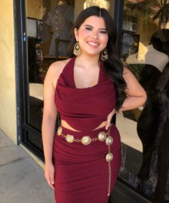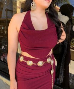 Be the first to review “” Elara ” Cowl Neck Top & Side Slit Maxi Skirt Set ( Wine )” Cancel reply