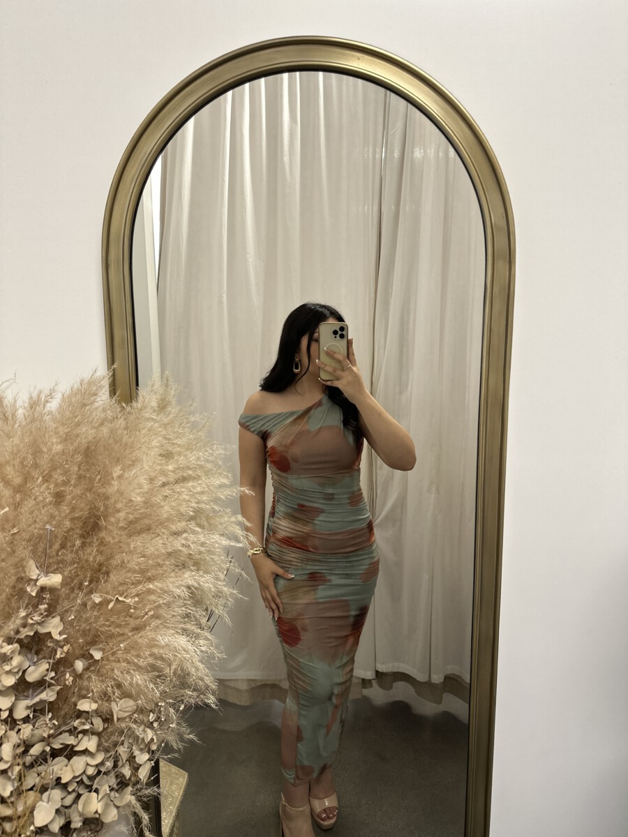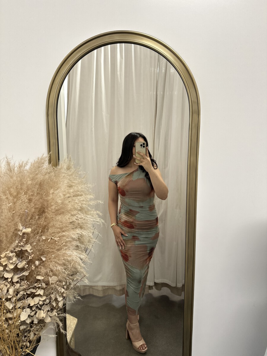 Be the first to review “” Harlyn ” Asymmetrical Neck Mesh Maxi Dress ( Mint / Mix )” Cancel reply