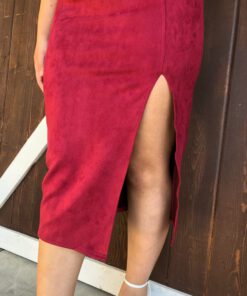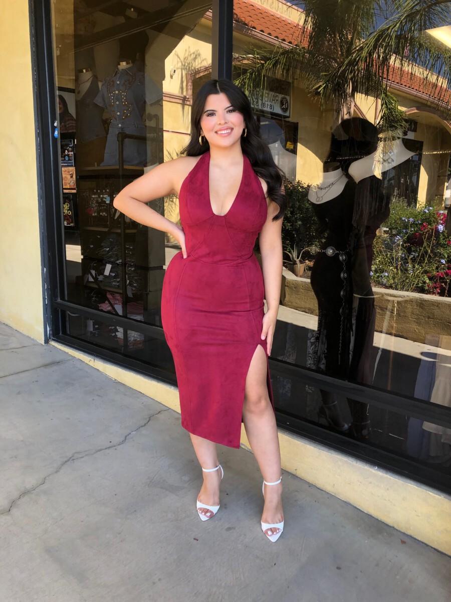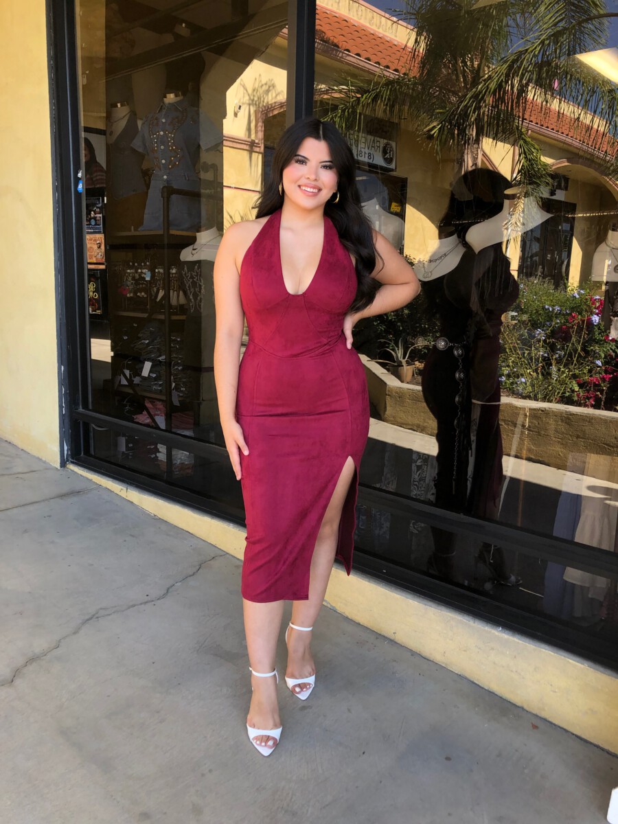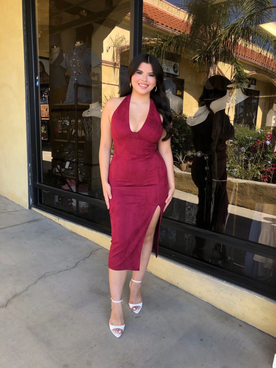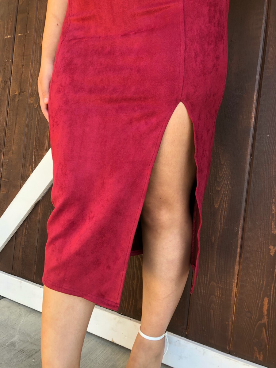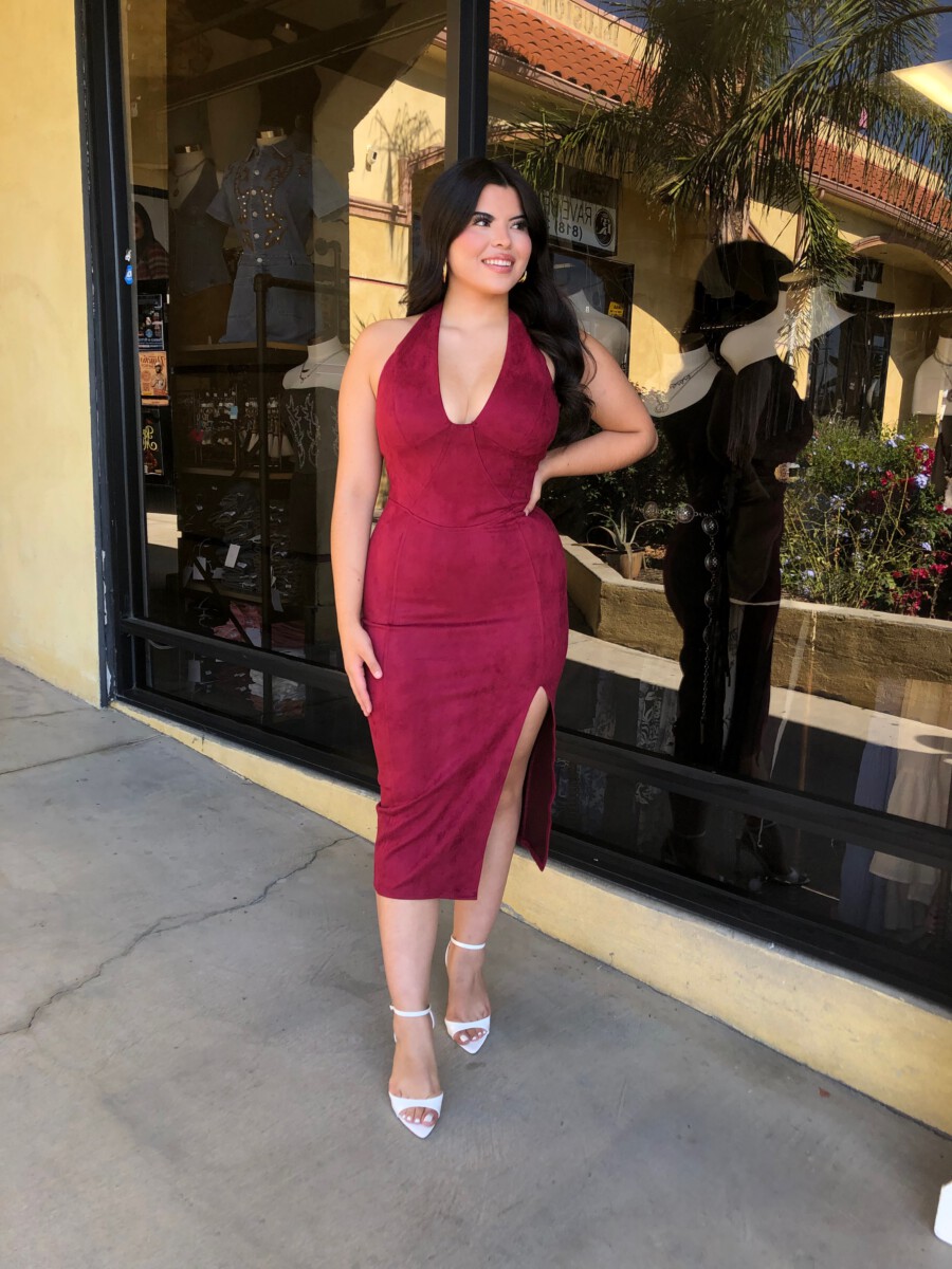” Jamila ” Faux Suede Halter Dress Midi Dress ( Wine )