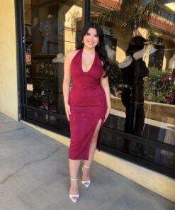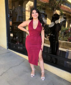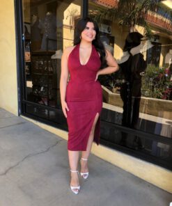 Be the first to review “” Jamila ” Faux Suede Halter Dress Midi Dress ( Wine )” Cancel reply