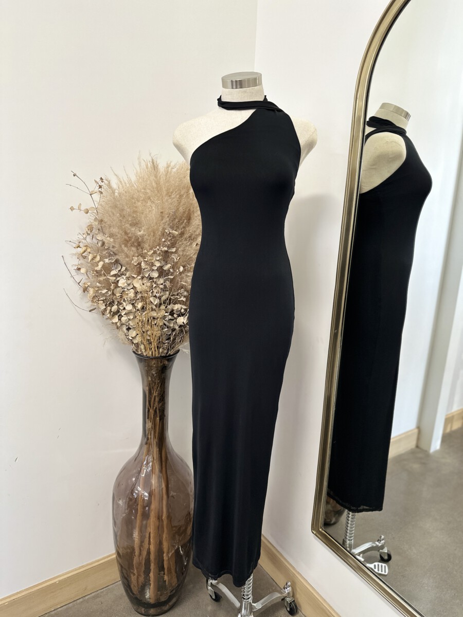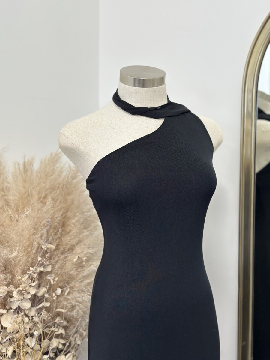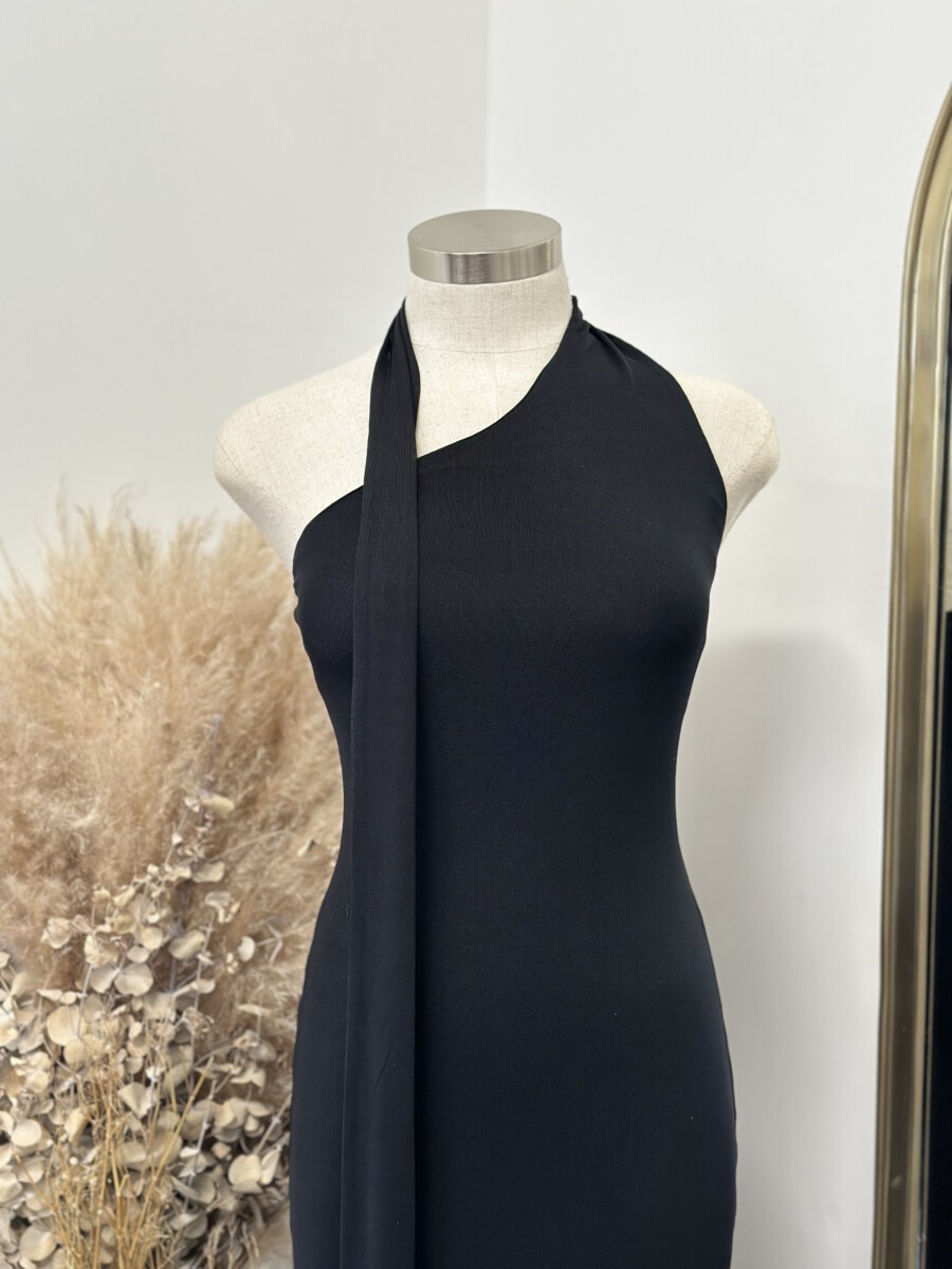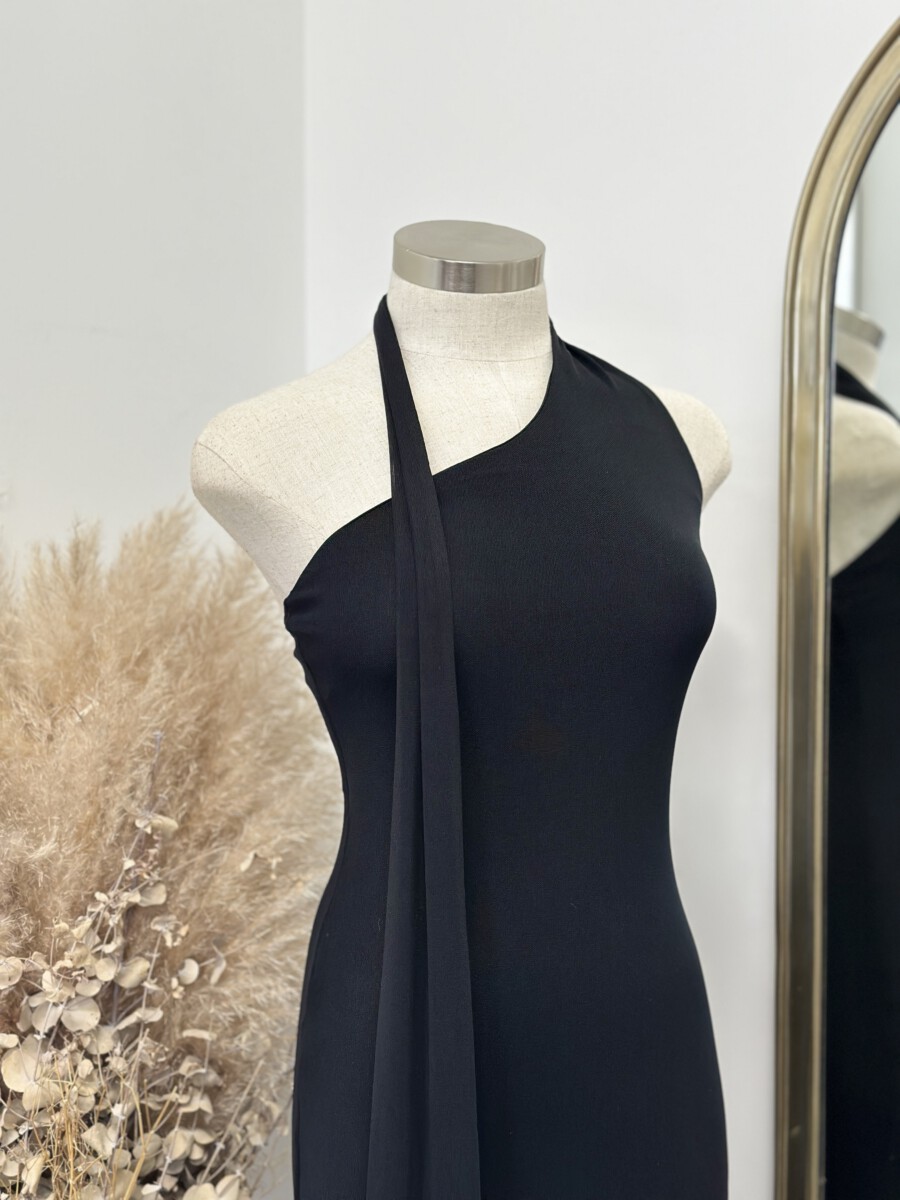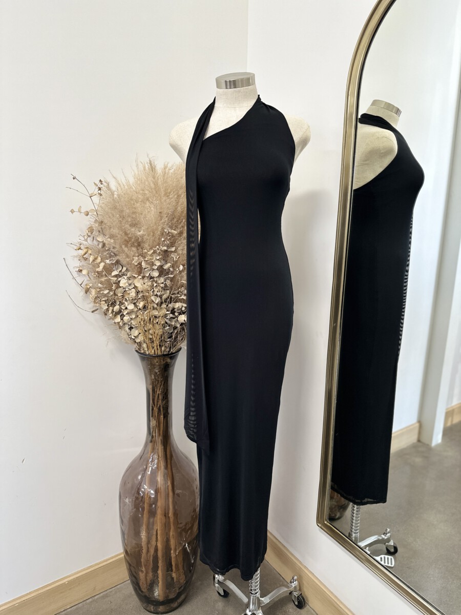 ” Josette ” Maxi Scarf Detail Dress ( Black )