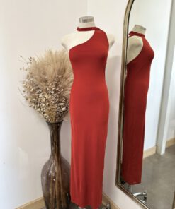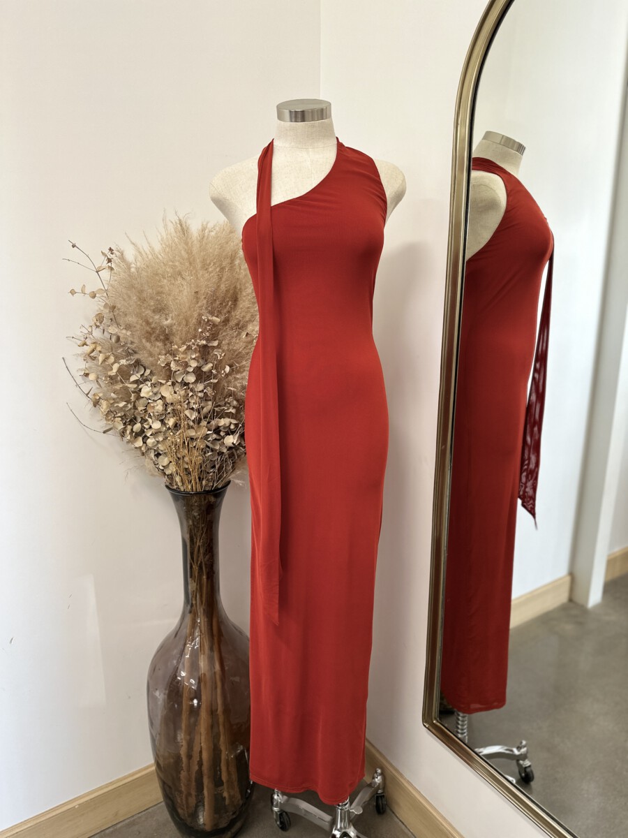 Be the first to review “” Josette ” Maxi Scarf Detail Dress ( Tomato Red )” Cancel reply