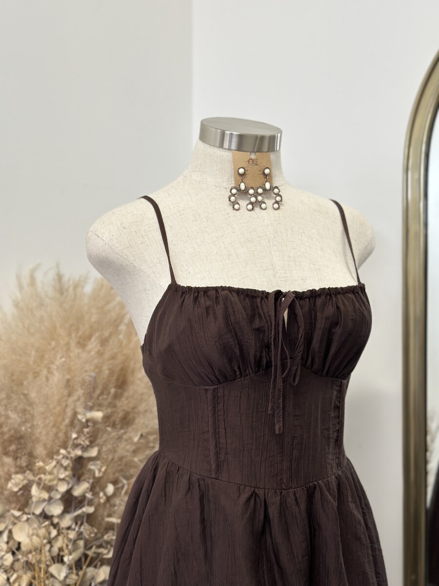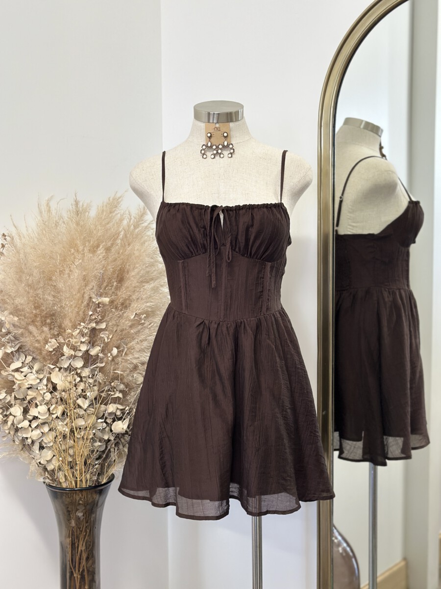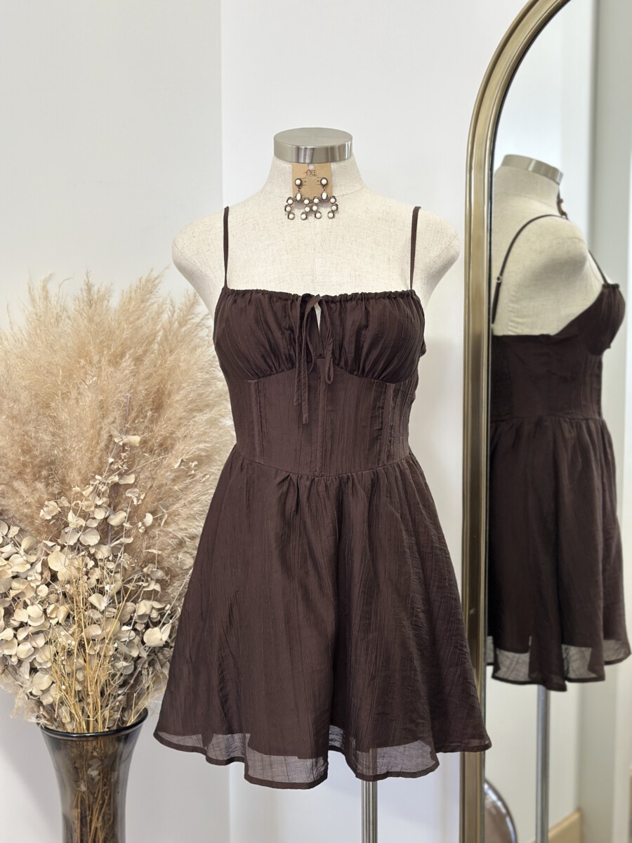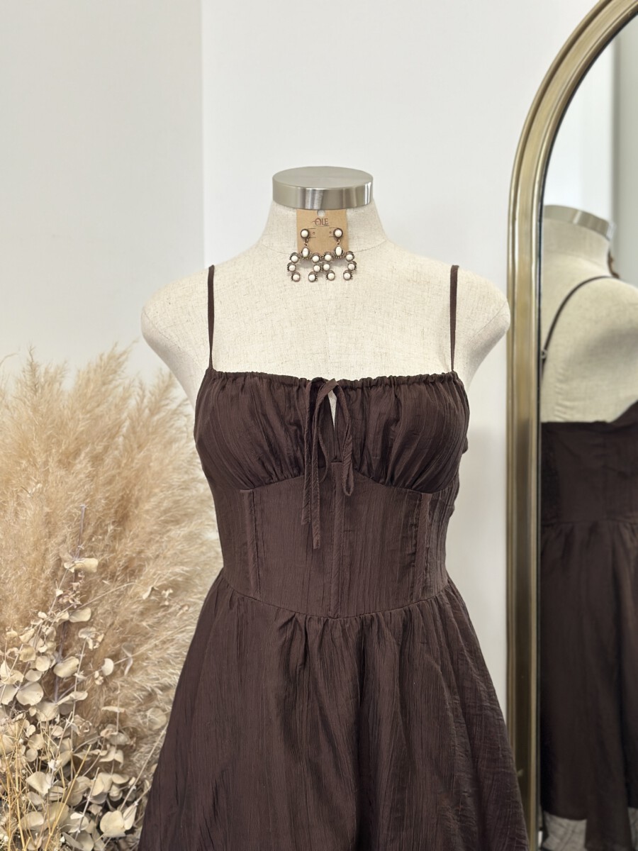 Be the first to review “” Kalene ” Corset Dress ( Dark Brown )” Cancel reply