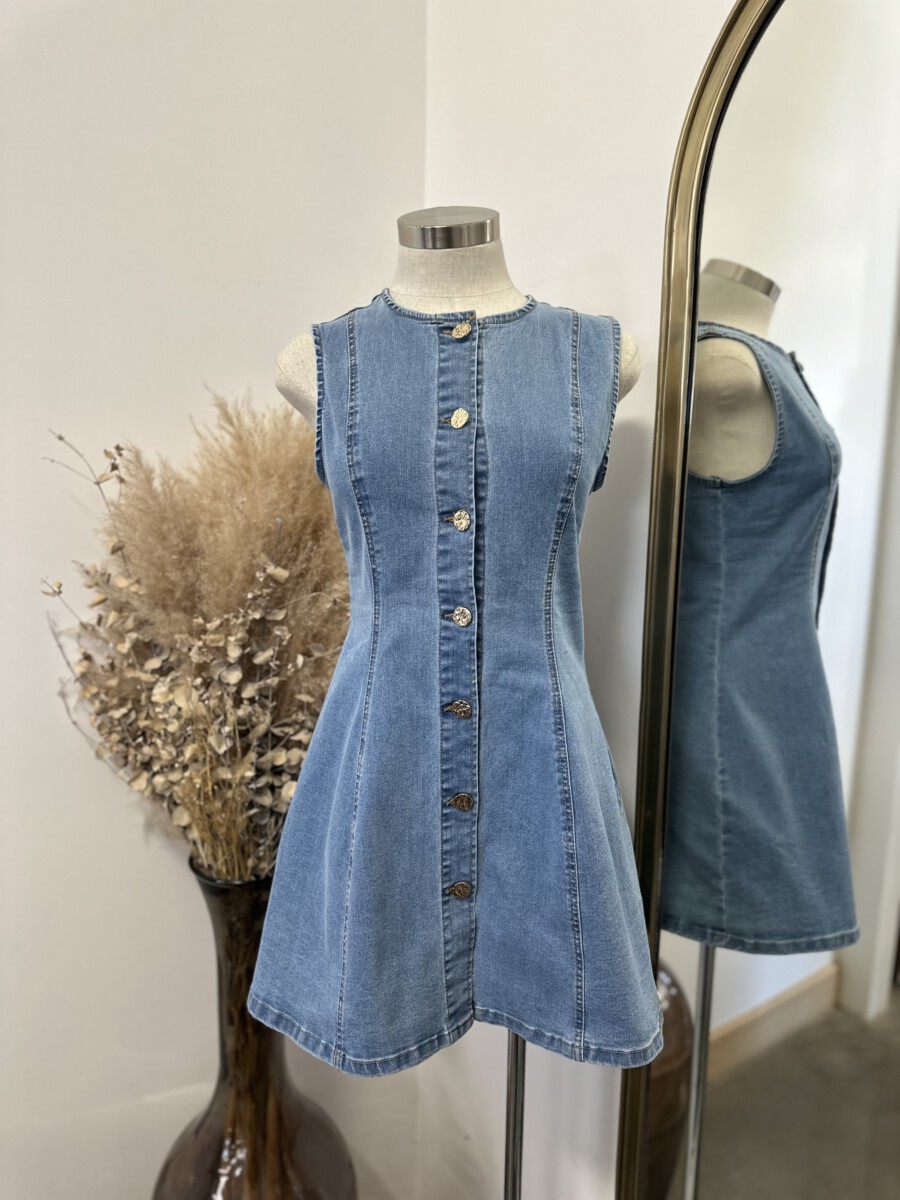 ” Kate ” Sleeveless Denim Mini Dress ( Light Blue )
