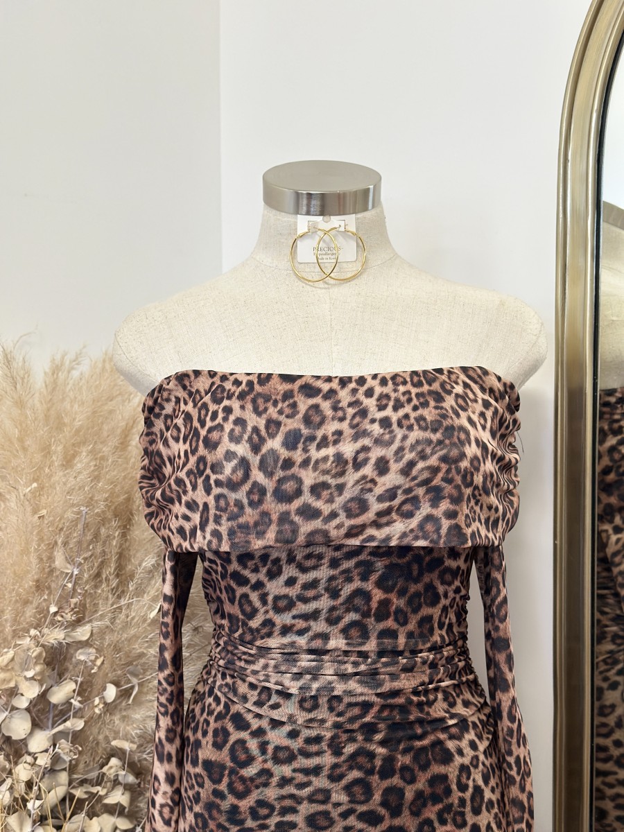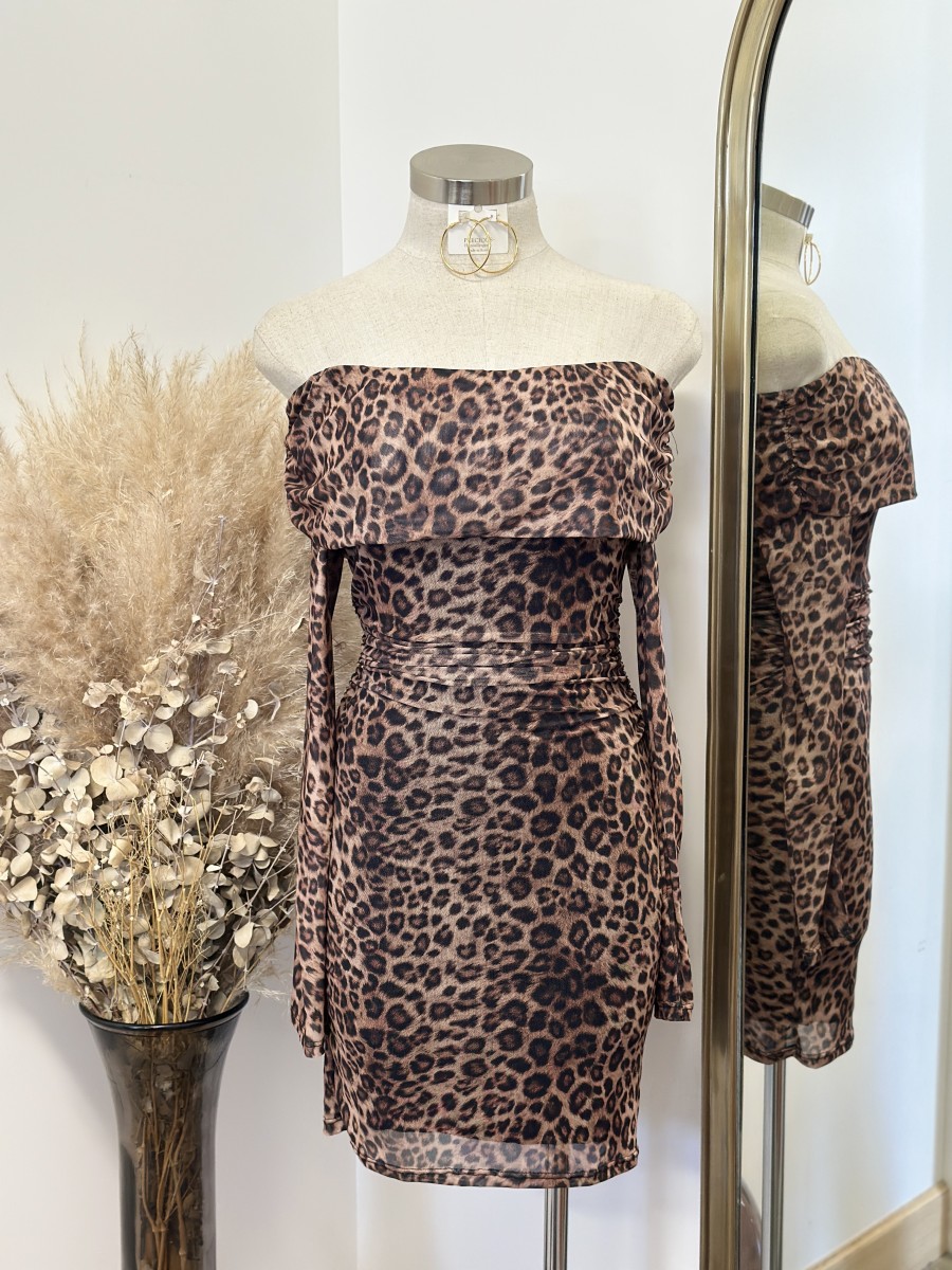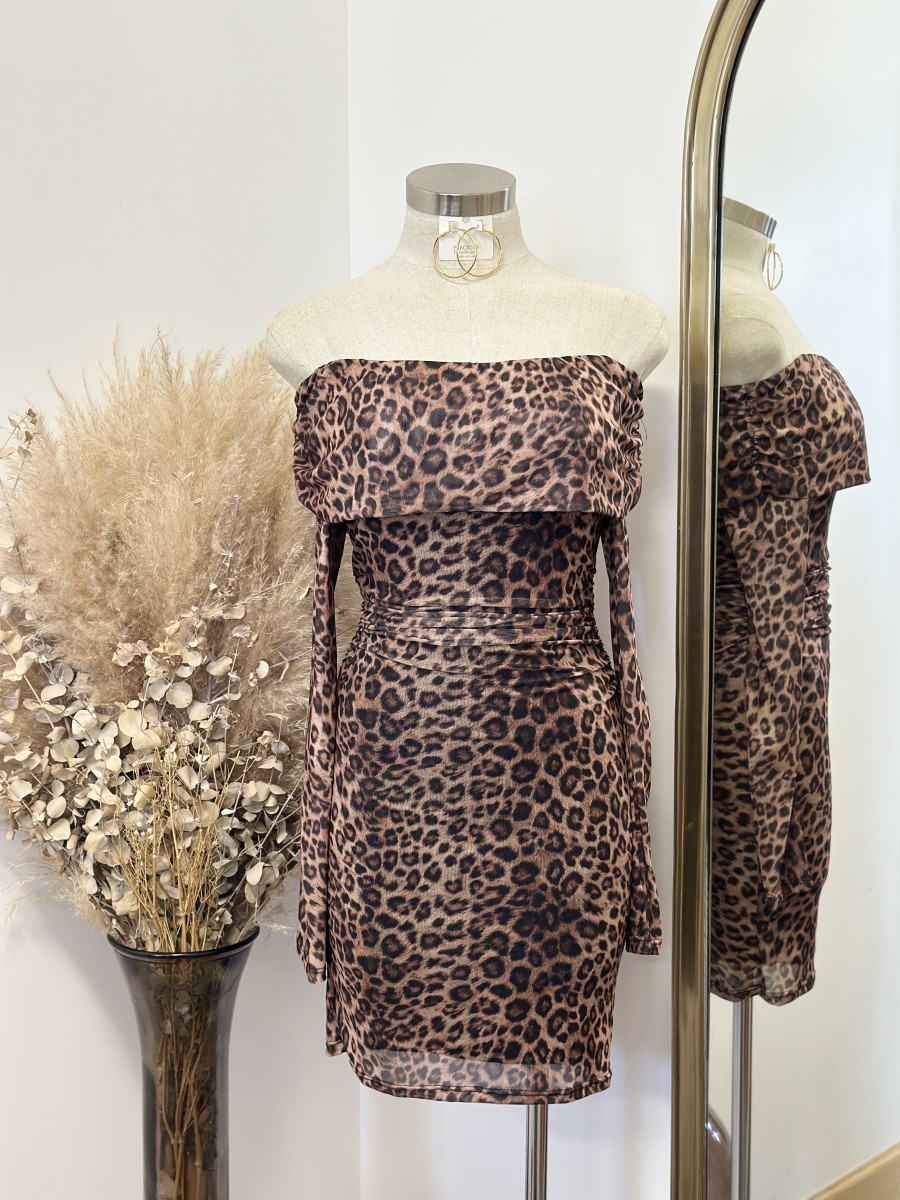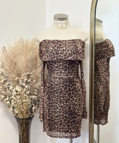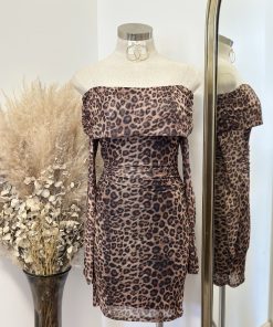 Be the first to review “” Kelli ” Leopard Off Shoulder Mini Dress” Cancel reply