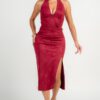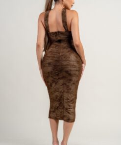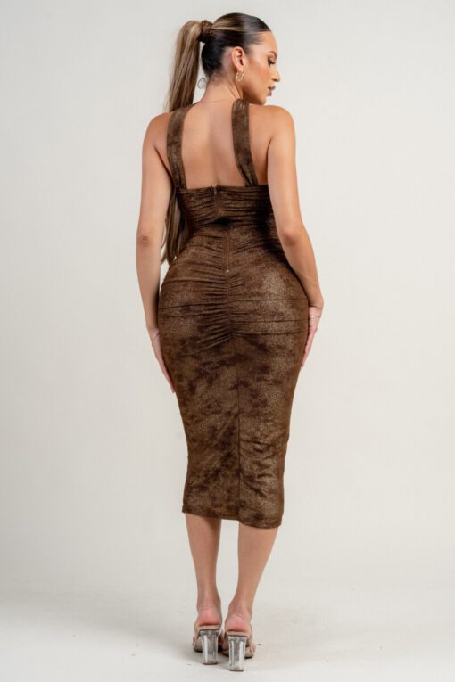 METALLIC NET MESH MOCK NECK TUBE RUCHING MIDI DRESS SELF: 90% NYLON 10% SPANDEX, LINING:100% POLYESTER
