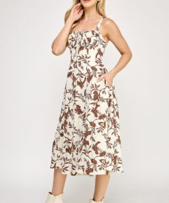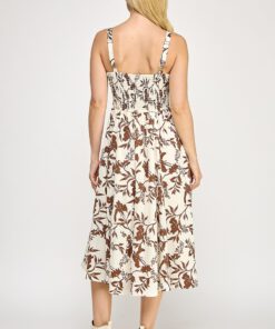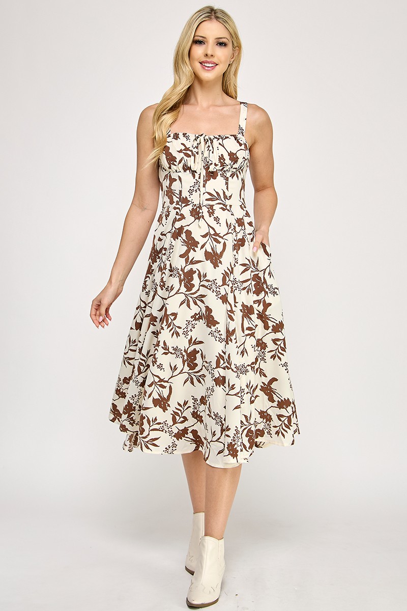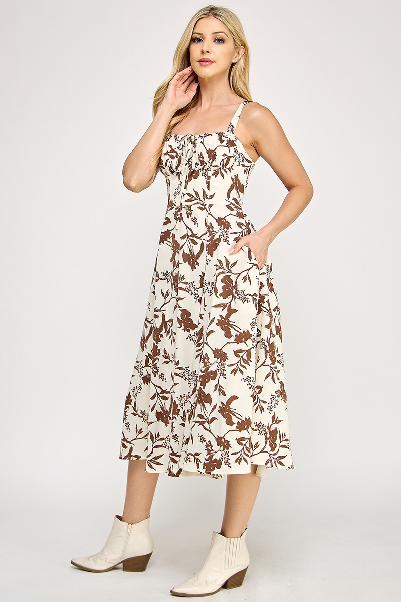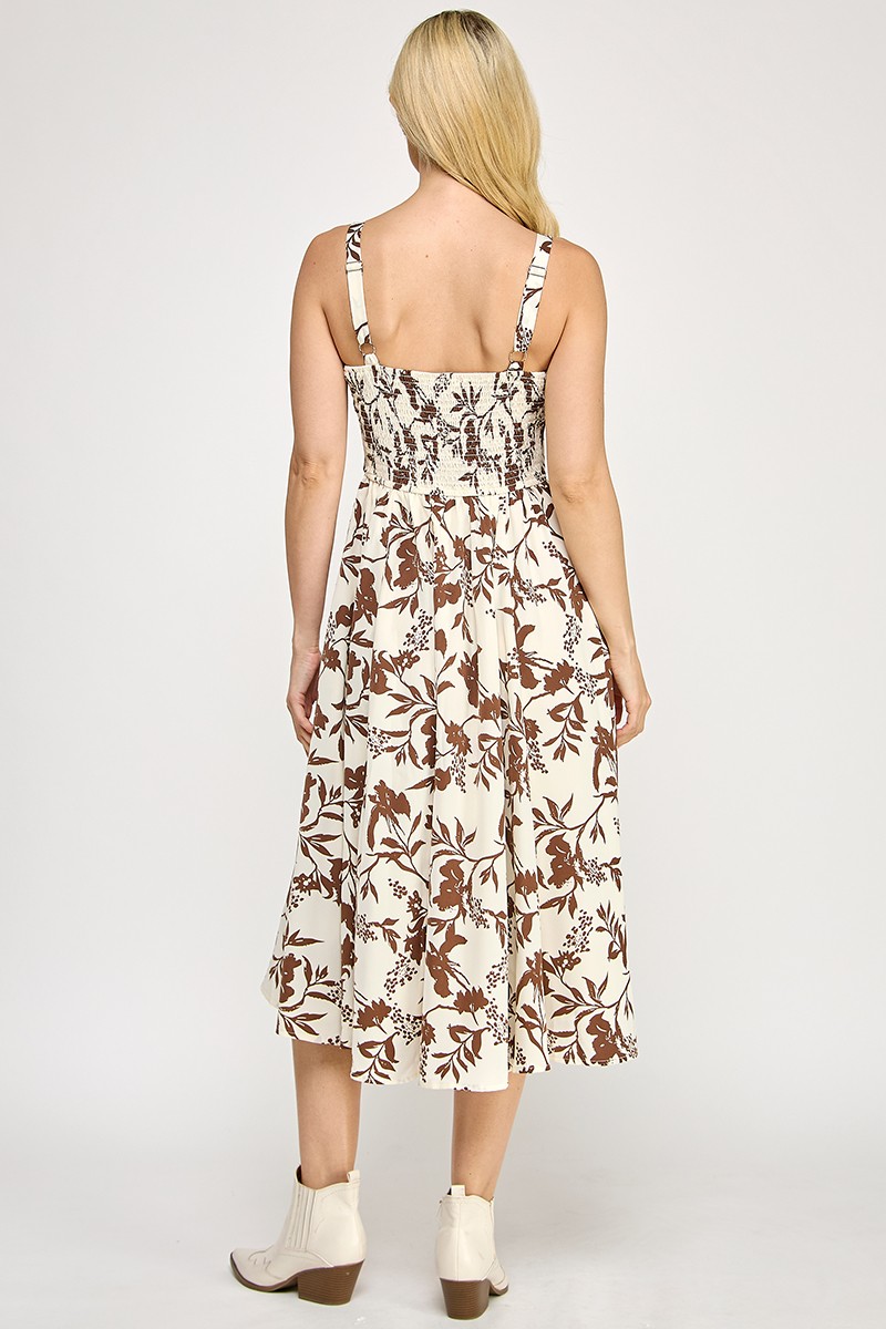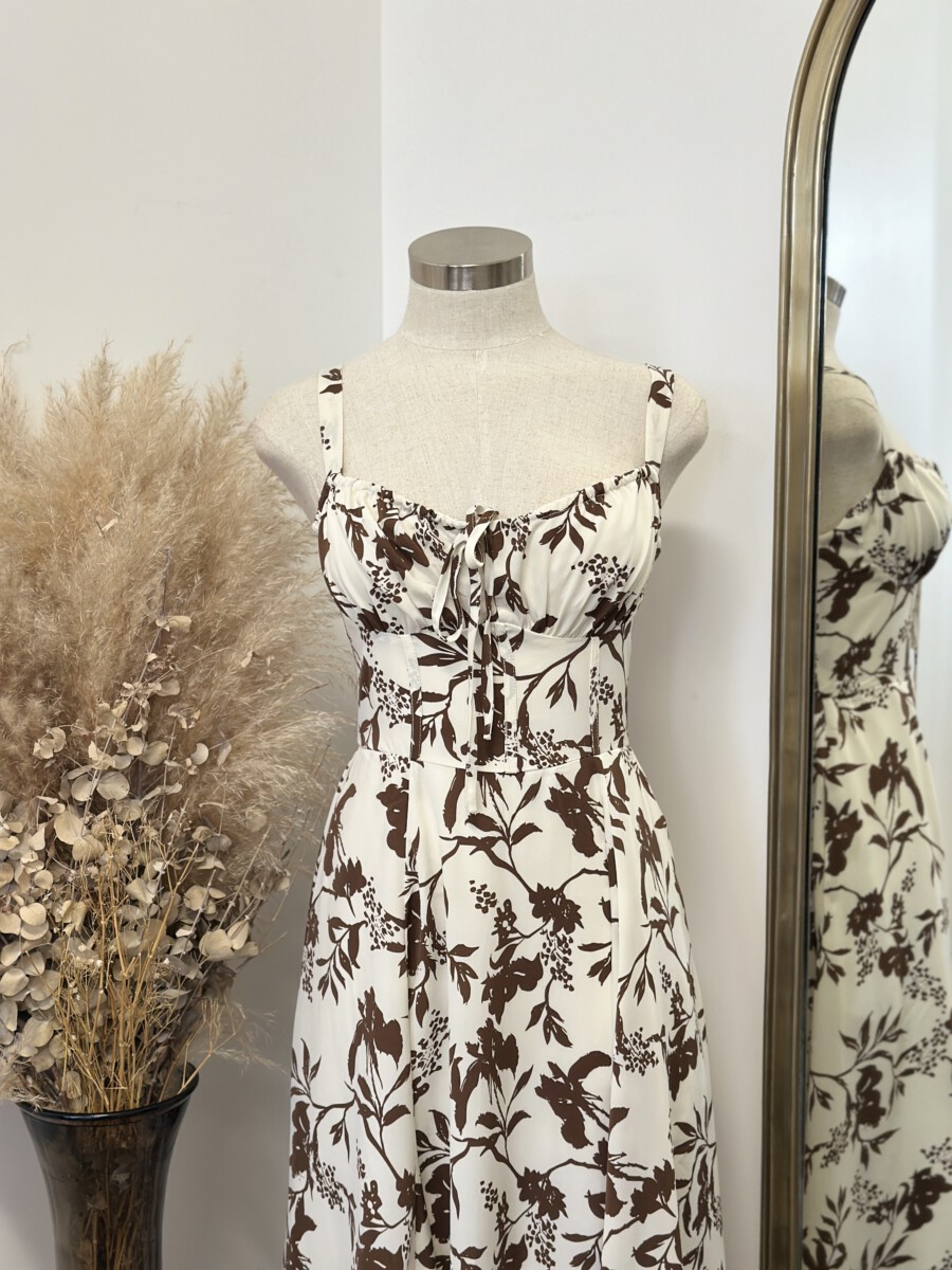 ” Lilibeth ” Floral Print Midi Dress ( Beige / Brown )