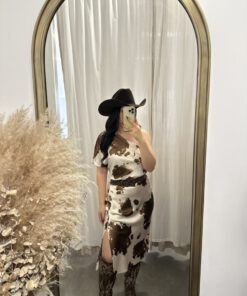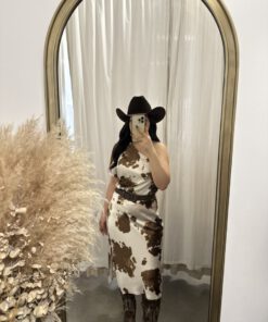 Be the first to review “” Lillian ” Cow Print One Shoulder Midi Satin Dress ( Brown )” Cancel reply