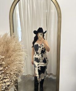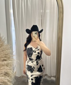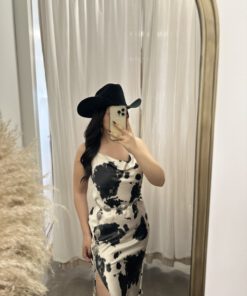 Be the first to review “” Lillian ” Cow Print Satin Spaghetti Strap Midi Dress ( Black )” Cancel reply