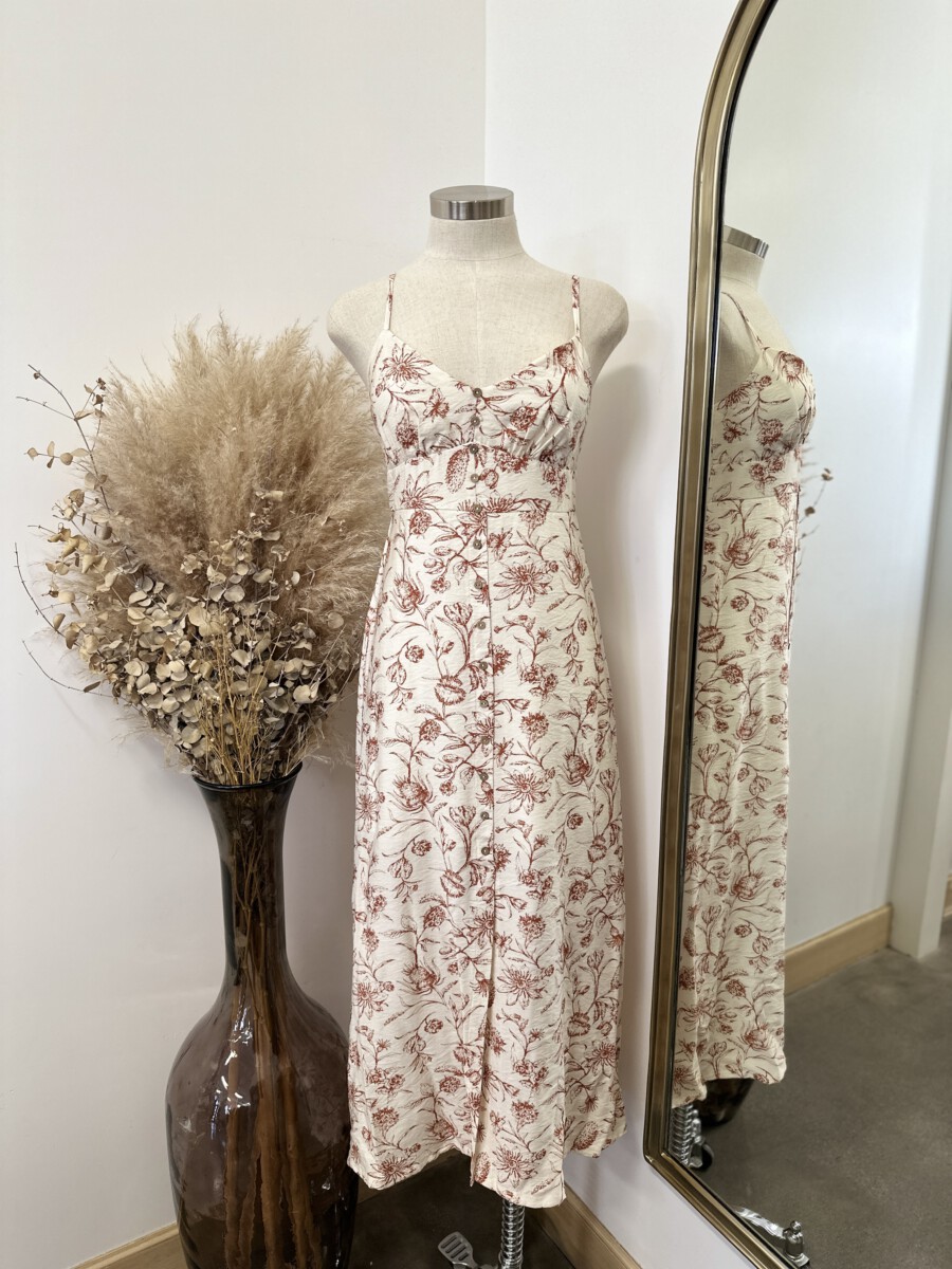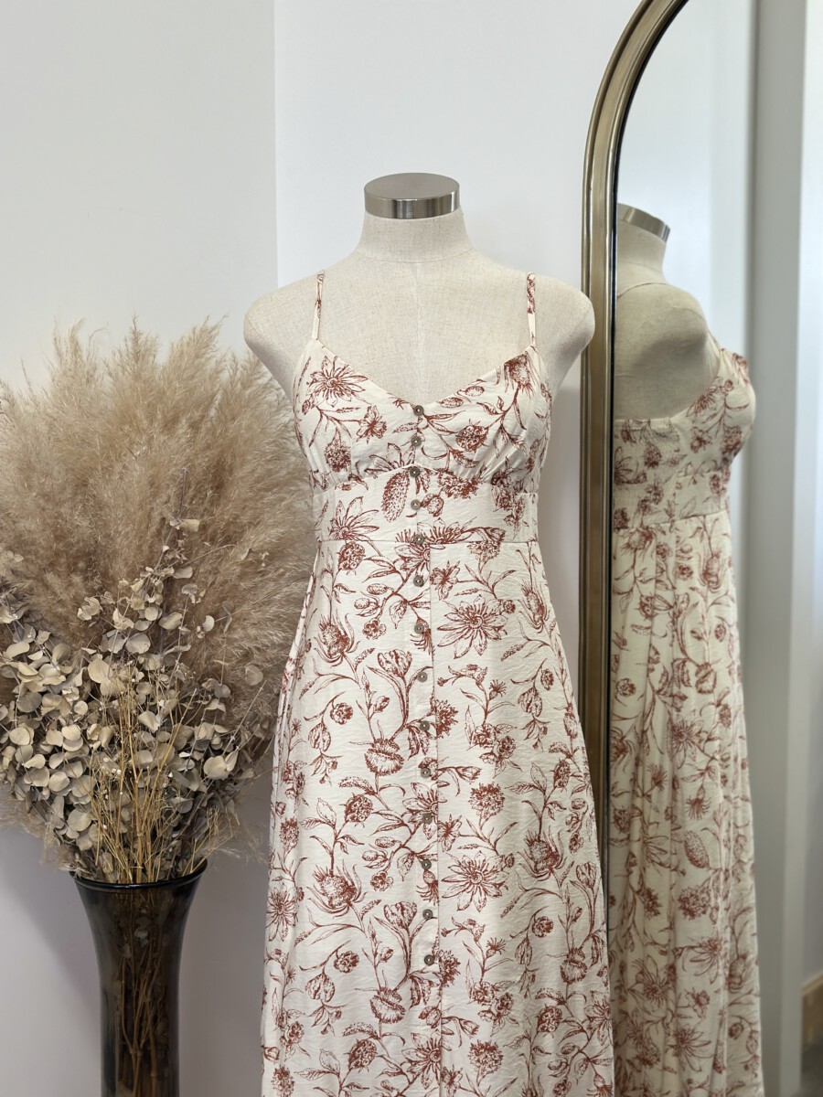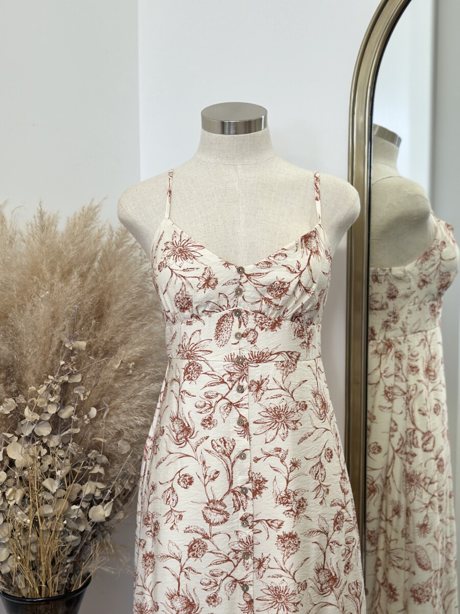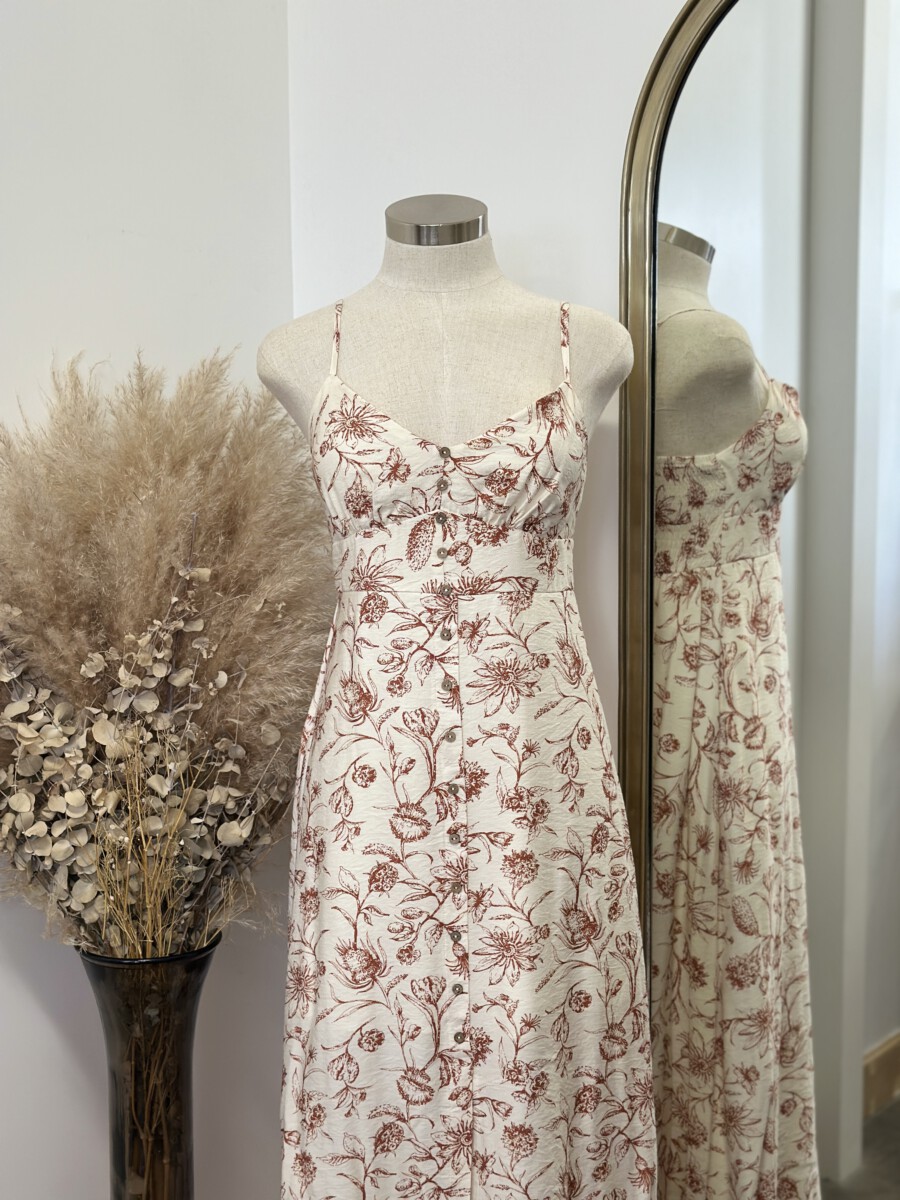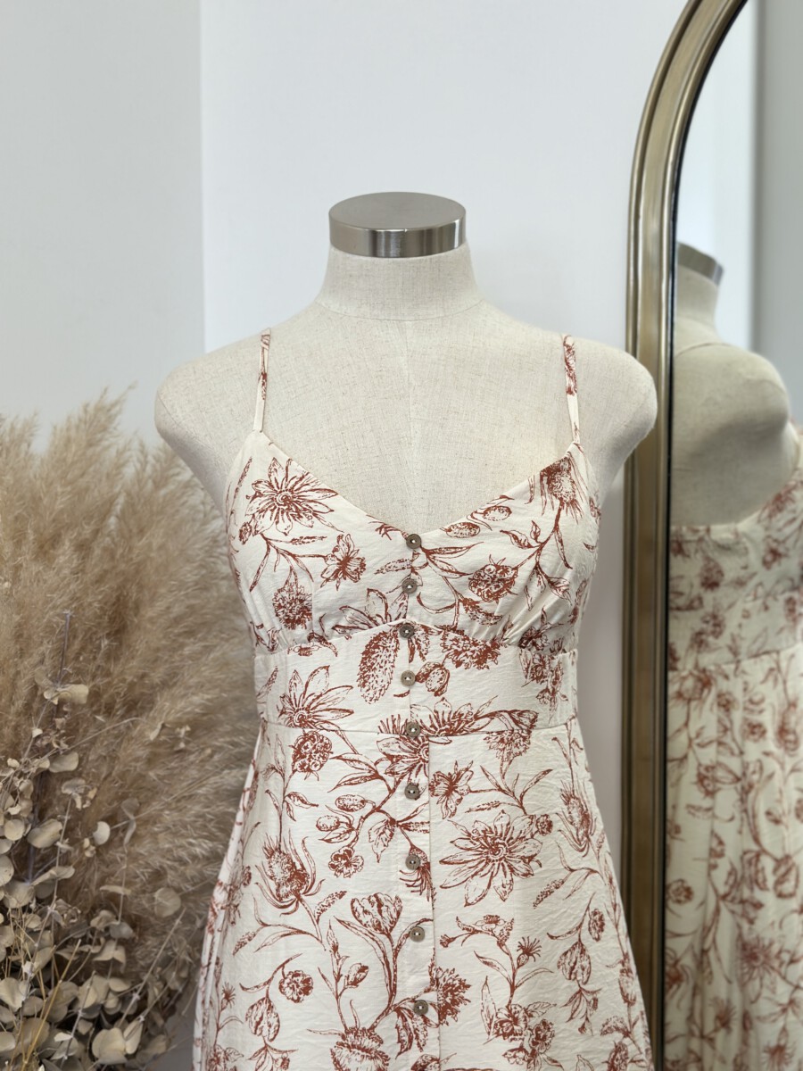 ” Lupita ” Floral Midi Dress ( Cream / Rust )