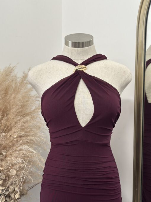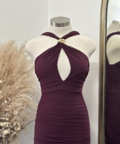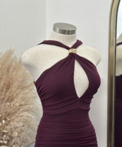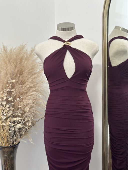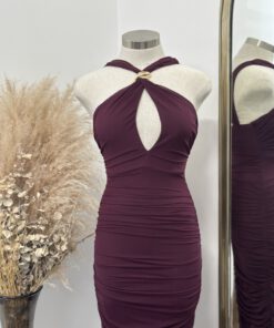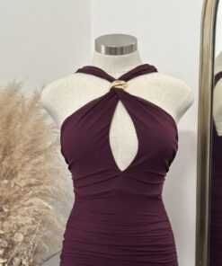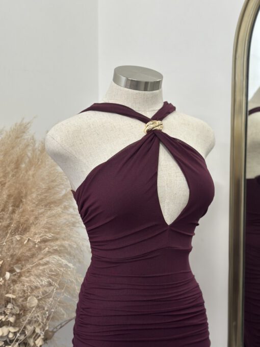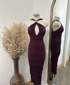 Be the first to review “” Lyra ” Halter Neck Trim Inset Ruched Bodycon Midi Dress ( Plum )” Cancel reply
