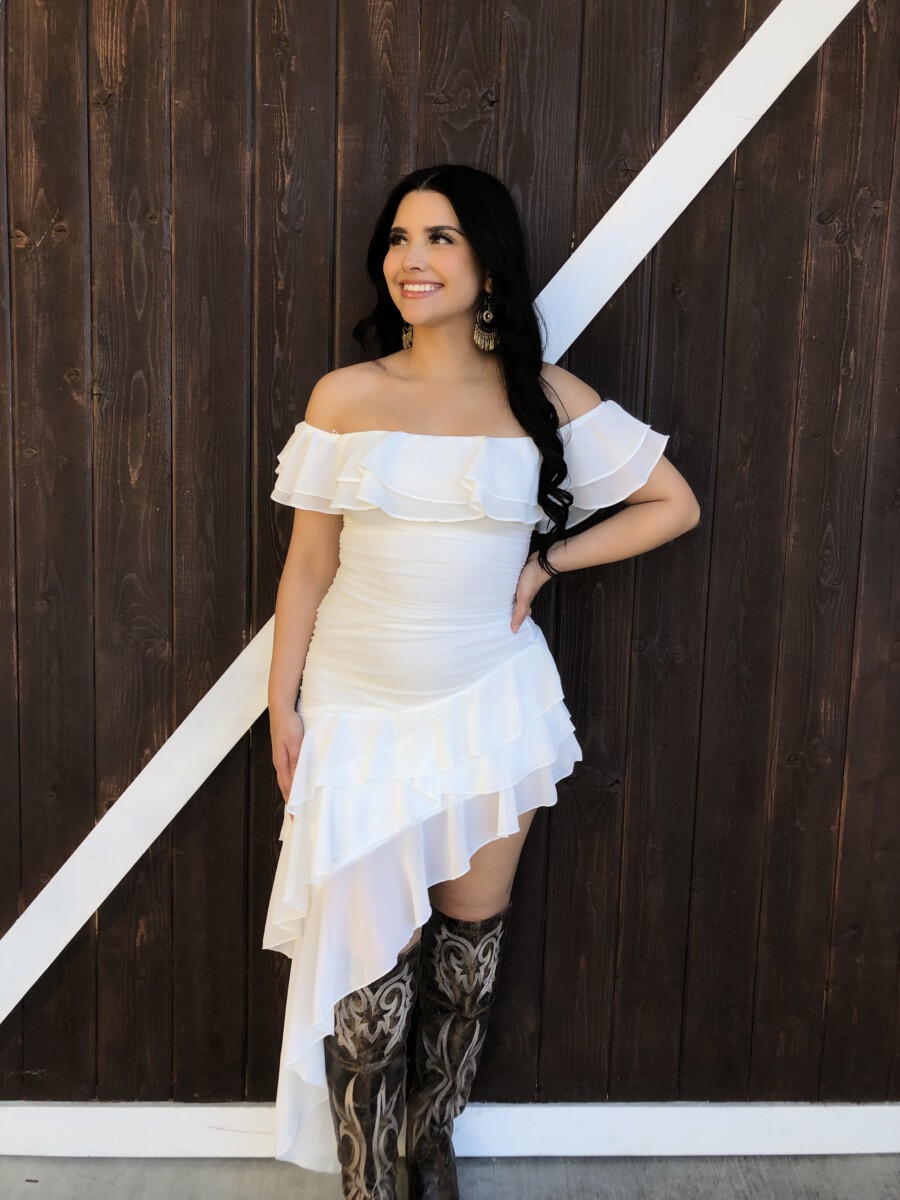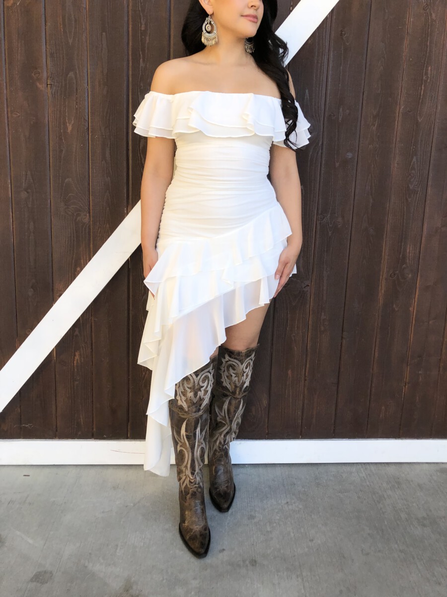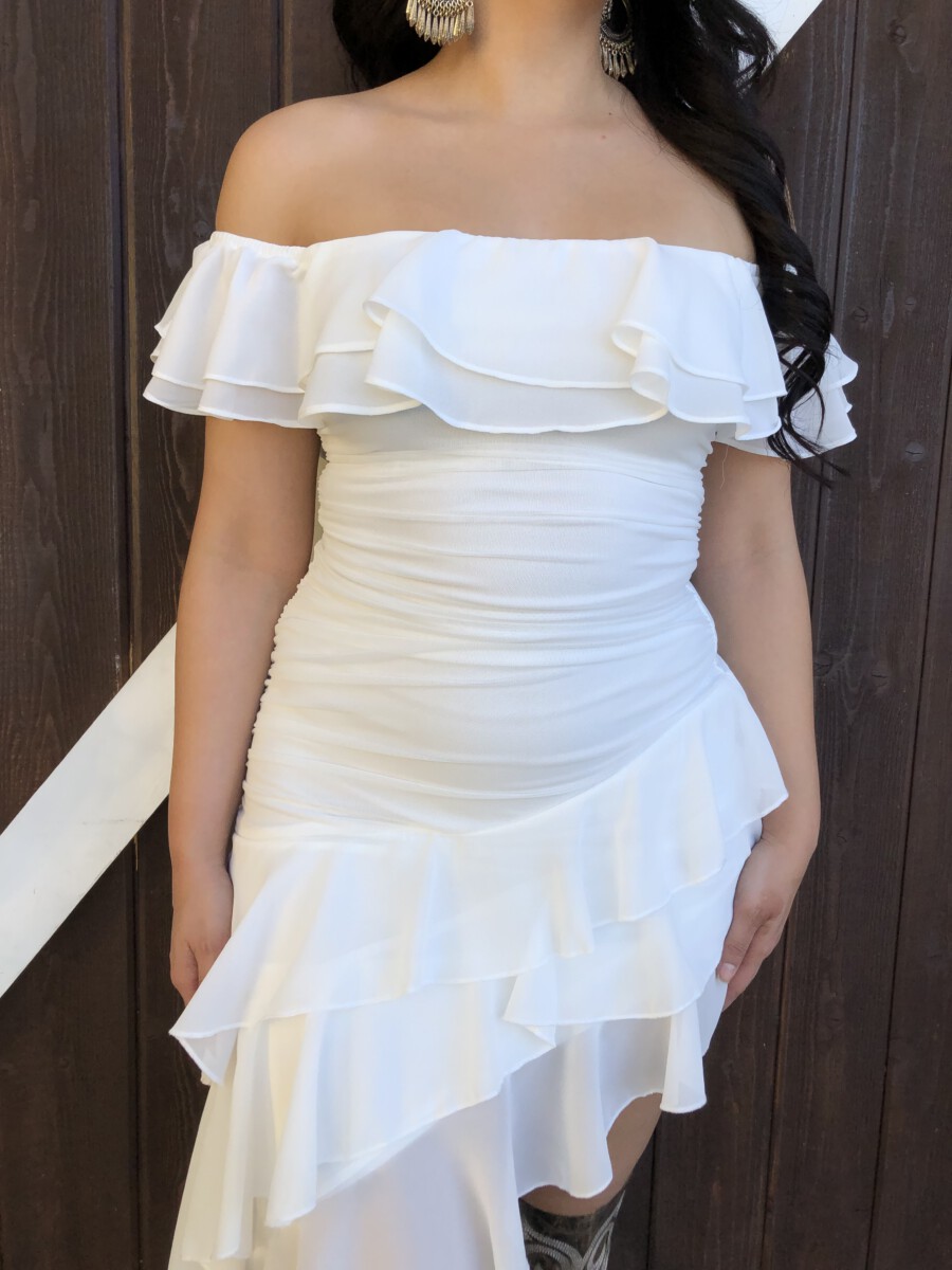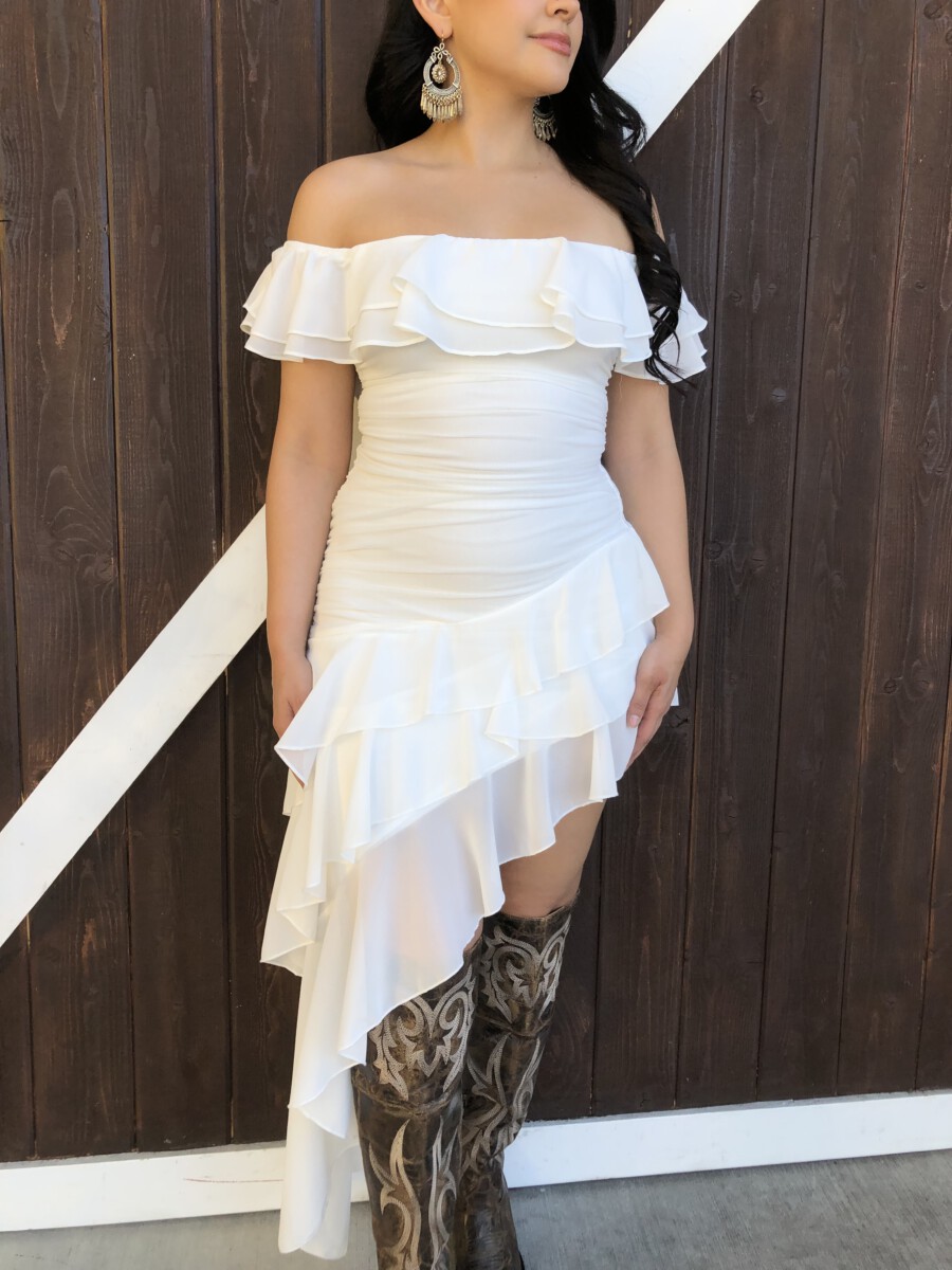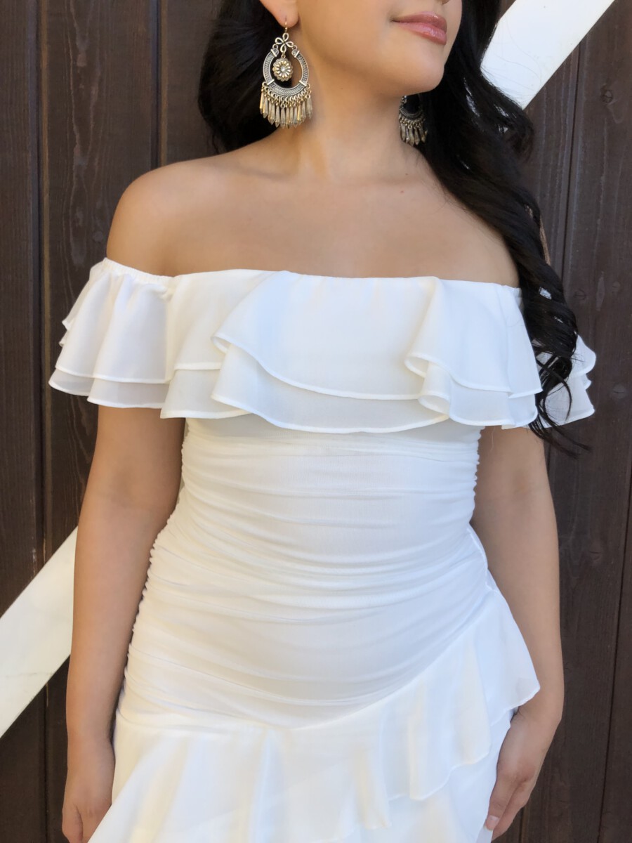 ” Madeline ” Off Shoulder Ruffle Dress ( White )