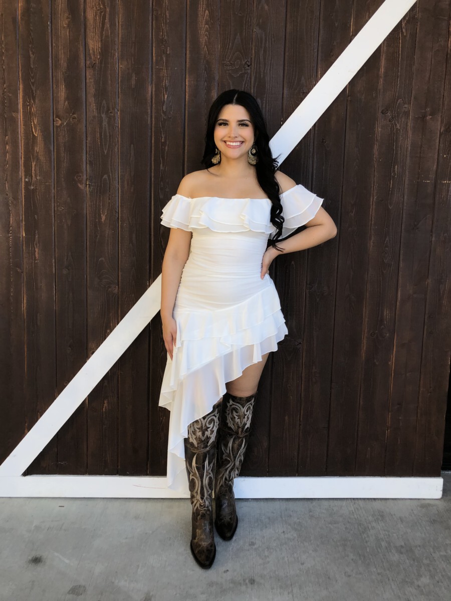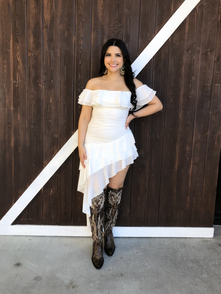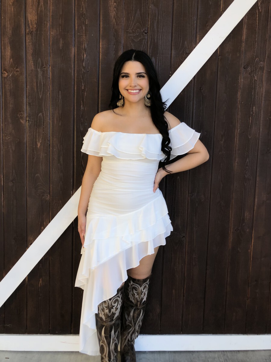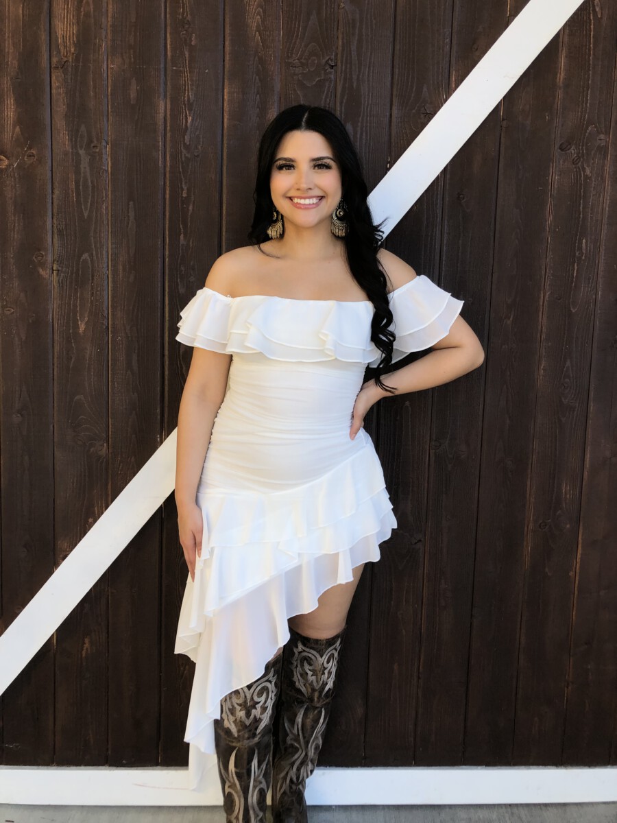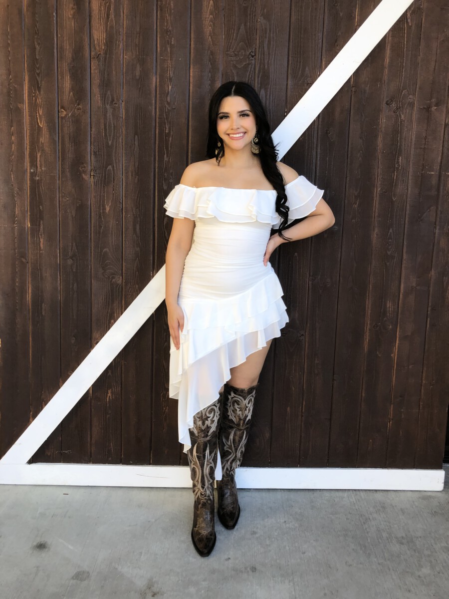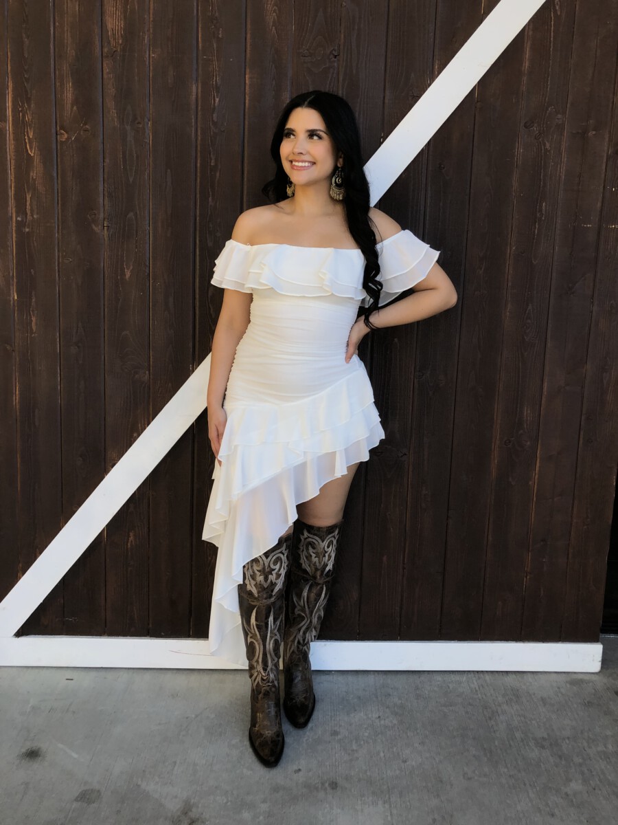 ” Madeline ” Off Shoulder Ruffle Dress ( White )