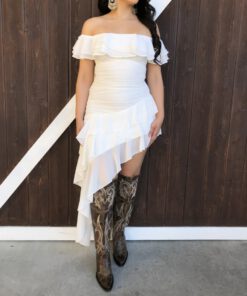 Be the first to review “” Madeline ” Off Shoulder Ruffle Dress ( White )” Cancel reply