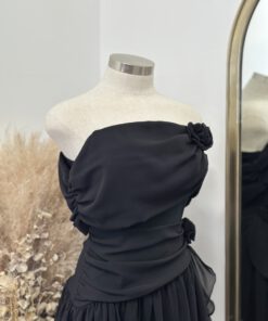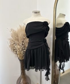 Be the first to review “” Marlinda ” Rosettes Chelsea Chiffon Off Shoulder Mini Dress ( Black )” Cancel reply