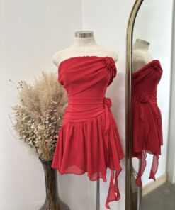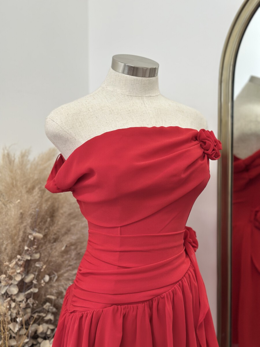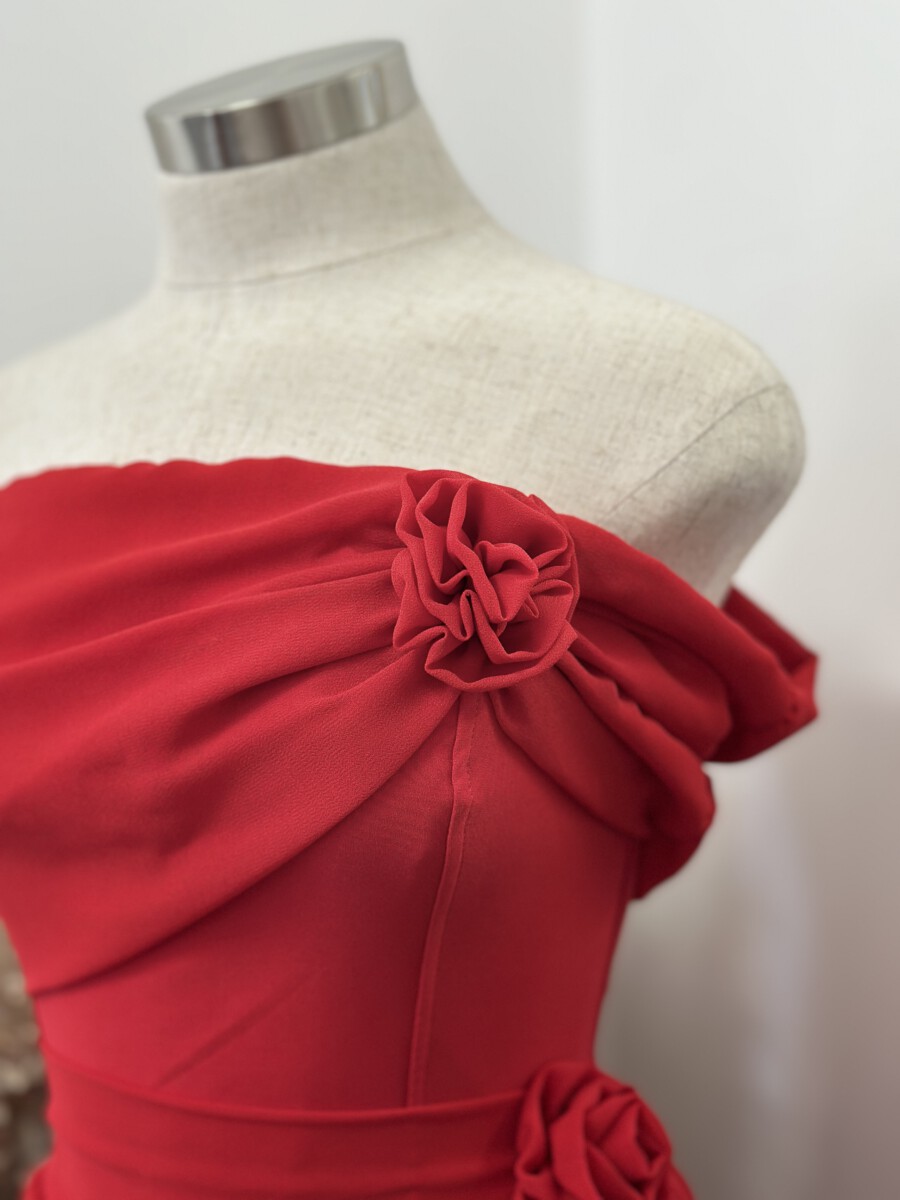 Be the first to review “” Marlinda ” Rosettes Chelsea Chiffon Off Shoulder Mini Dress ( Red )” Cancel reply