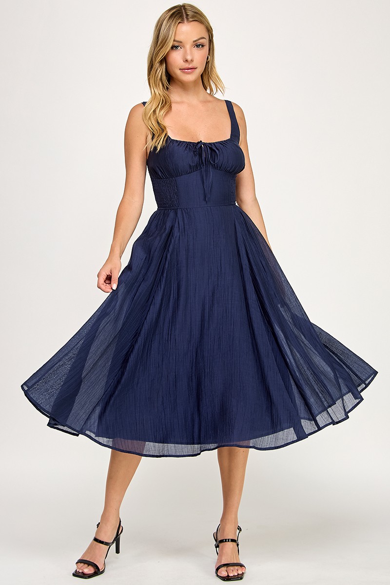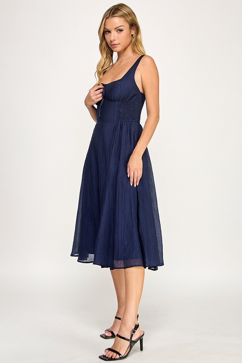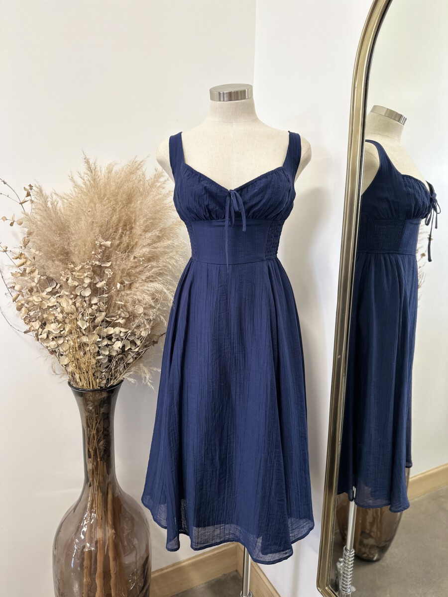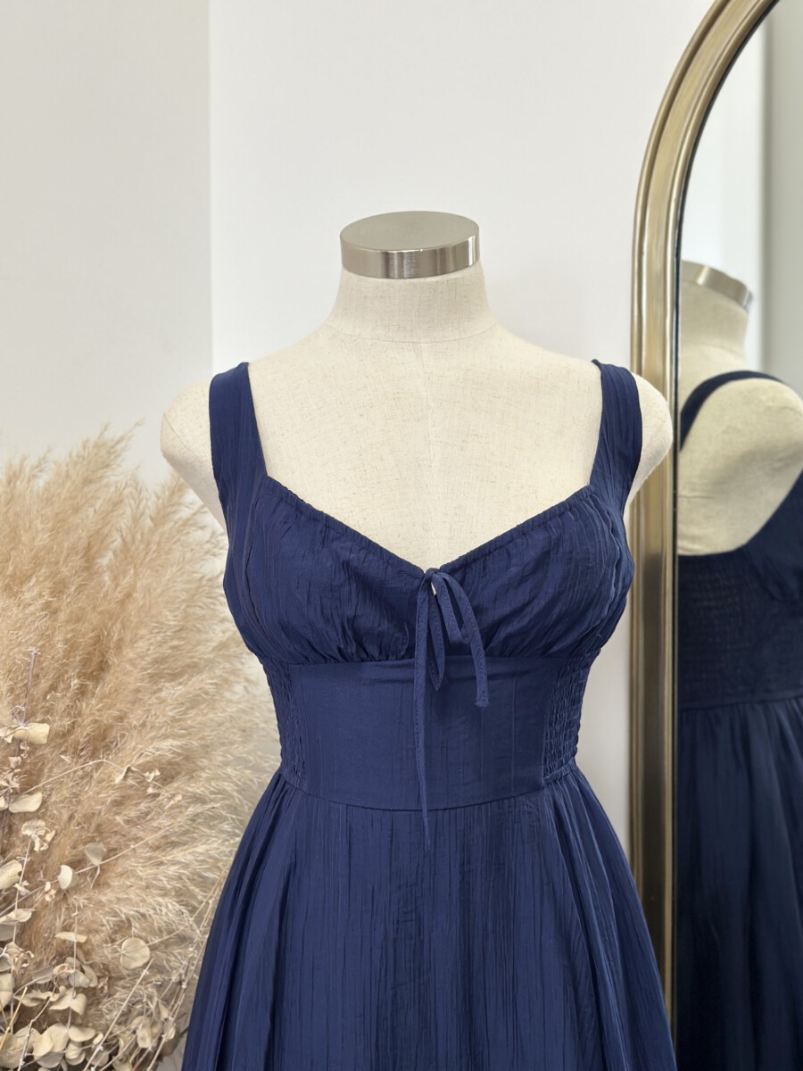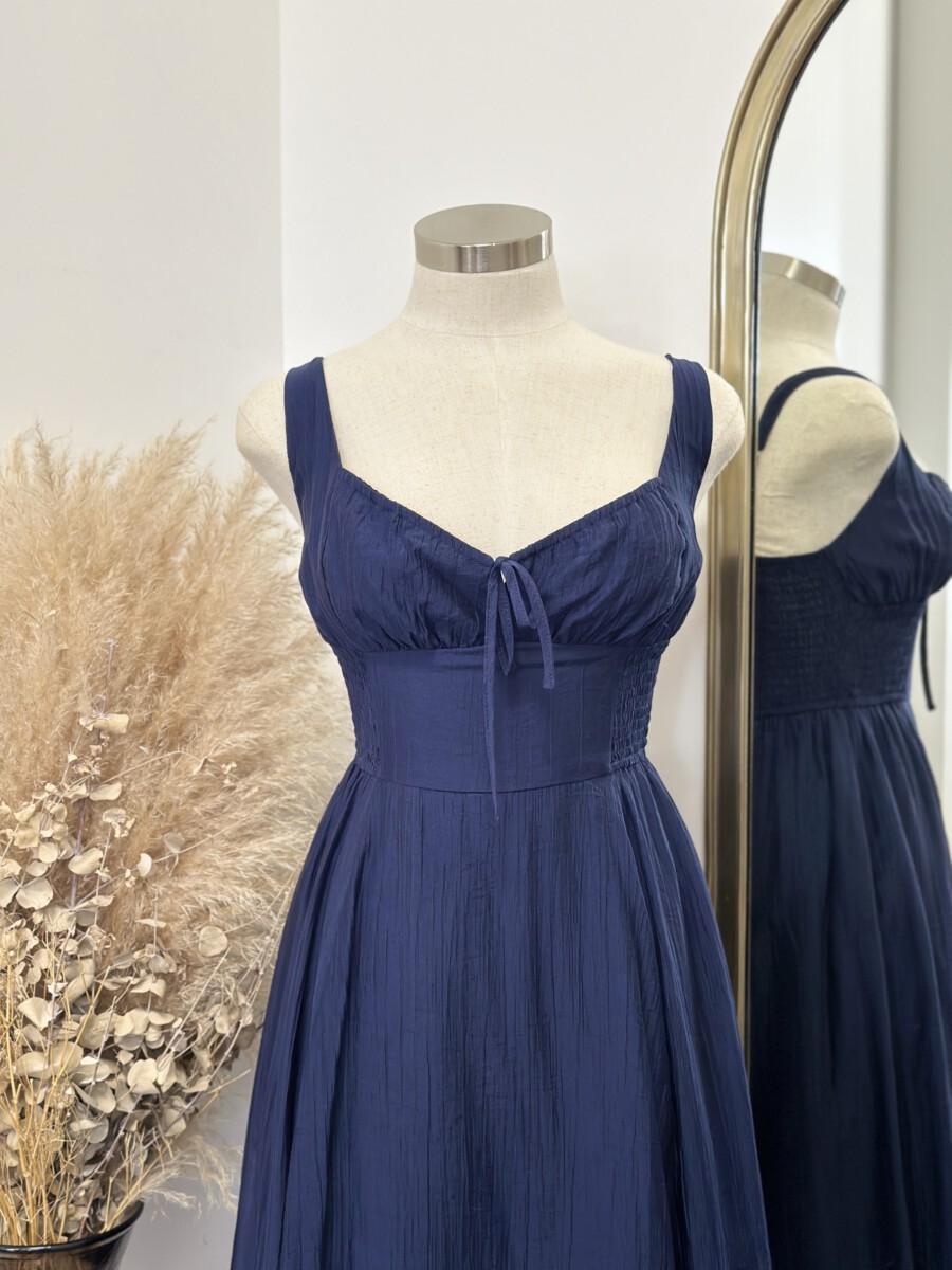 ” Nancy ” Smocked Midi Dress ( Navy Blue )