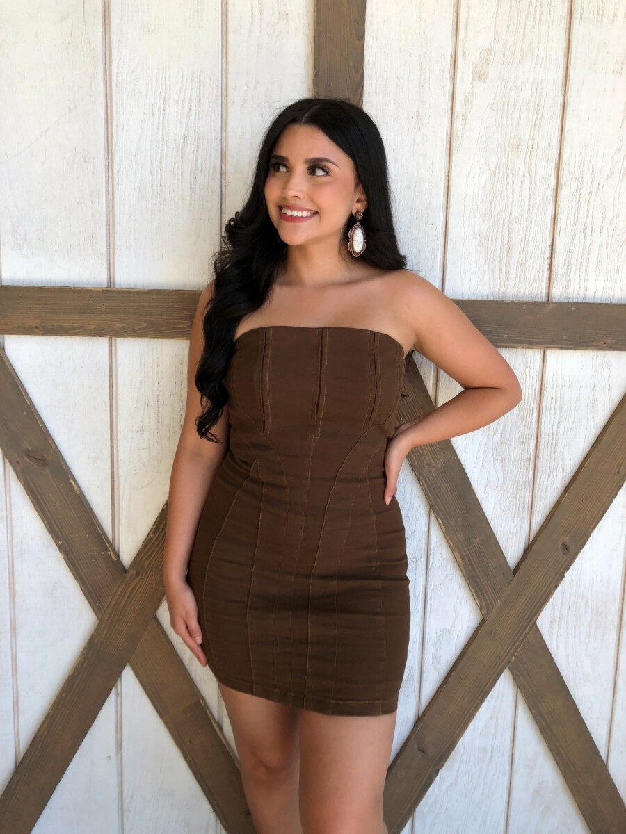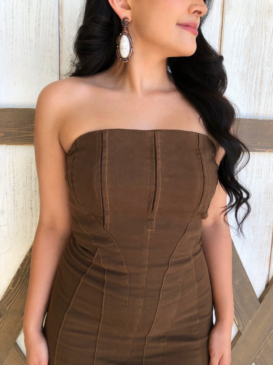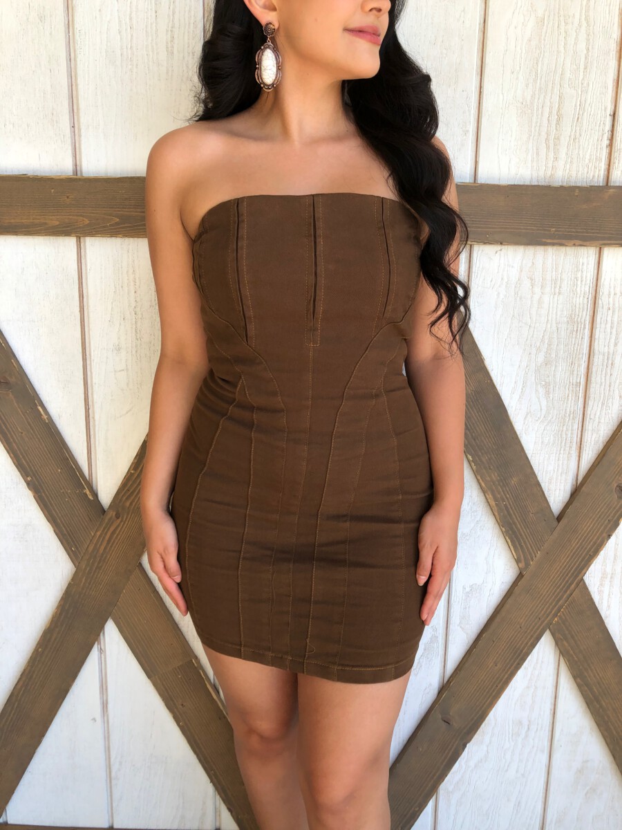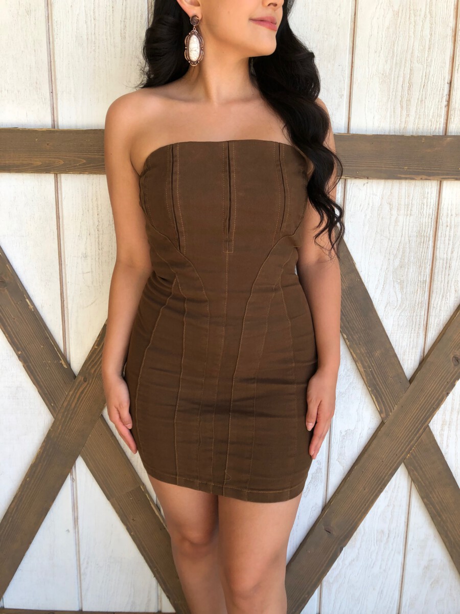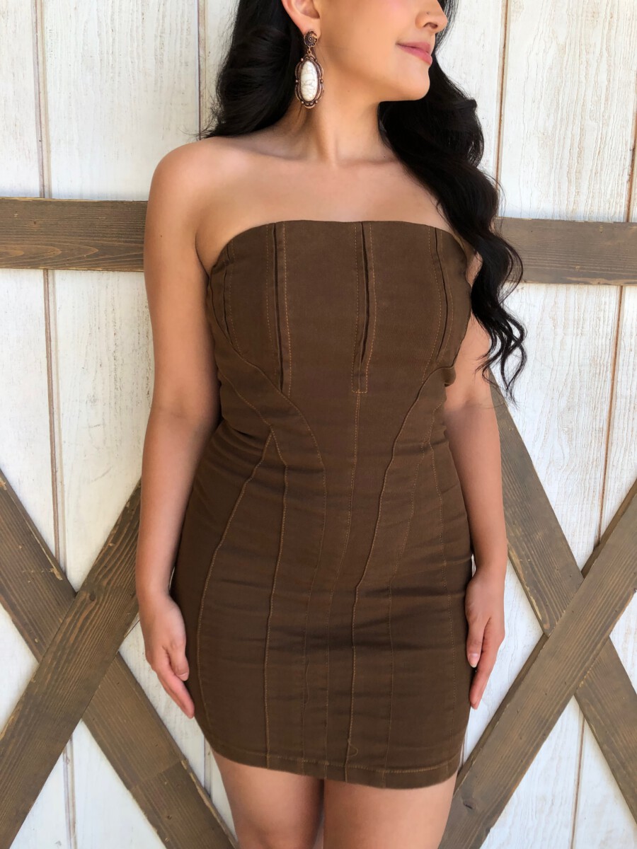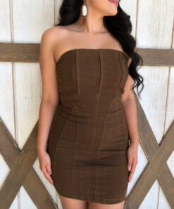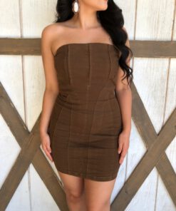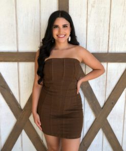 Be the first to review “” Penny ” Strapless Denim Dress ( Brown )” Cancel reply
