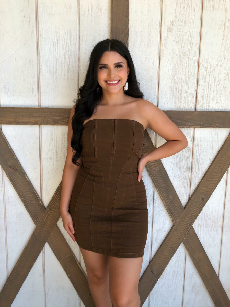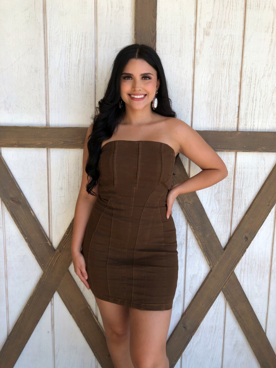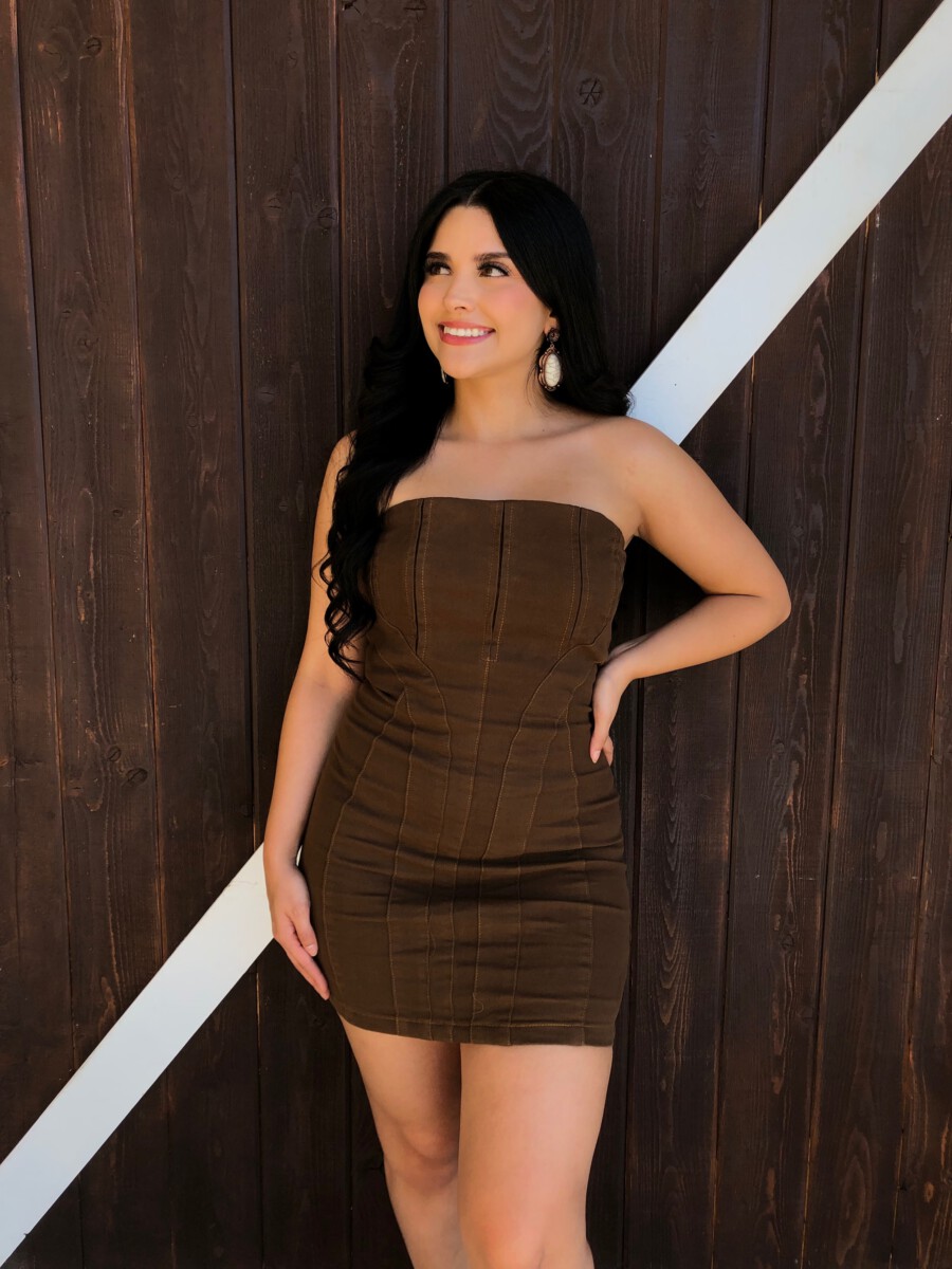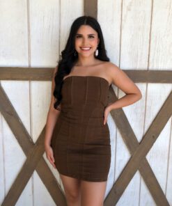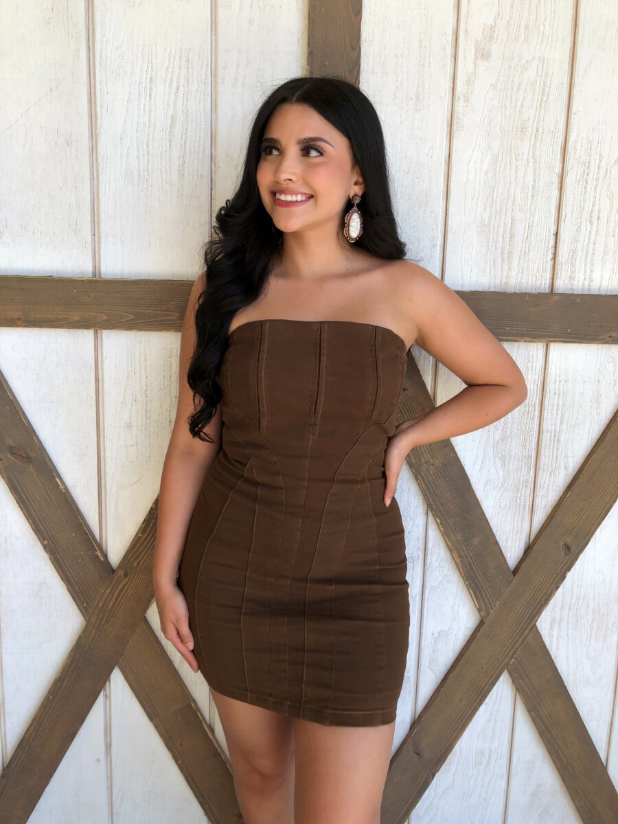 Be the first to review “” Penny ” Strapless Denim Dress ( Brown )” Cancel reply