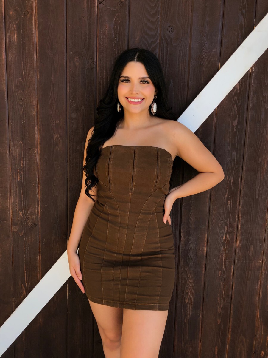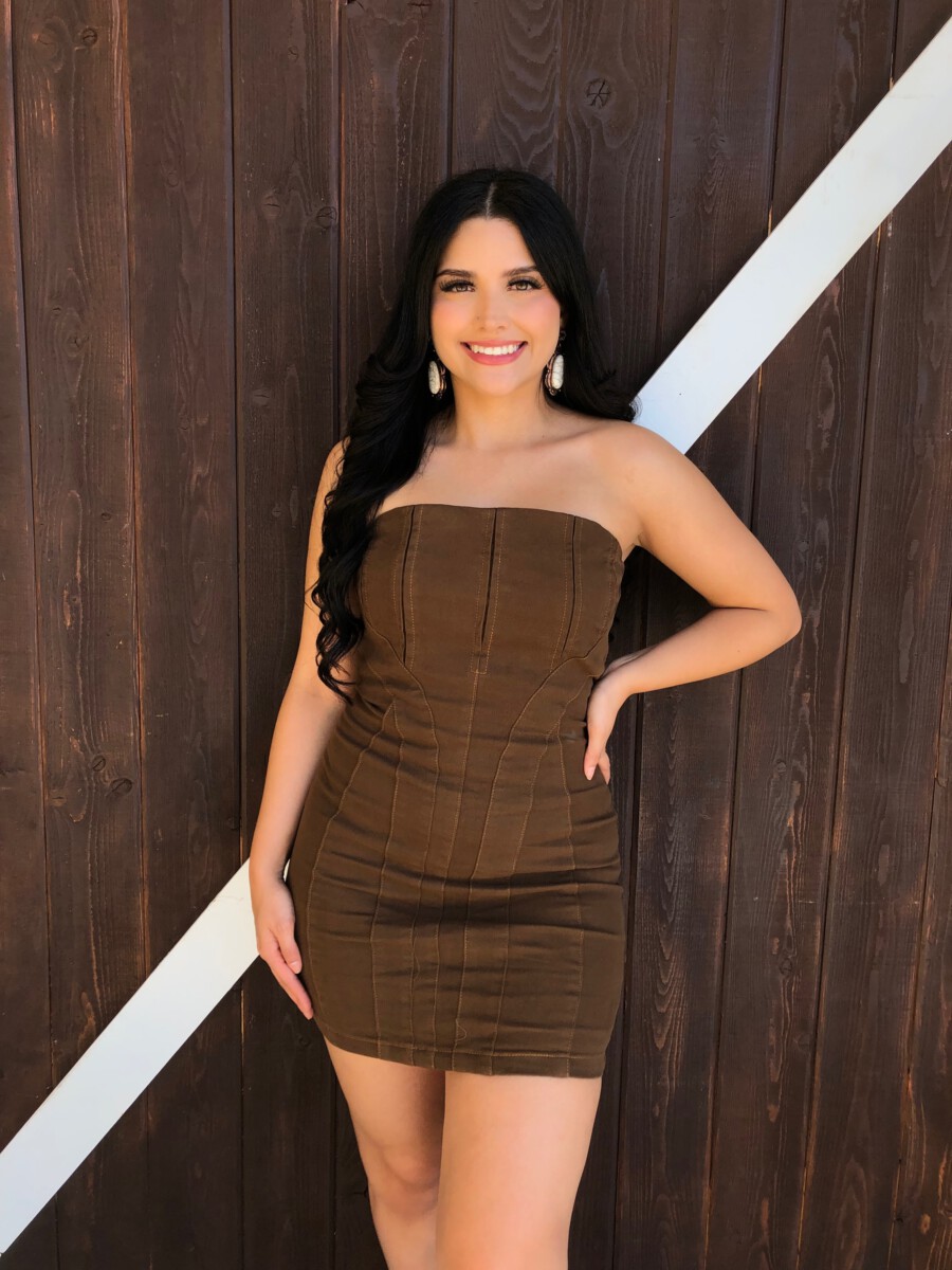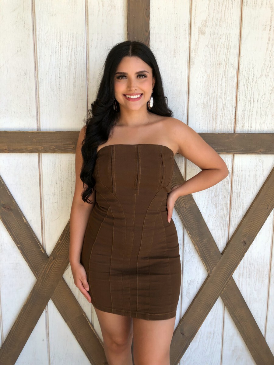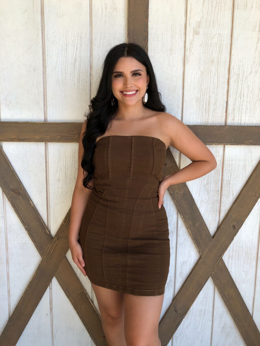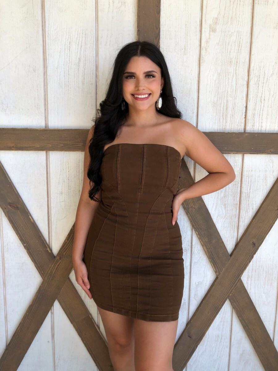 Be the first to review “” Penny ” Strapless Denim Dress ( Brown )” Cancel reply