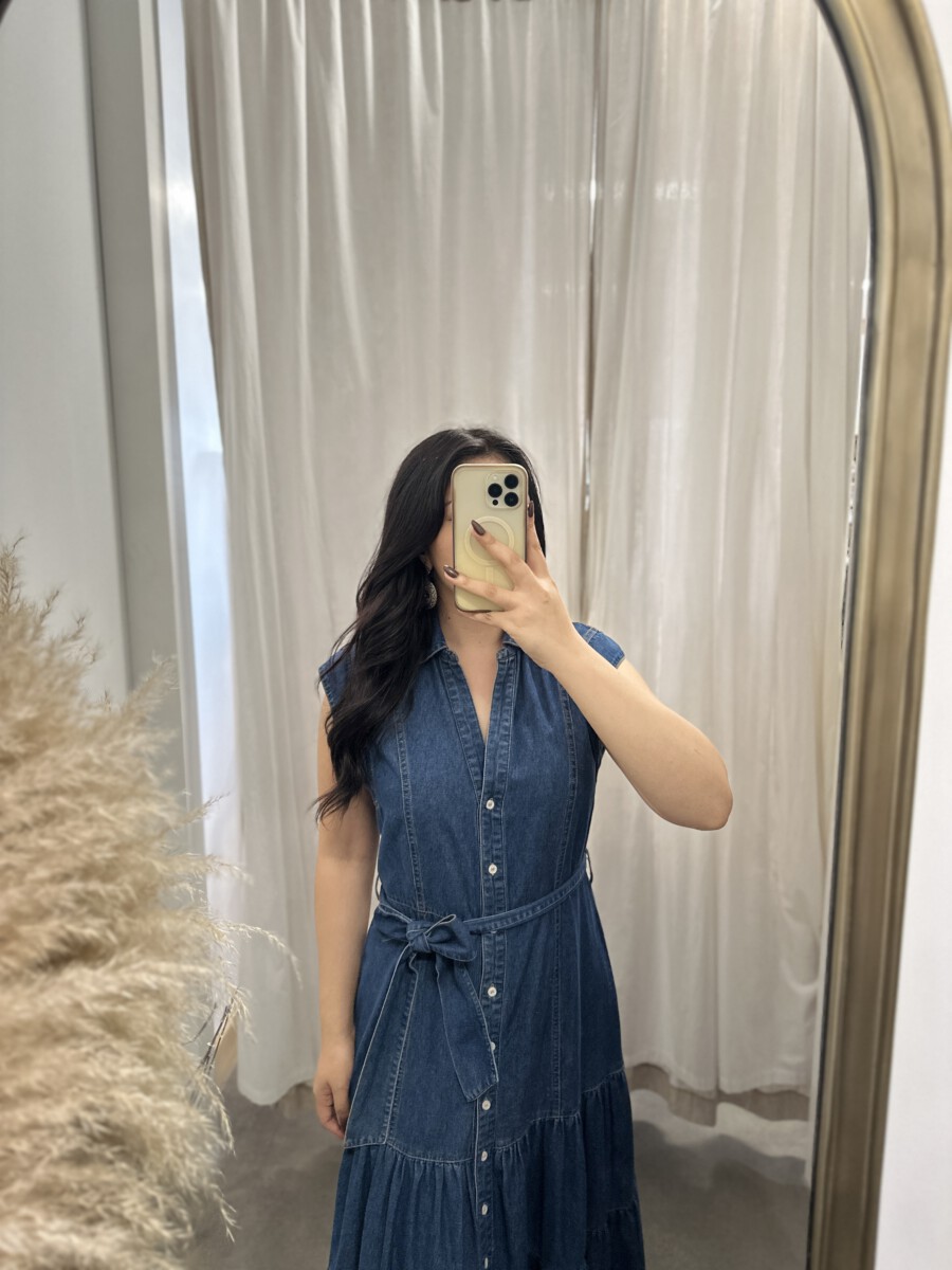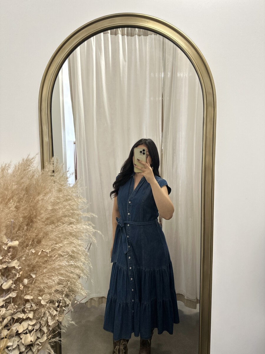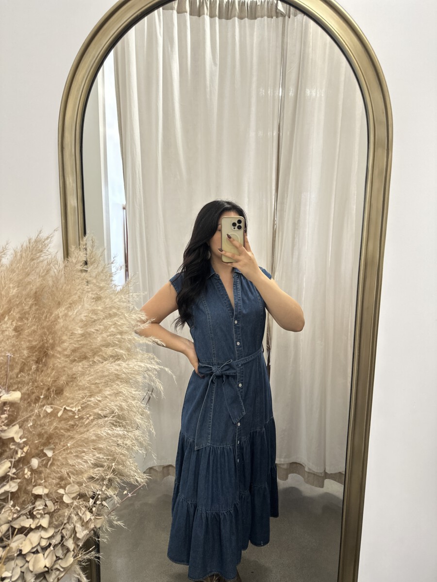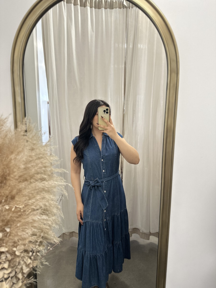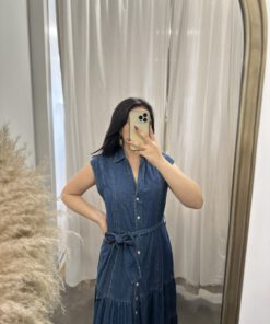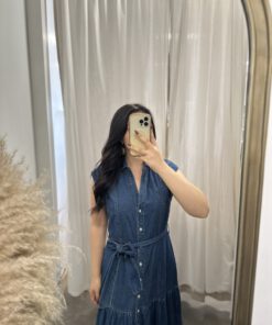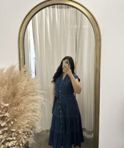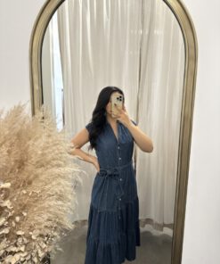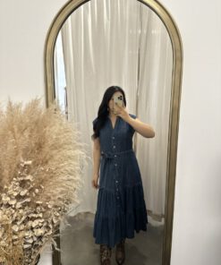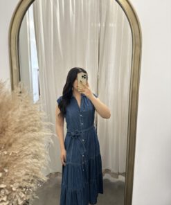 Be the first to review “” Rochelle ” Belted Button Up Tiered Denim Midi Dress” Cancel reply