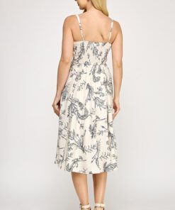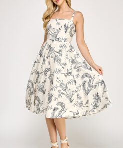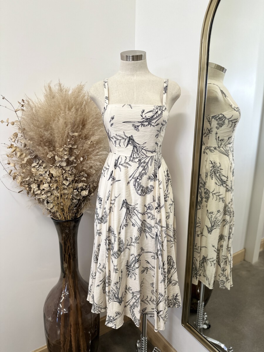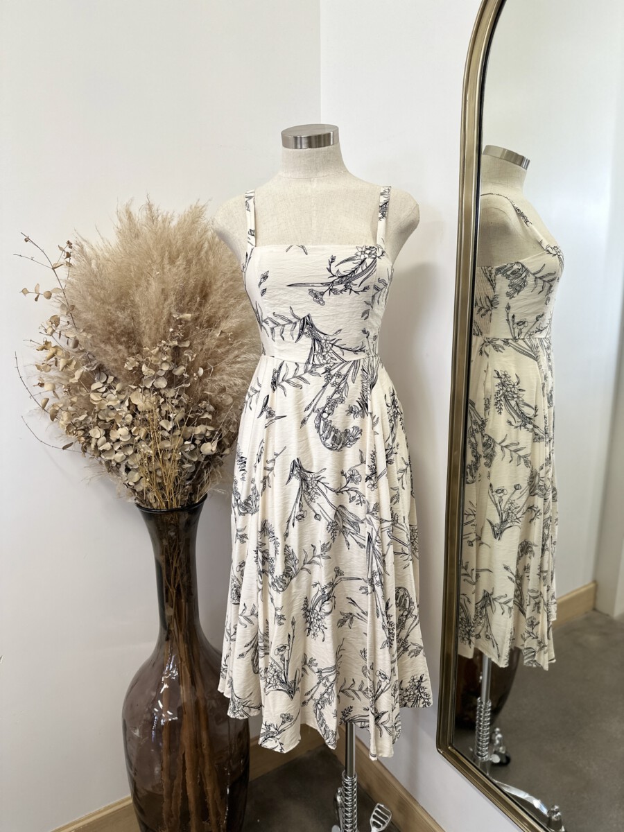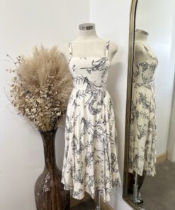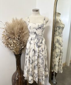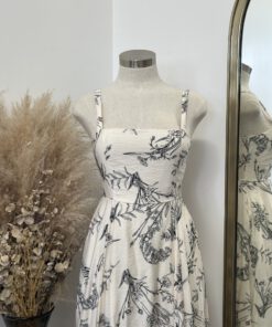Be the first to review “” Salome ” Botanical Print Square Neck Midi Dress ( Beige / Black )” Cancel reply