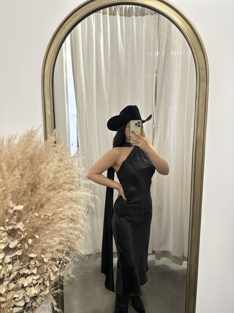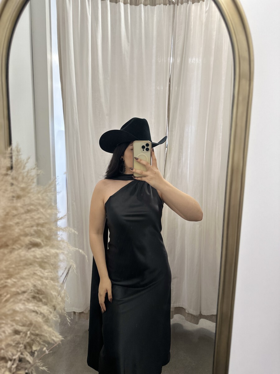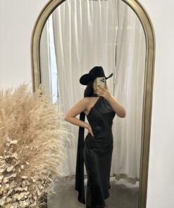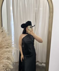Be the first to review “” Solene ” Satin Scarf Detail One Shoulder Maxi Dress ( Black )” Cancel reply