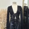 ” Rosalinda ” Front Tie Long Sleeve Sweater ( Burgundy )
