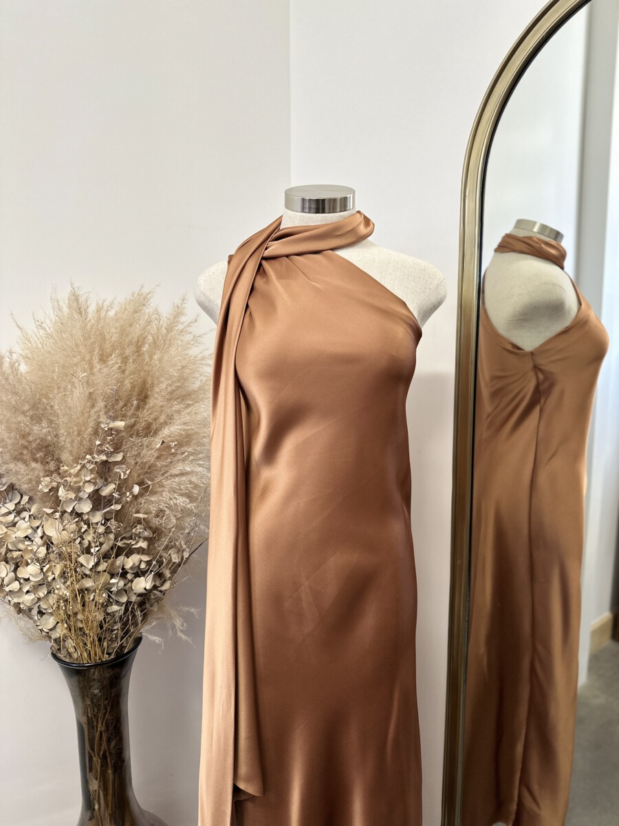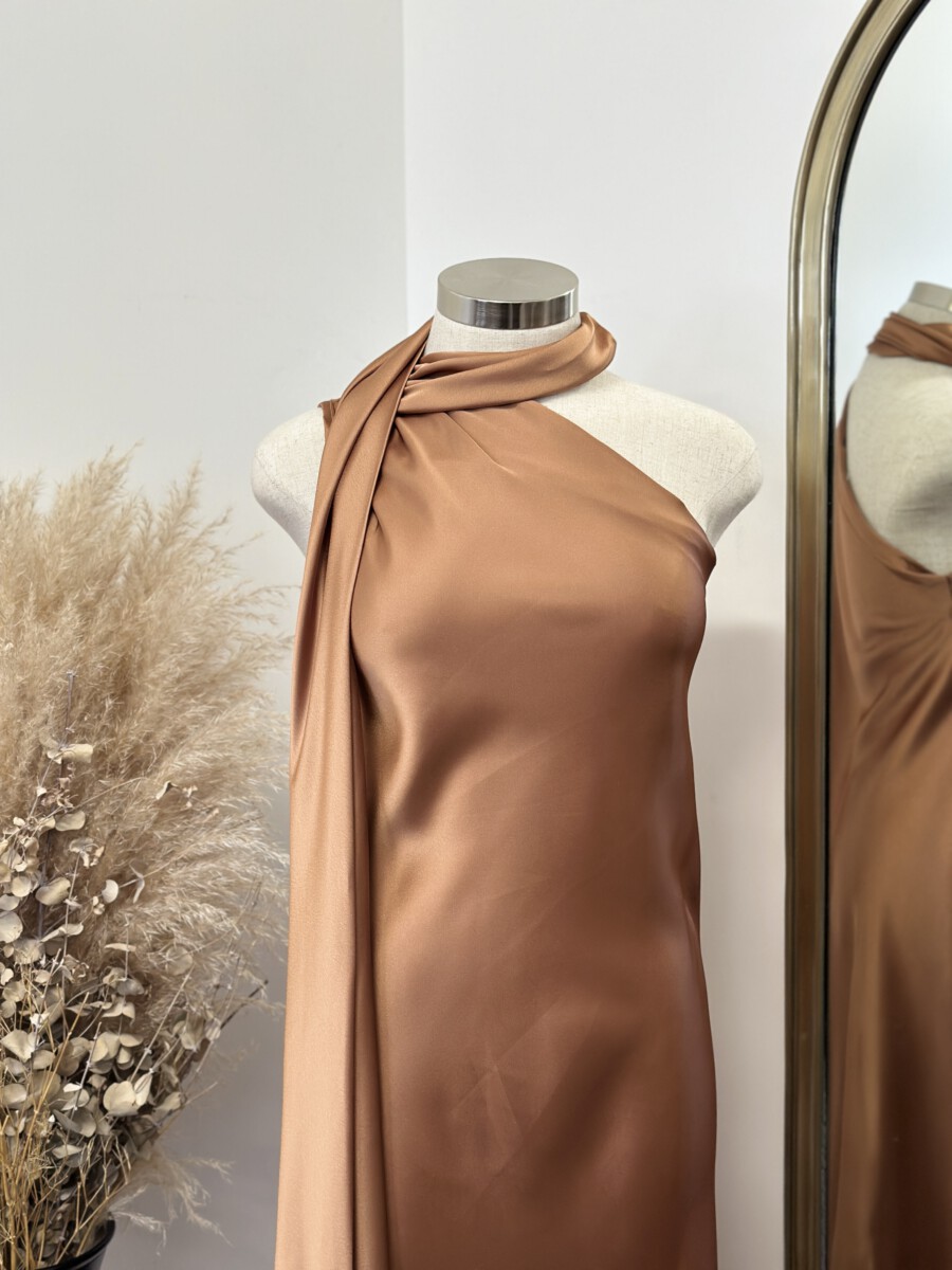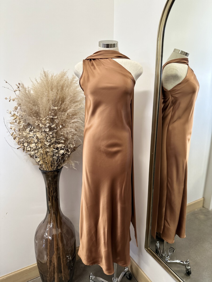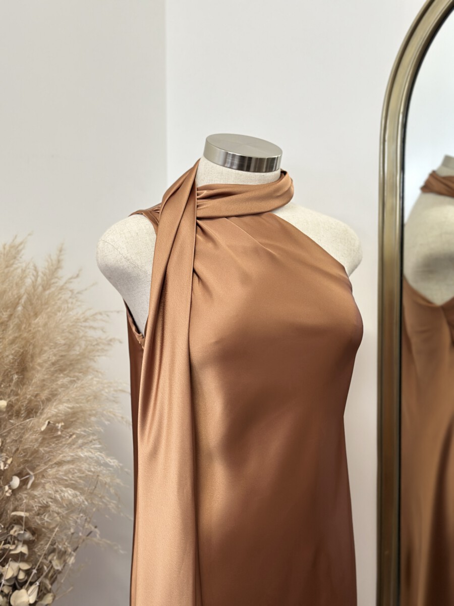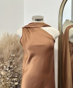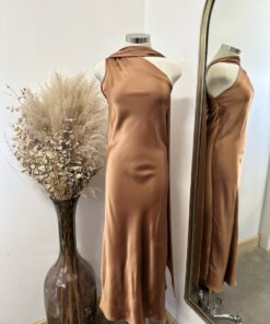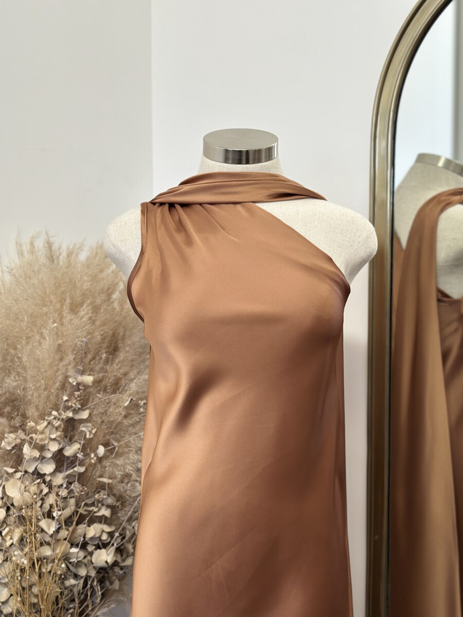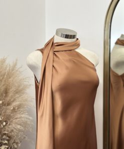 Be the first to review “” Solene ” Satin Scarf Detail One Shoulder Maxi Dress ( Camel )” Cancel reply