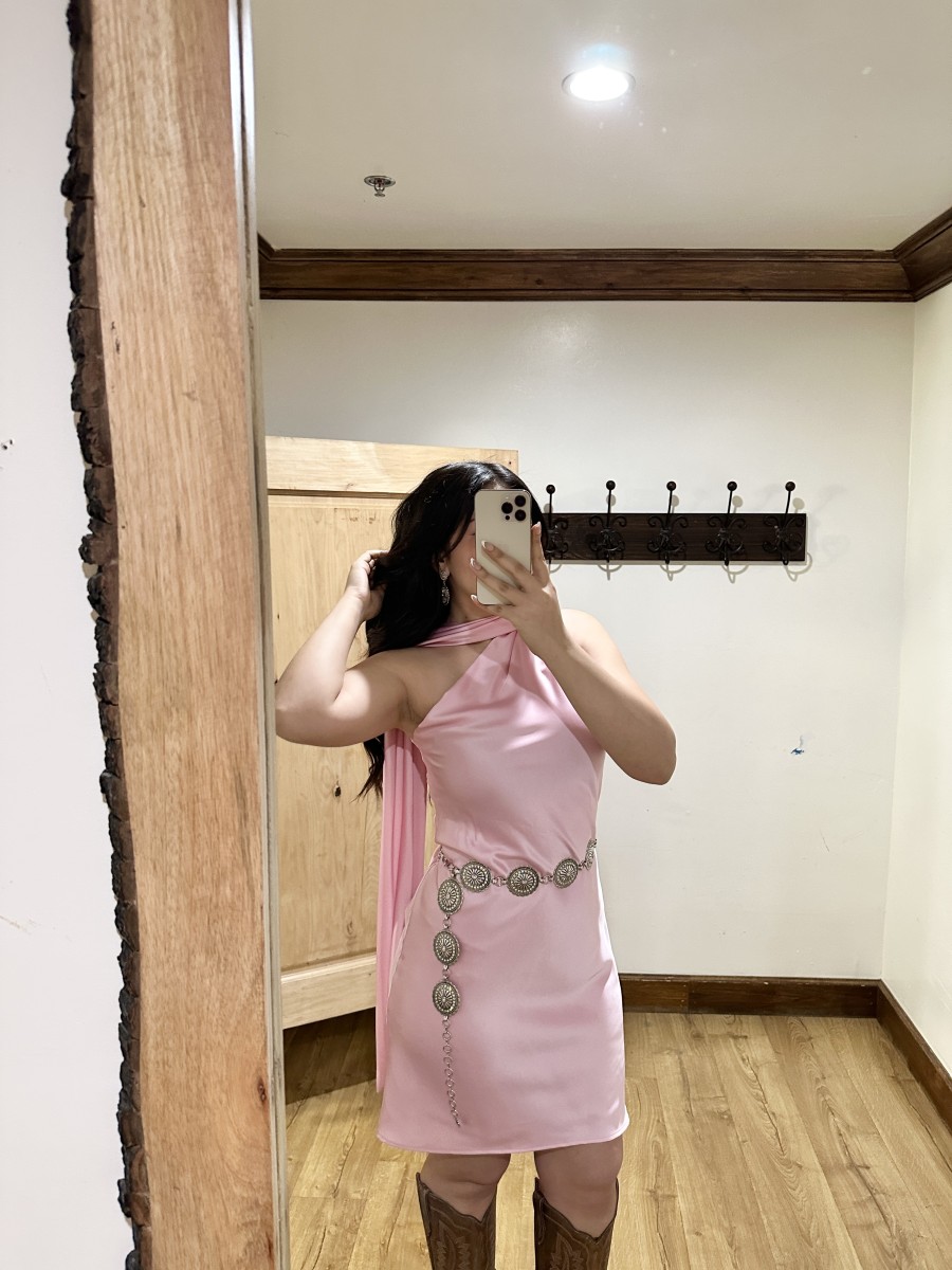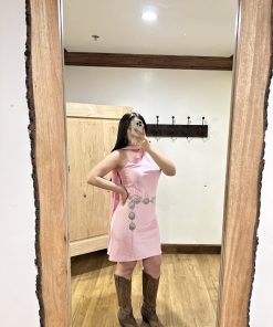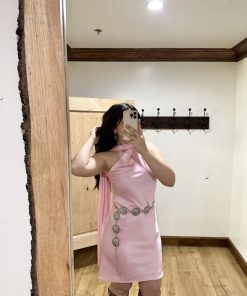 Be the first to review “” Solene ” Satin Scarf Detail One Shoulder Mini Dress ( Barbie Pink )” Cancel reply