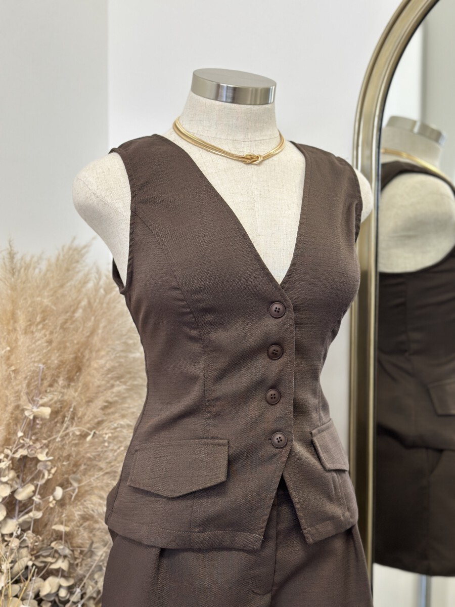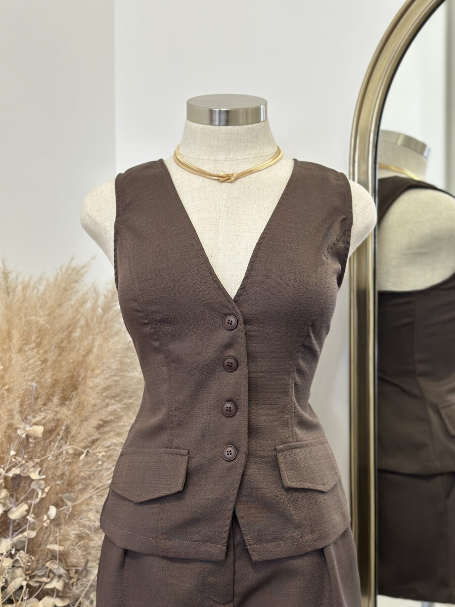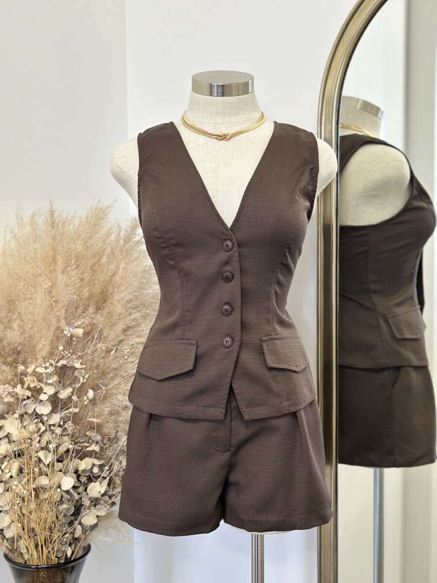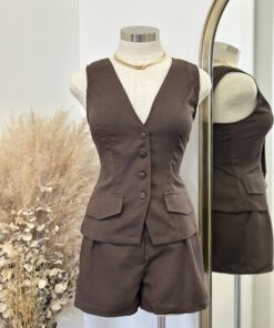 ” Sonya 2.0 ” Vest & Shorts Set ( Brown )