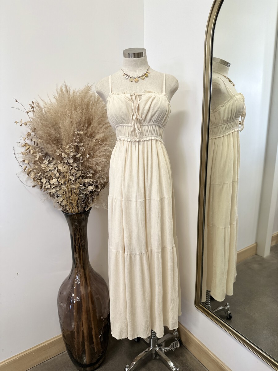 ” Violeta ” Crinkle Textured Front Tied Maxi Dress ( Beige )